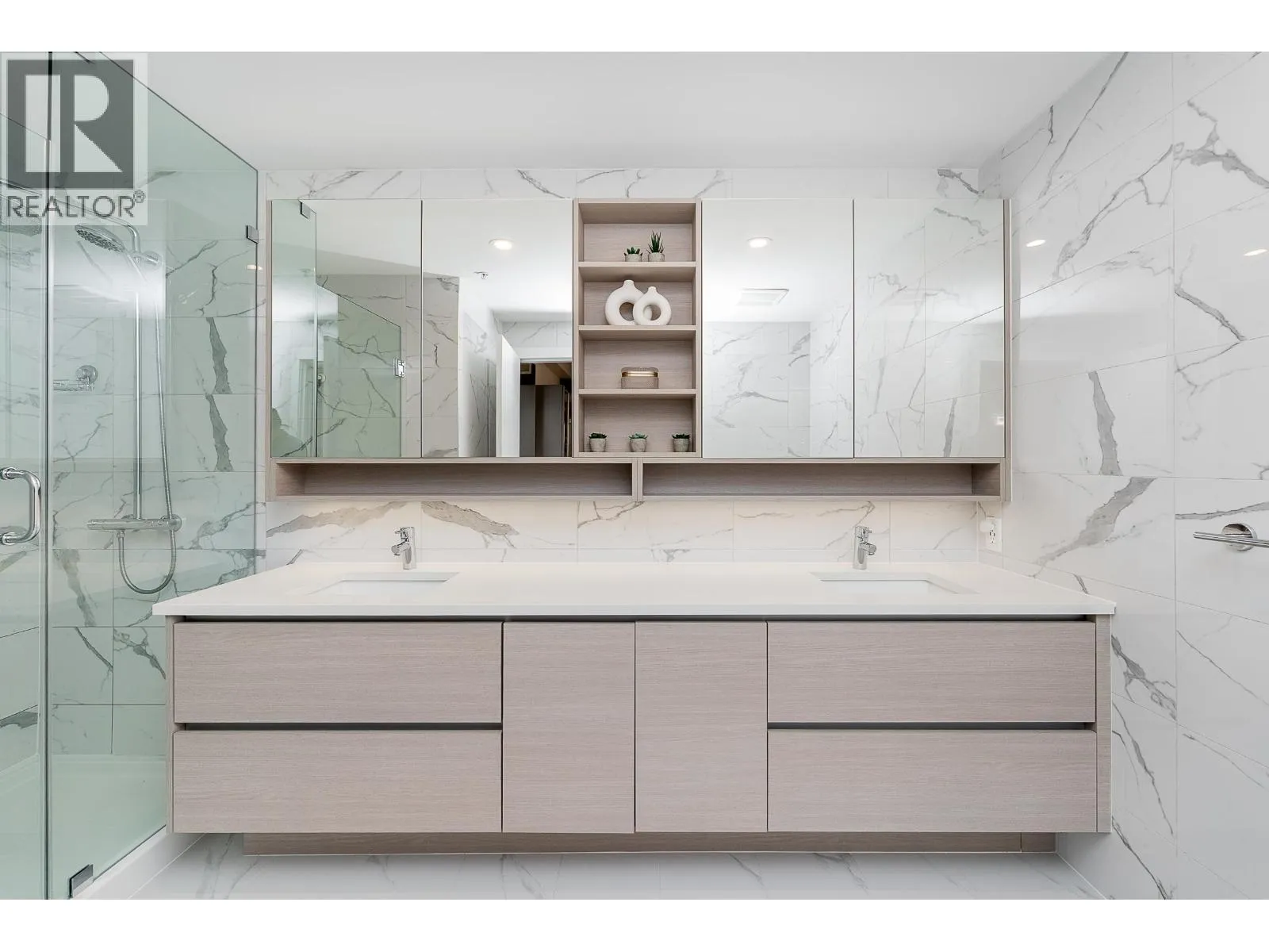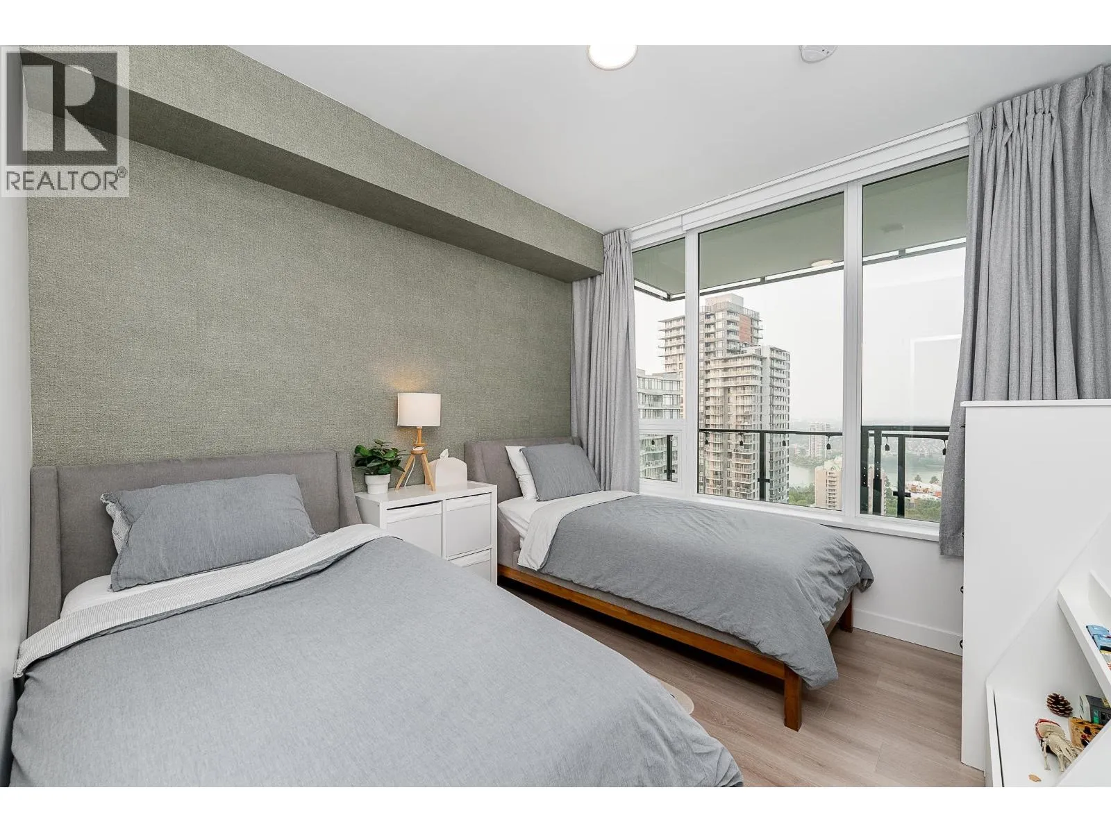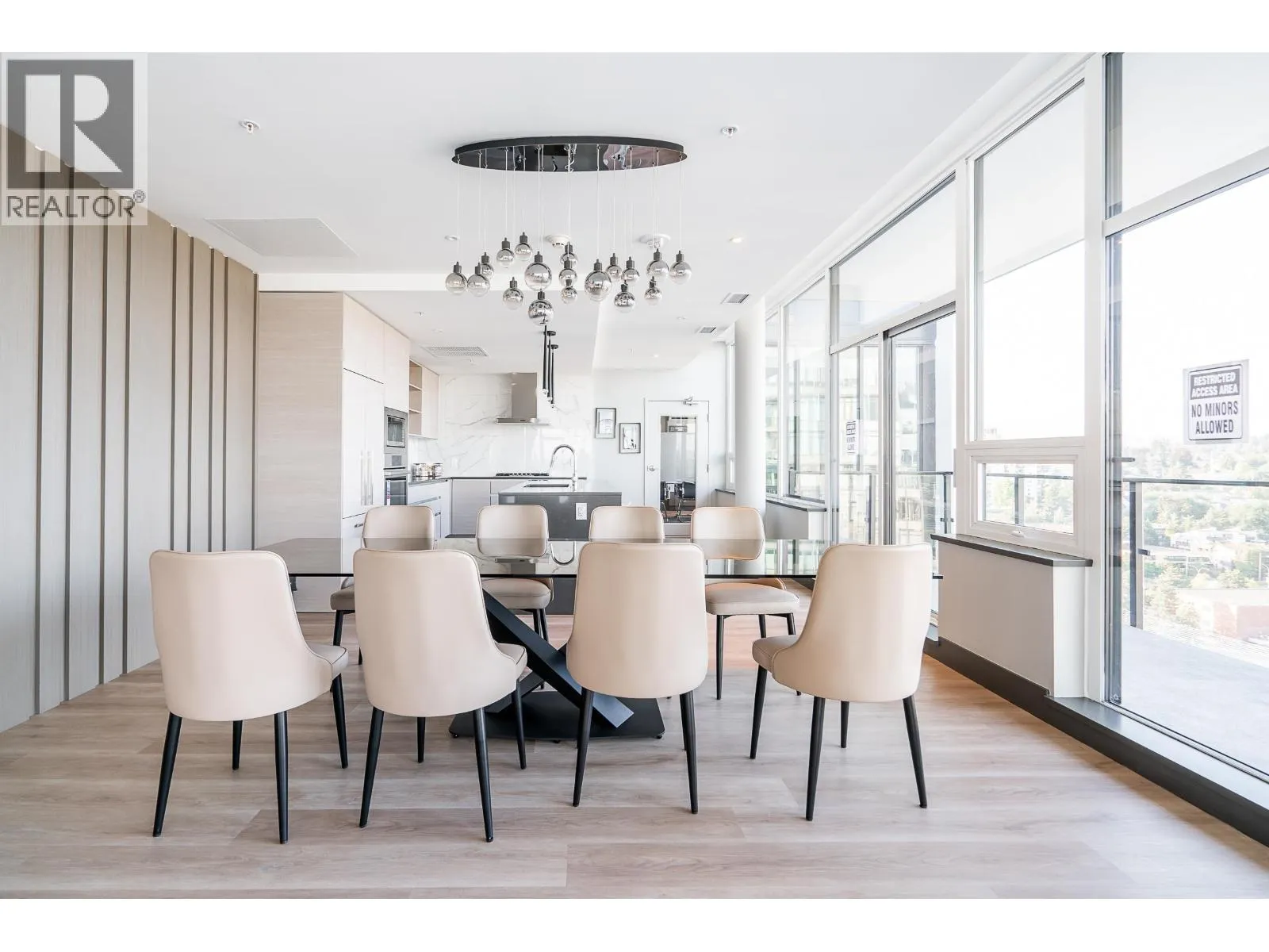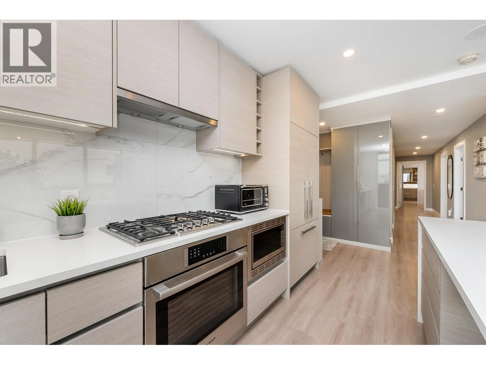 Sky-high luxury living at Ovation, in the heart of downtown New Westminster - NO GST! This beautifully updated 3 bed, 2 bath residence features 2 side-by-side parking stalls including an EV charger, 3 storage lockers, and 1245 sq/ft of luxurious living space. Incredible open layout, A/C, and breathtaking views through the oversized windows. The 458 square foot wrap-around balcony is perfect for entertaining, or morning coffee as the sun comes up. The gourmet kitchen offers a sleek design, integrated appliances, quartz counters and contemporary finishes. The spacious primary connects to the spa-like ensuite and large WIC. Outstanding amenities including a rooftop gym, hot tub, clubhouse, concierge services and more. Conveniently located within steps from Skytrain, shopping and restaurants. (id:27476)