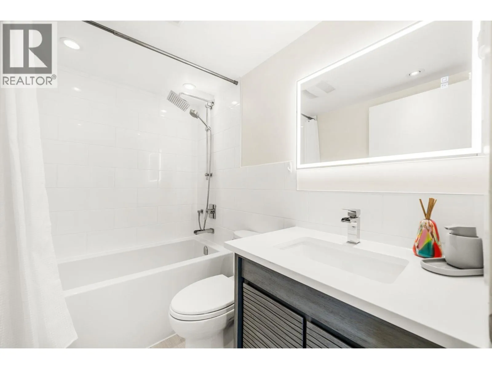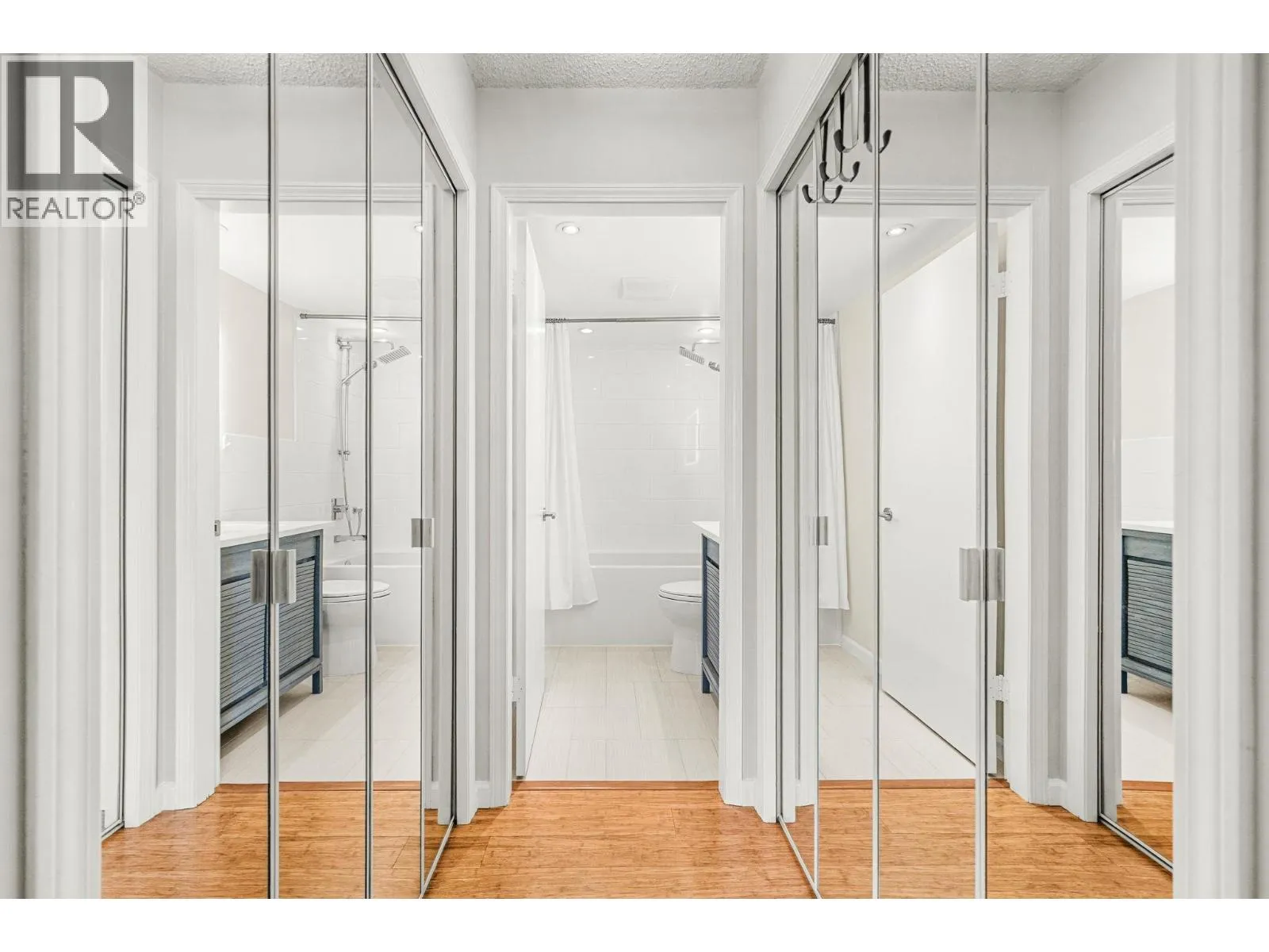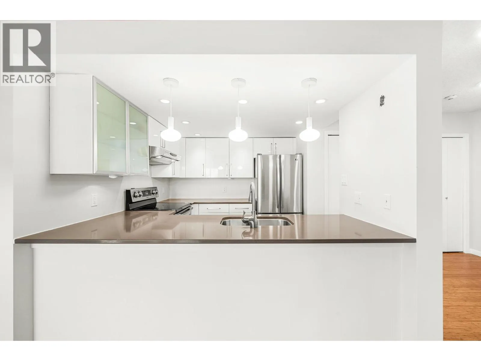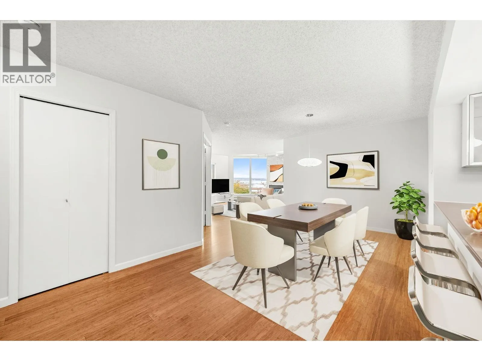 Stunning Fraser River & Mountain views from this beautifully renovated highly desirable '03' End Unit 2 bed 2 bath 1137 sf unit at Palace Quay! Fantastic open concept floorplan features solid engineered bamboo hardwood flooring, quartz counters, custom cabinetry, stainless steel appliances, 2 updated bathrooms. Large living/dining rooms with floor to ceiling windows showing off the beautiful view & an updated gas fireplace with custom marble surround. Good sized bedrooms incl spacious primary with walk through closets & 4 pce ensuite. Great location just a short walk to Glenbrook Ravine Park, Queens Park, Sapperton shopping, groceries, restaurants, cafes & skytrain. Building amenities: indoor pool/hot tub, gym. 1 parking & 1 storage! (id:27476)