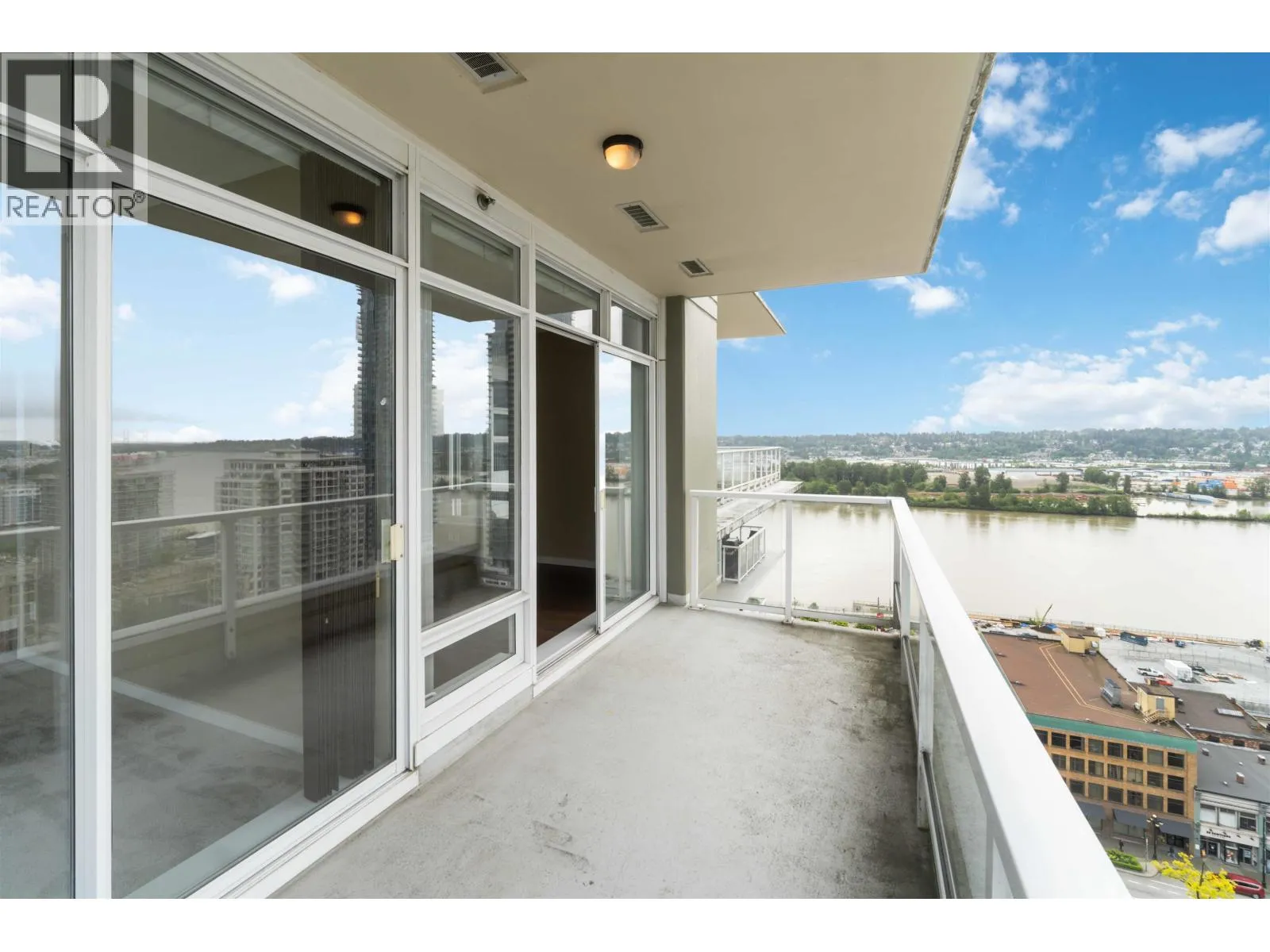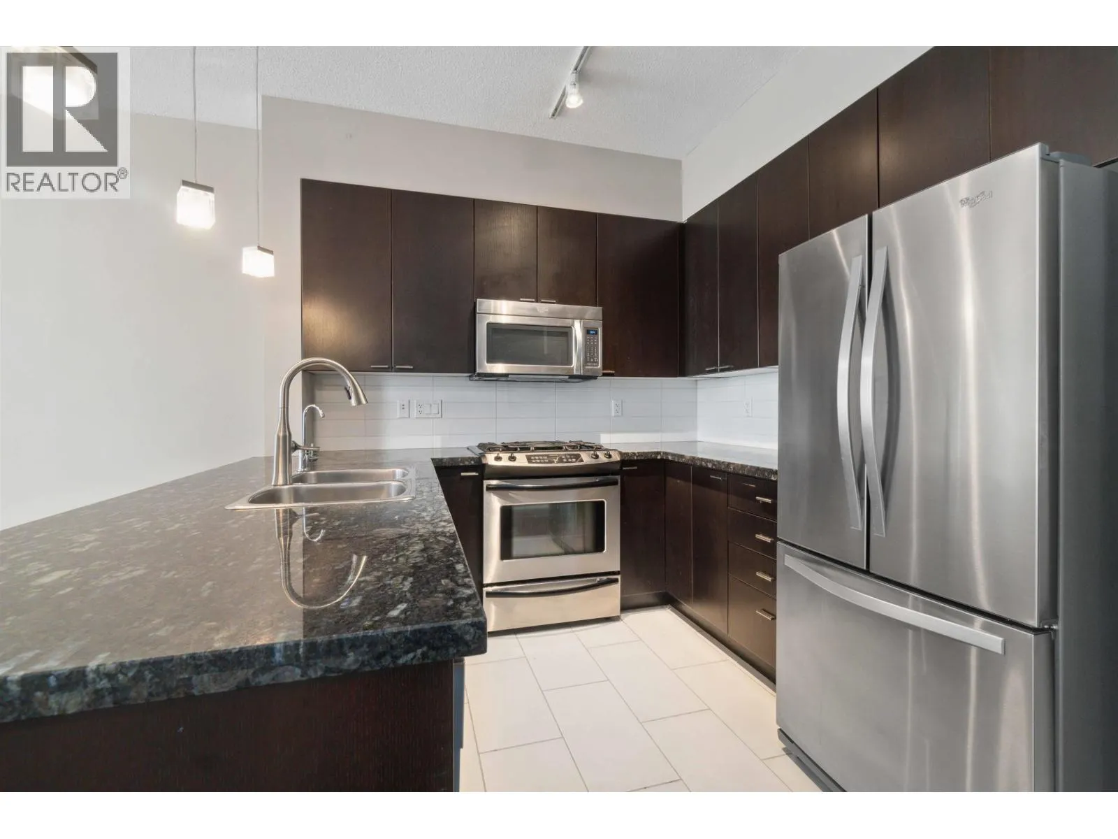 Fantastic 3 bedroom & den, 2 bathroom SUB PENTHOUSE, CORNER UNIT condo. UNOBSTRUCTED SW VIEW OF THE RIVER AND ALEX FRASER BRIDGE. Lots of living space. Very functional floor plan. Primary bedroom is separate from the other two bedrooms with a 4 pc ensuite & walk-in shower. Hardwood flooring in the main living area, carpets in the bedrooms. Nice size kitchen with stainless appliances & granite counters & breakfast bar. Huge windows give you lots of natural light. Two balconies, one off the den & one off the living room. Very well priced. 2 parking & large storage locker. 2 dogs & 2 cats okay. Have an outside garden & play area for your kiddos. Gym & meeting room. On-site caretaker. Well managed building. Quality built by Bosa. Showings by appointment. (id:27476)