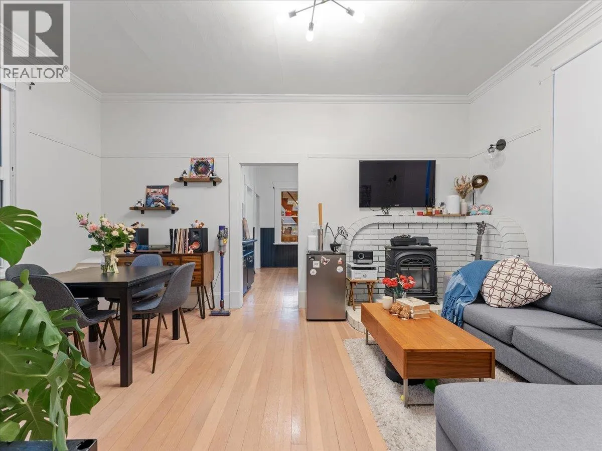 The perfect Moody Park starter home with timeless charm and modern comfort! This wonderfully maintained character house features overheight ceilings on the main, vintage details, and thoughtful updates throughout. Enjoy a bright and cozy living space with refinished fir floors, newer windows, and an updated kitchen with gas stove and quartz counters. The spacious bedroom on the main means no stairs for easy living, while the versatile loft offers space for a home office, guest room, or studio. Downstairs, the unfinished basement provides endless potential-perfect for a workshop, storage, or future ideas. The sunny south-facing backyard is ideal for a veggie garden, hobbies, or simply relaxing outdoors. With lane access, a large entertaining deck, and easy access to Kingsway, Highgate shopping, parks, schools, and more-this move-in-ready gem blends character and convenience in the heart of New Westminster. (id:27476)