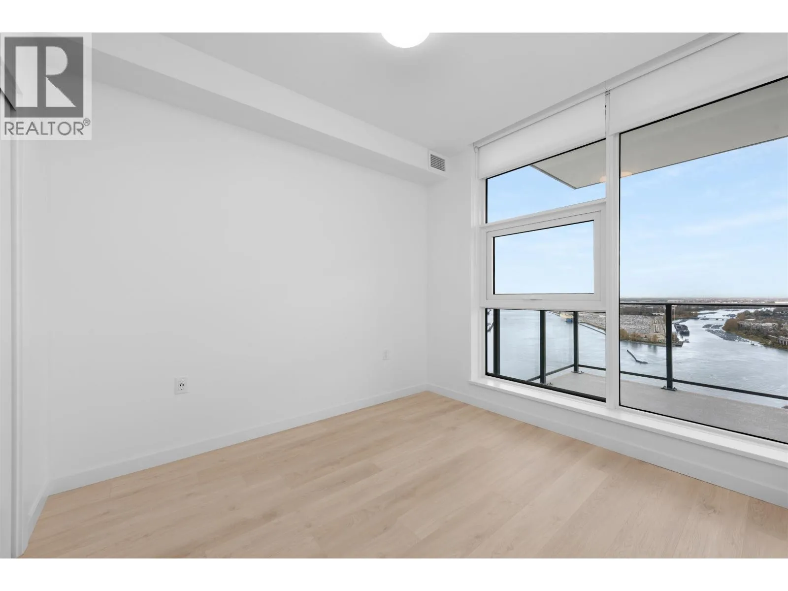 Welcome to Pier West, offering an ideal blend of tranquility & urban convenience. This spacious West facing 2 Bedroom, 2 Bathroom residence boasts a thoughtfully designed layout & is equipped with high-end Bosch appliances, wide plank flooring & Air conditioning. The sleek kitchen features solid slab Caesarstone waterfall countertops, matching backsplash & generous storage, catering to culinary enthusiasts. The 2 Bathrooms feature expansive countertops, under-cabinet lighting & Nu-Heat in-floor heating for added comfort. Located just steps from skytrain, shops and services, this home ensures seamless access to City life. The 10,000sf Amenities include; Concierge, Fitness centre, Private dining lounge, steam & sauna. 1 Parking & 1 Storage. (id:27476)
