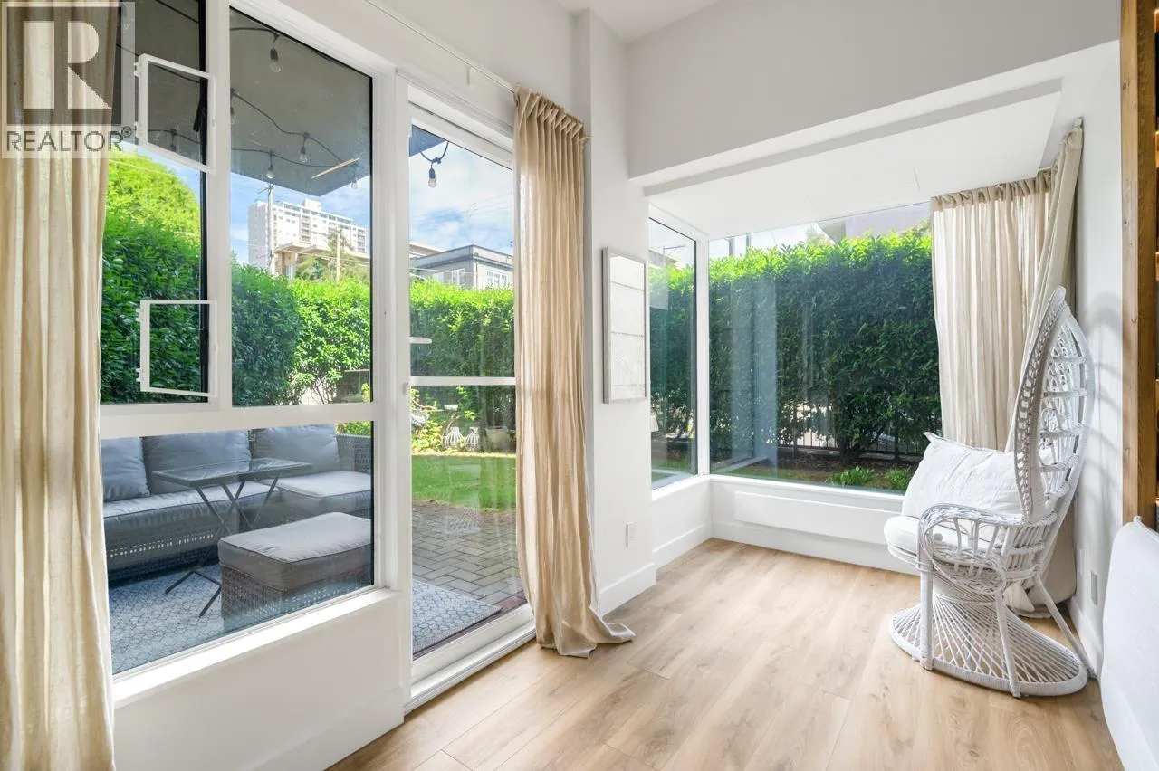 Stunning, fully renovated 2 bed, 2 bath ground floor corner unit with a huge private garden patio in a concrete building with direct SkyTrain access. Features include Euro oak flooring, Lutron smart lighting, spa-inspired bathrooms with imported tile, towel warmers, custom mirrors, and a built-in library. Furniture included. Enjoy secure parking, pool, sauna, gym, and rooftop patio. Located steps from shops, restaurants, daycares, schools, Royal Columbian Hospital, and the Quay. Pet and rental friendly - a rare ground-floor gem in vibrant New Westminster. (id:27476)
