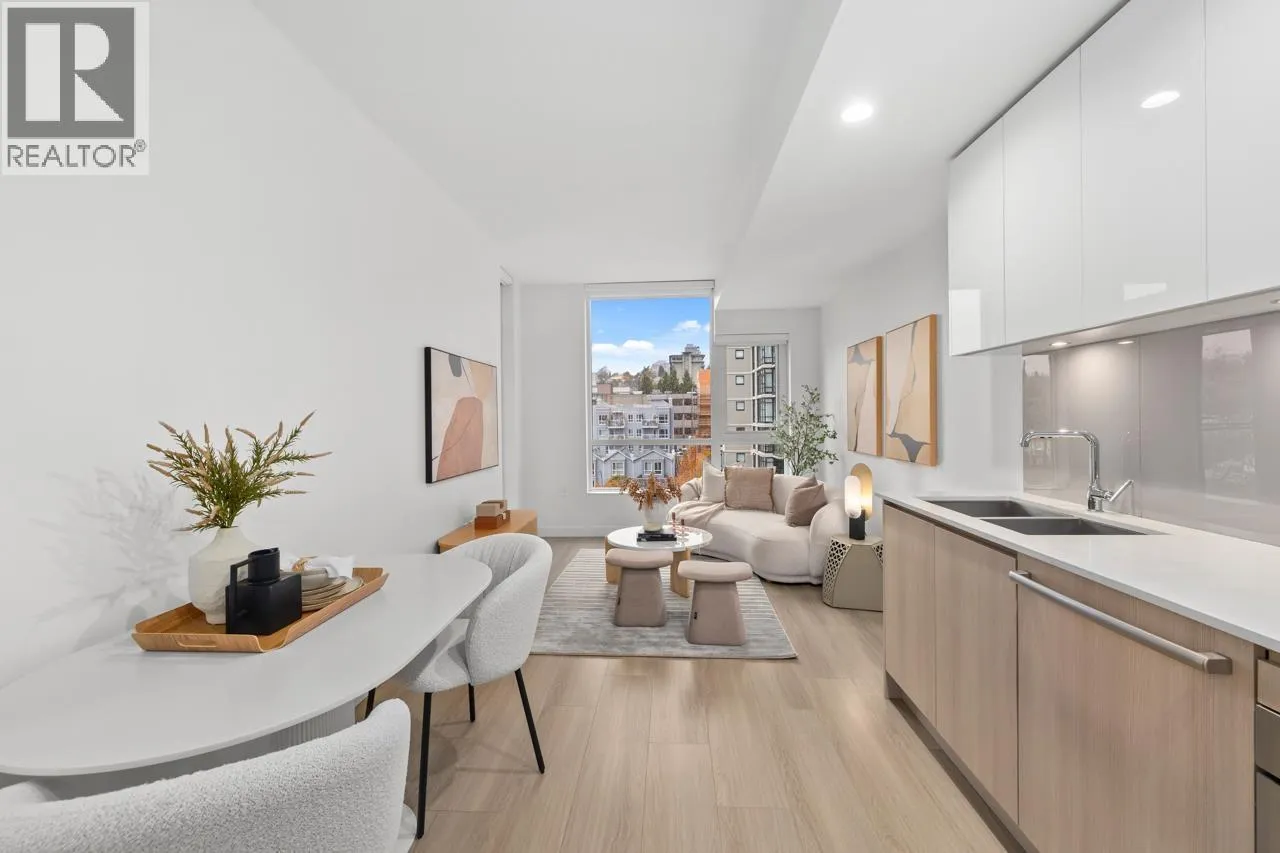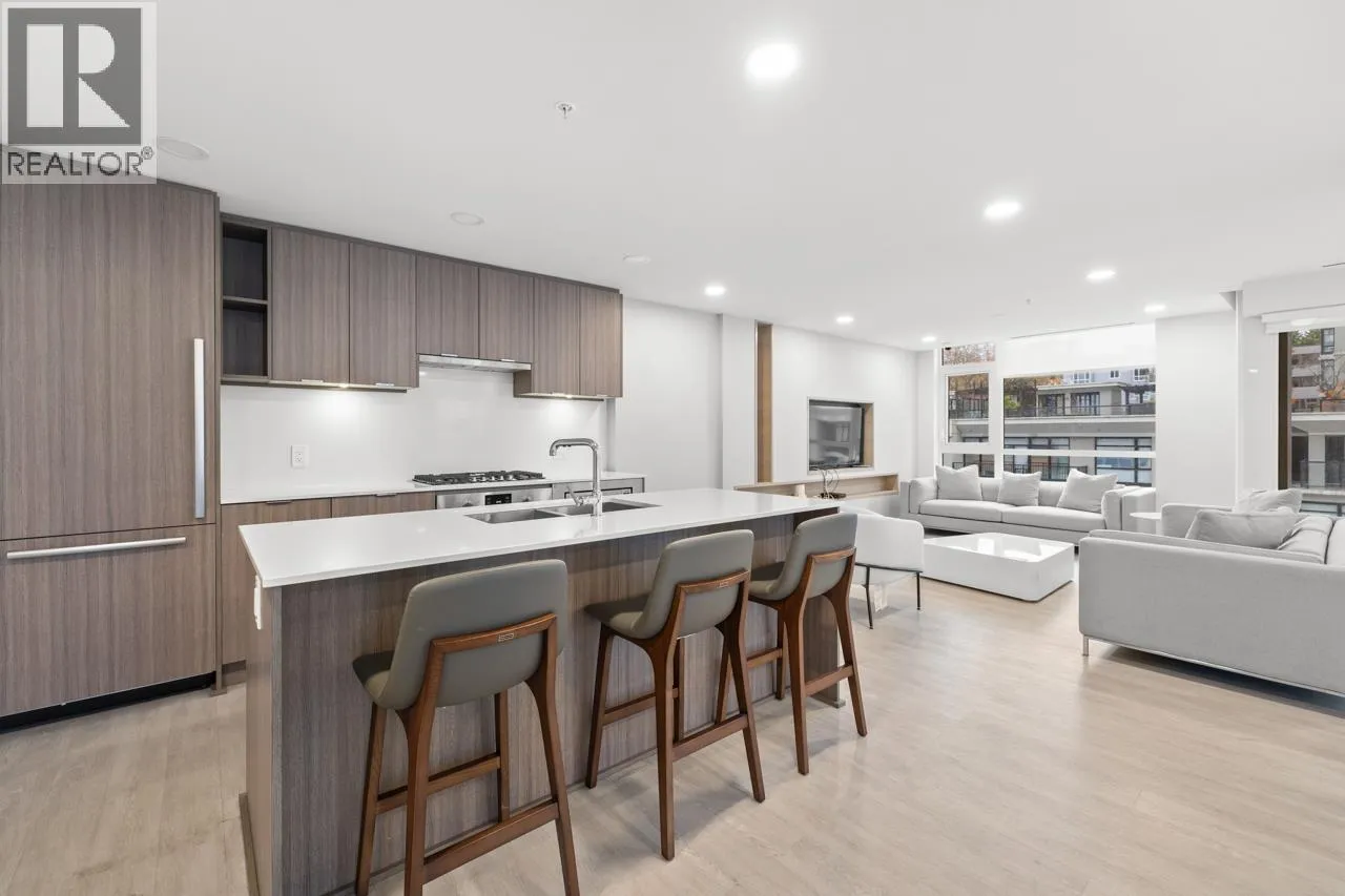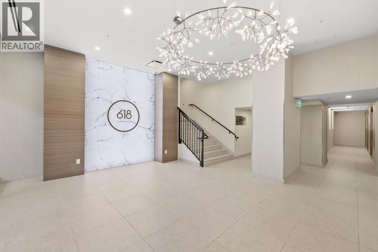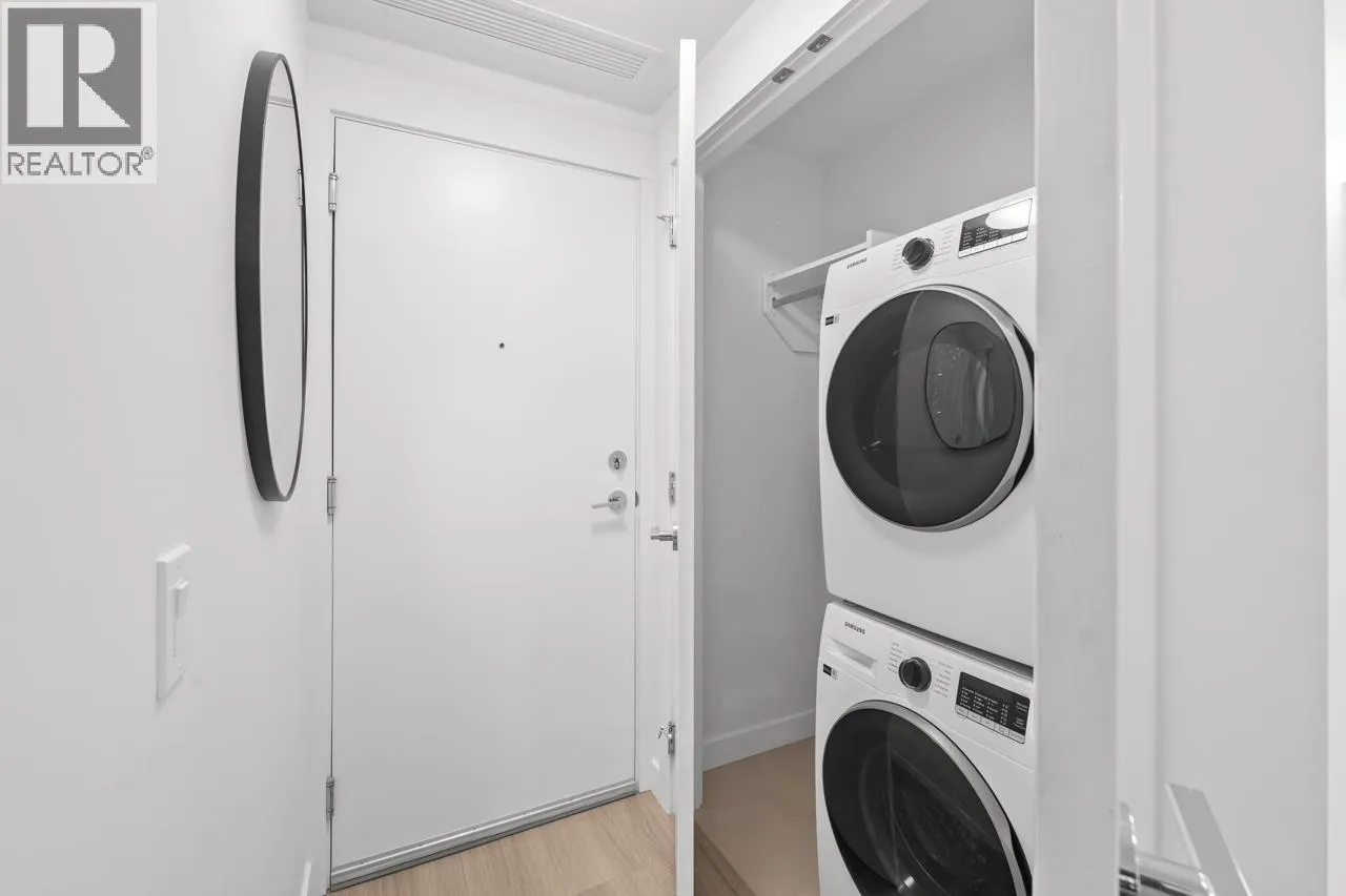 Welcome to this newer 1 bed home in 618 CARNARVON, a LUXURY CONCRETE BUILDING in the heart of DOWNTOWN NEW WESTMINSTER. This BRIGHT and AIR CONDITIONED home features an OPEN CONCEPT layout with an abundance of natural light and a spacious living and dining area that flows seamlessly to an OVERSIZED COVERED BALCONY. The CHEF-INSPIRED KITCHEN includes S/S BOSCH APPLIANCES, GAS COOKTOP, QUARTZ COUNTERS, and SOFT-CLOSE CABINETRY. The generously sized bedroom offers a TRANQUIL RETREAT, while the spa-inspired bathroom and IN-SUITE LAUNDRY add everyday convenience. Enjoy impressive AMENITIES including a GYM, MEETING ROOM, MULTIPLE ROOFTOP TERRACES, GARDENS, SOCIAL LOUNGE, and GUEST SUITE. PETS and RENTALS allowed. Includes 1 PARKING and 1 STORAGE. OPEN HOUSE SAT, NOV 15 2-4PM & SUN, NOV 16 12-2PM (id:27476)