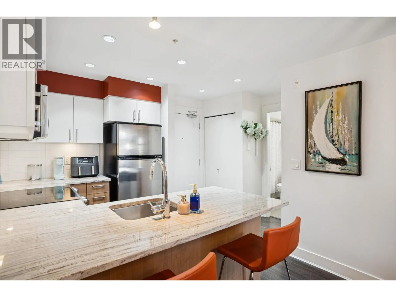 Welcome home to Eightwest in Glenbrooke North! This beautiful 1 bedroom home is located on the quiet side of the building with superior privacy. This home is for you if you are looking for space, quality & convenience. Relax or entertain in the open concept living area adjoining the kitchen with lots of counter space & a breakfast nook for extra seating. Well designed with 568 SF & filled with natural light. Walking distance to Queen's Park, Safeway, Canada Post, schools, transit & more. 1 underground parking stall, 1 storage locker & insuite laundry included. Perfect for first time buyers, downsizers & investors. Rentals & pets allowed. (id:27476)