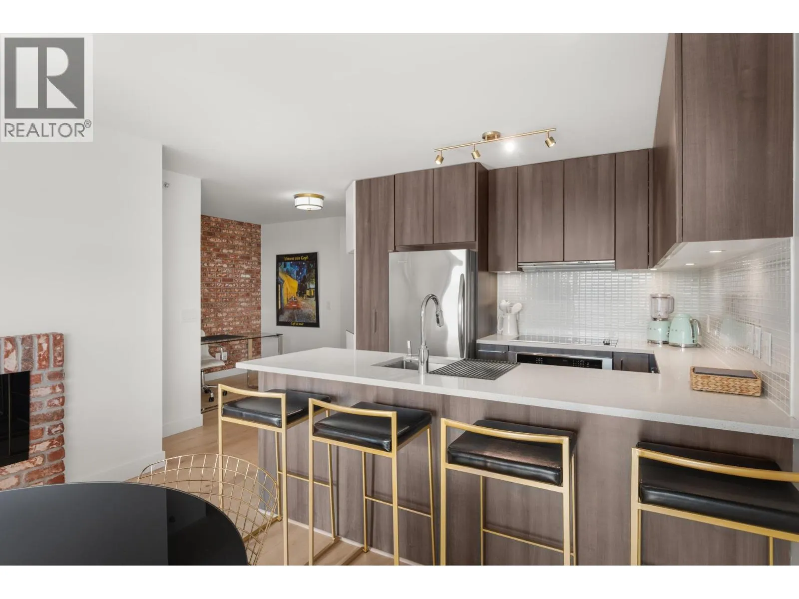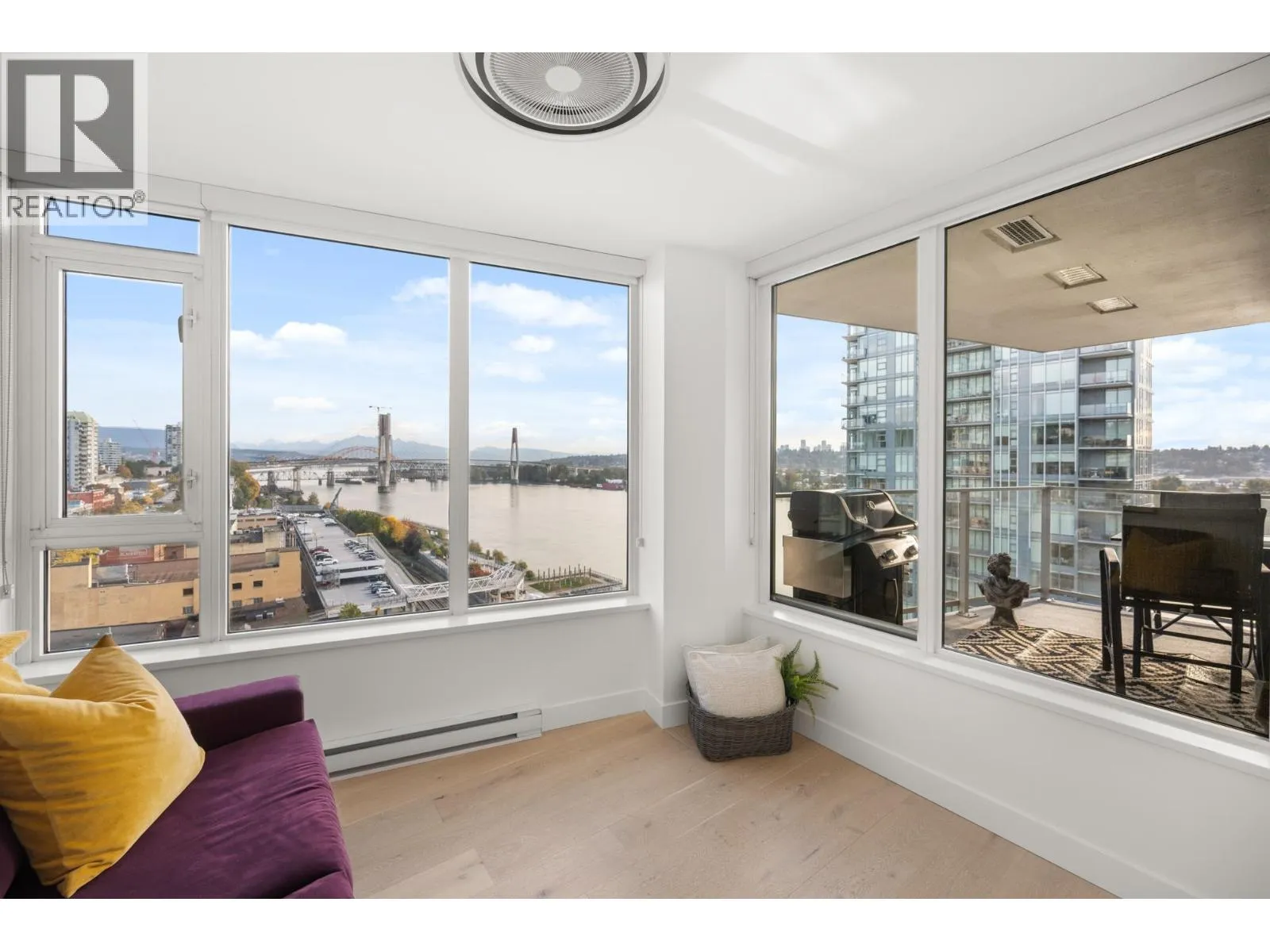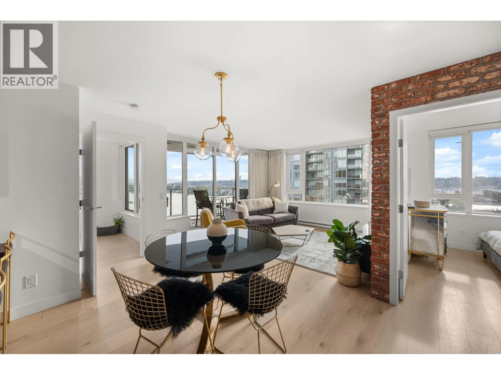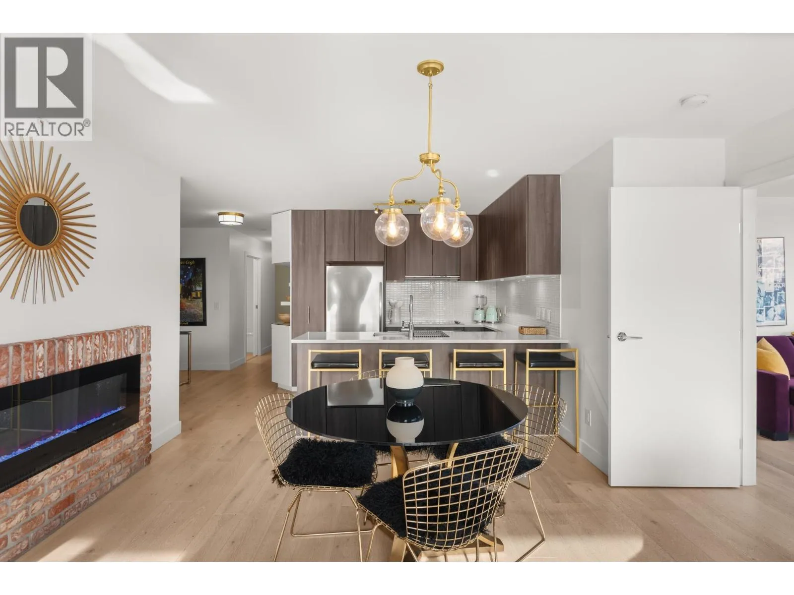 OPEN HOUSE SAT Nov15th 1-3PM! View & Location! This STUNNING 2 BDRM 2 BTHRM + DEN corner unit at Trapp + Holbrook! A blend of modern comfort, custom upgrades & an unbeatable location! Enjoy sweeping views of the Fraser River & mountains from every room. Stylish living space filled with natural light, featuring exposed brick walls, designer paint, engineered HW flooring & new light fixtures throughout. The unit impresses with a custom pull-out pantry, sleek quartz counters, a stylish tile backsplash, premium S/S appliances, built-in storage, an inviting electric fireplace & custom window coverings. Steps to SkyTrain, shopping, restaurants, Pier Park & River market! Amenities include Gym, Clubhouse, rooftop deck with gas fire pit & BBQ. 1 Secure U/G Parking & 1 Locker! (id:27476)