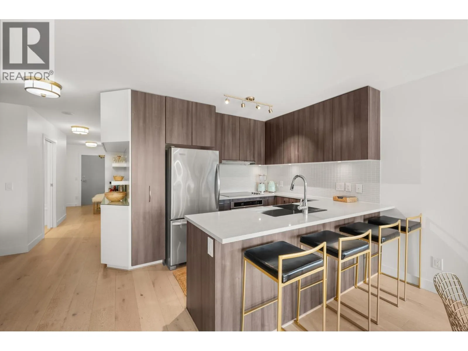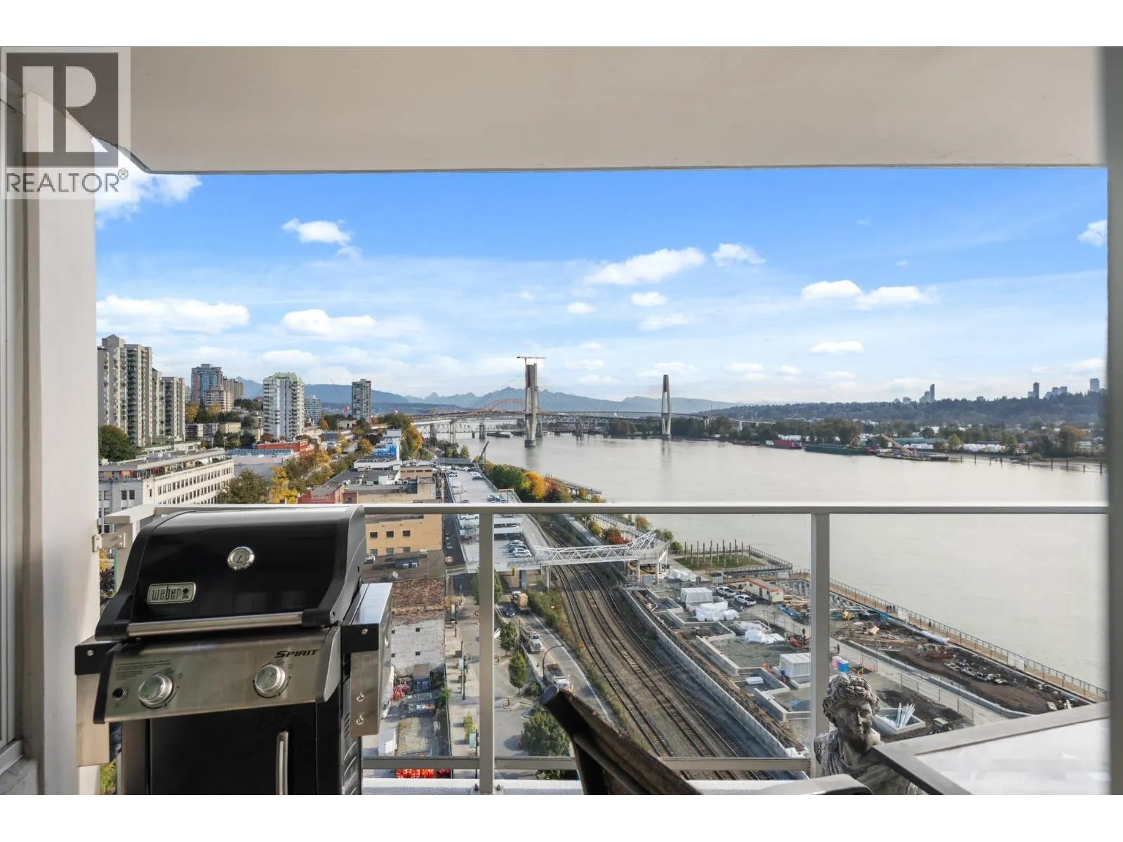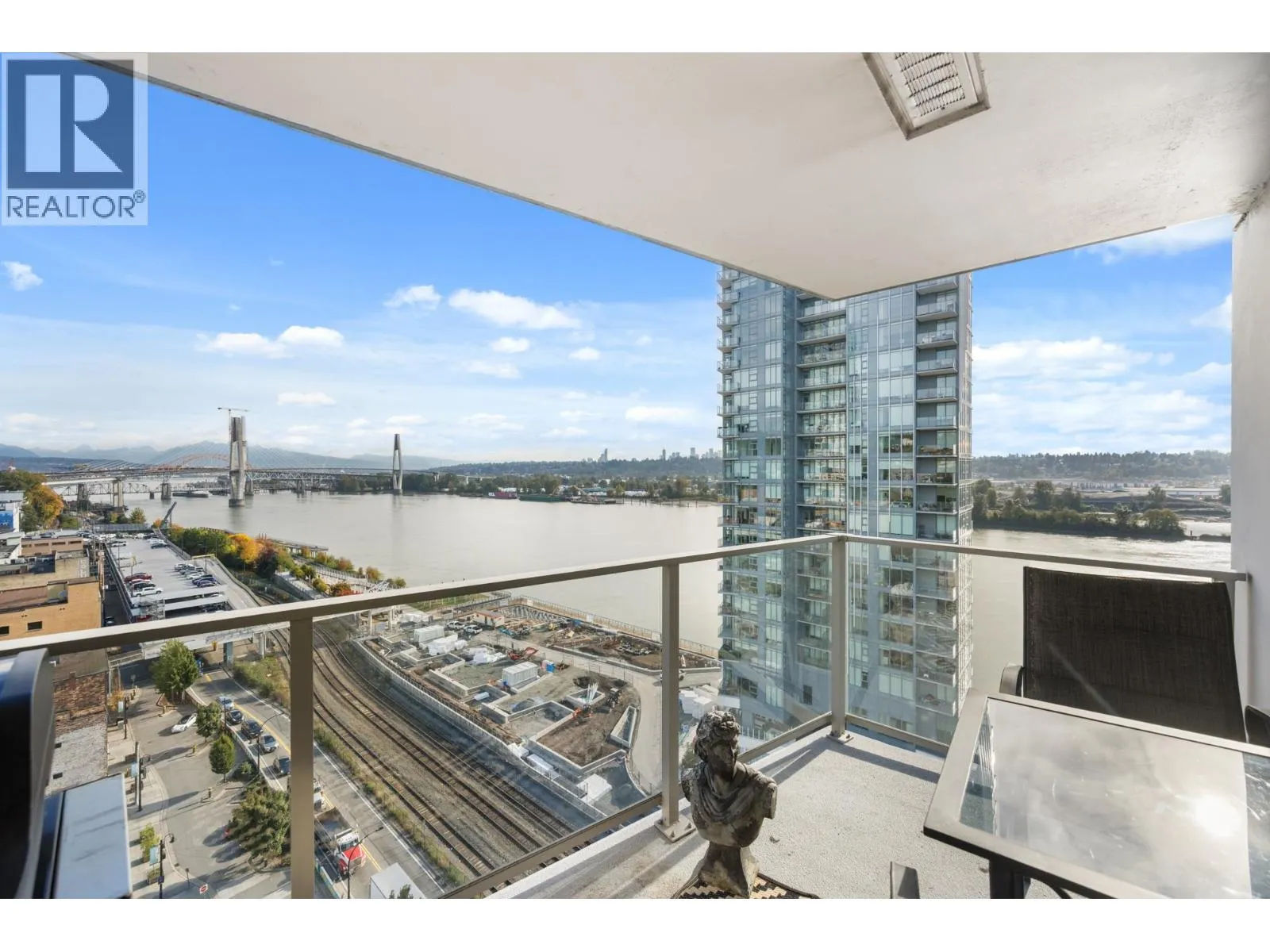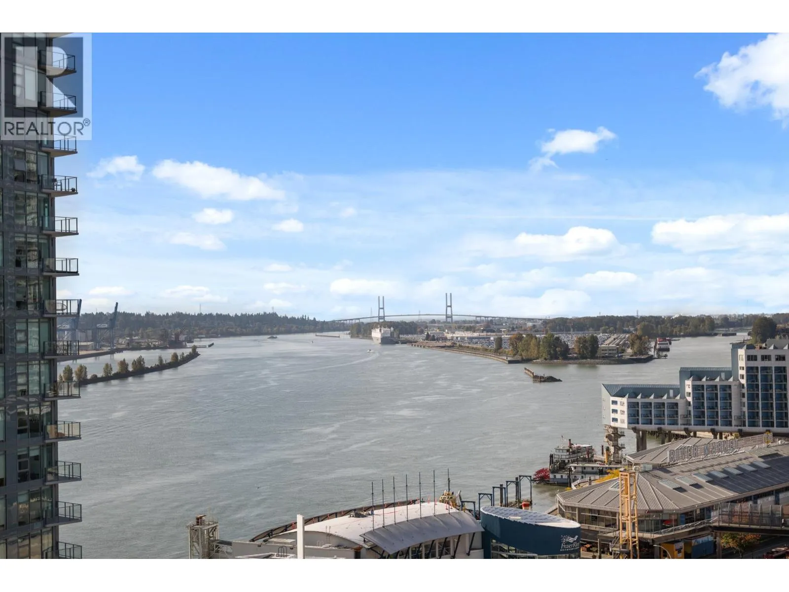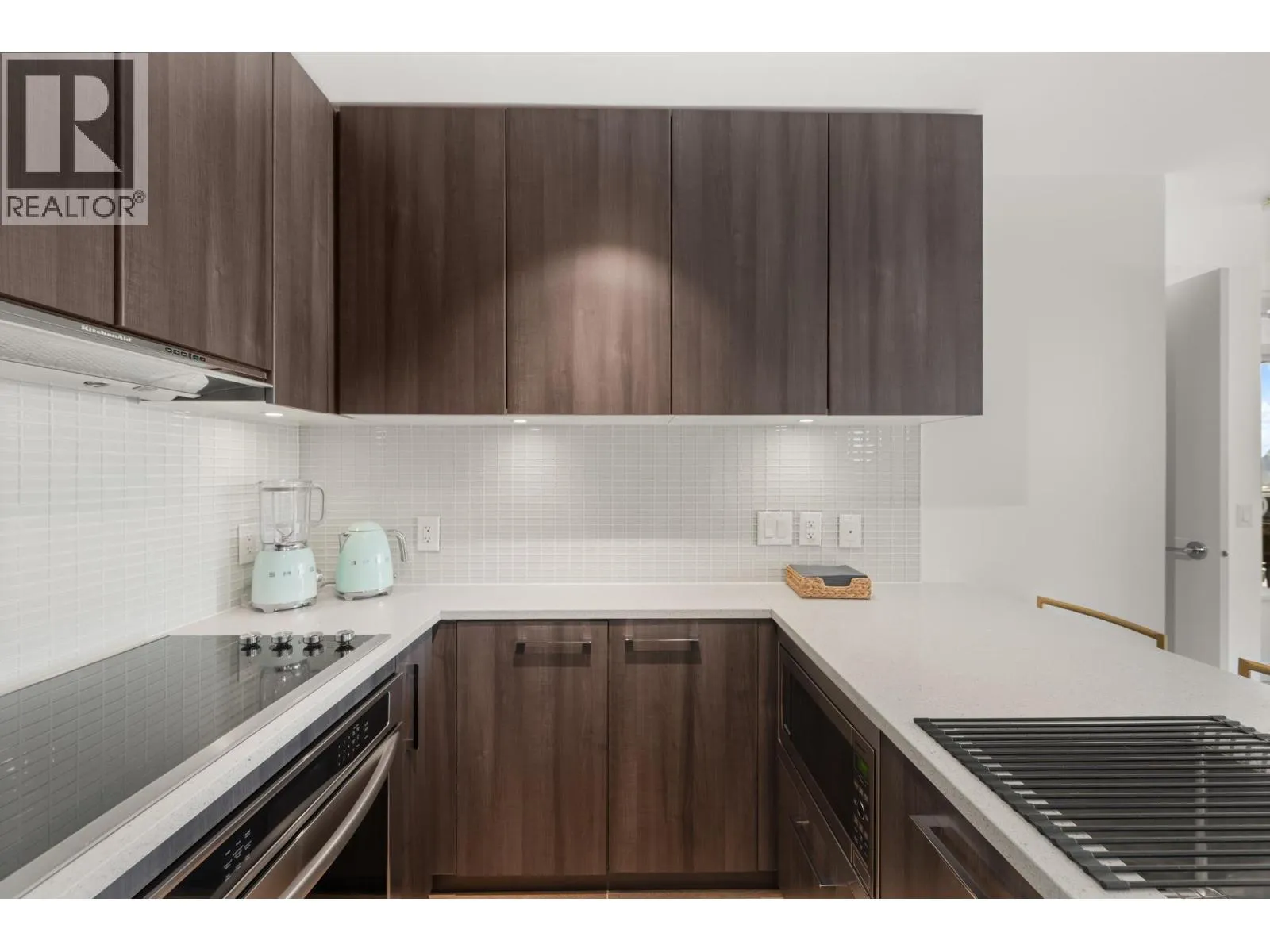 OPEN HOUSE SAT Nov15th 1-3PM! View & Location! This STUNNING 2 BDRM 2 BTHRM + DEN corner unit at Trapp + Holbrook! A blend of modern comfort, custom upgrades & an unbeatable location! Enjoy sweeping views of the Fraser River & mountains from every room. Stylish living space filled with natural light, featuring exposed brick walls, designer paint, engineered HW flooring & new light fixtures throughout. The unit impresses with a custom pull-out pantry, sleek quartz counters, a stylish tile backsplash, premium S/S appliances, built-in storage, an inviting electric fireplace & custom window coverings. Steps to SkyTrain, shopping, restaurants, Pier Park & River market! Amenities include Gym, Clubhouse, rooftop deck with gas fire pit & BBQ. 1 Secure U/G Parking & 1 Locker! (id:27476)
