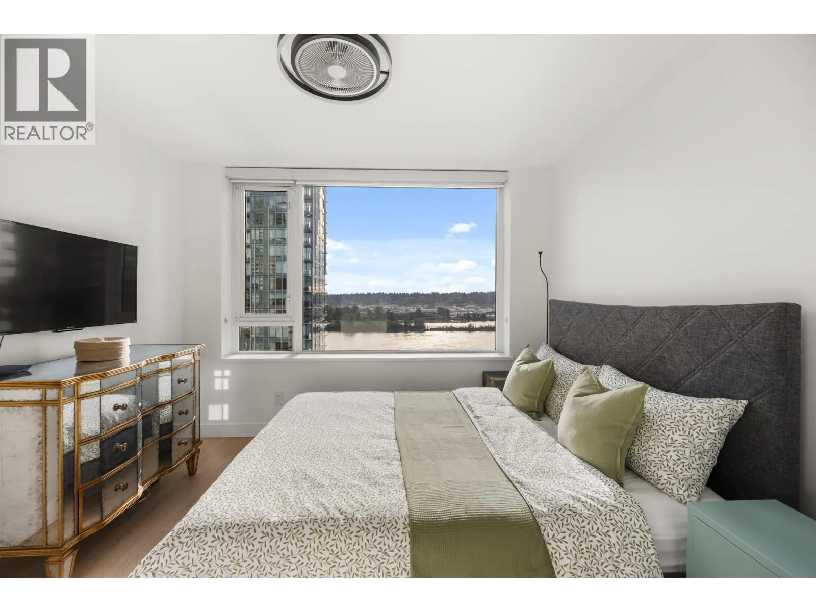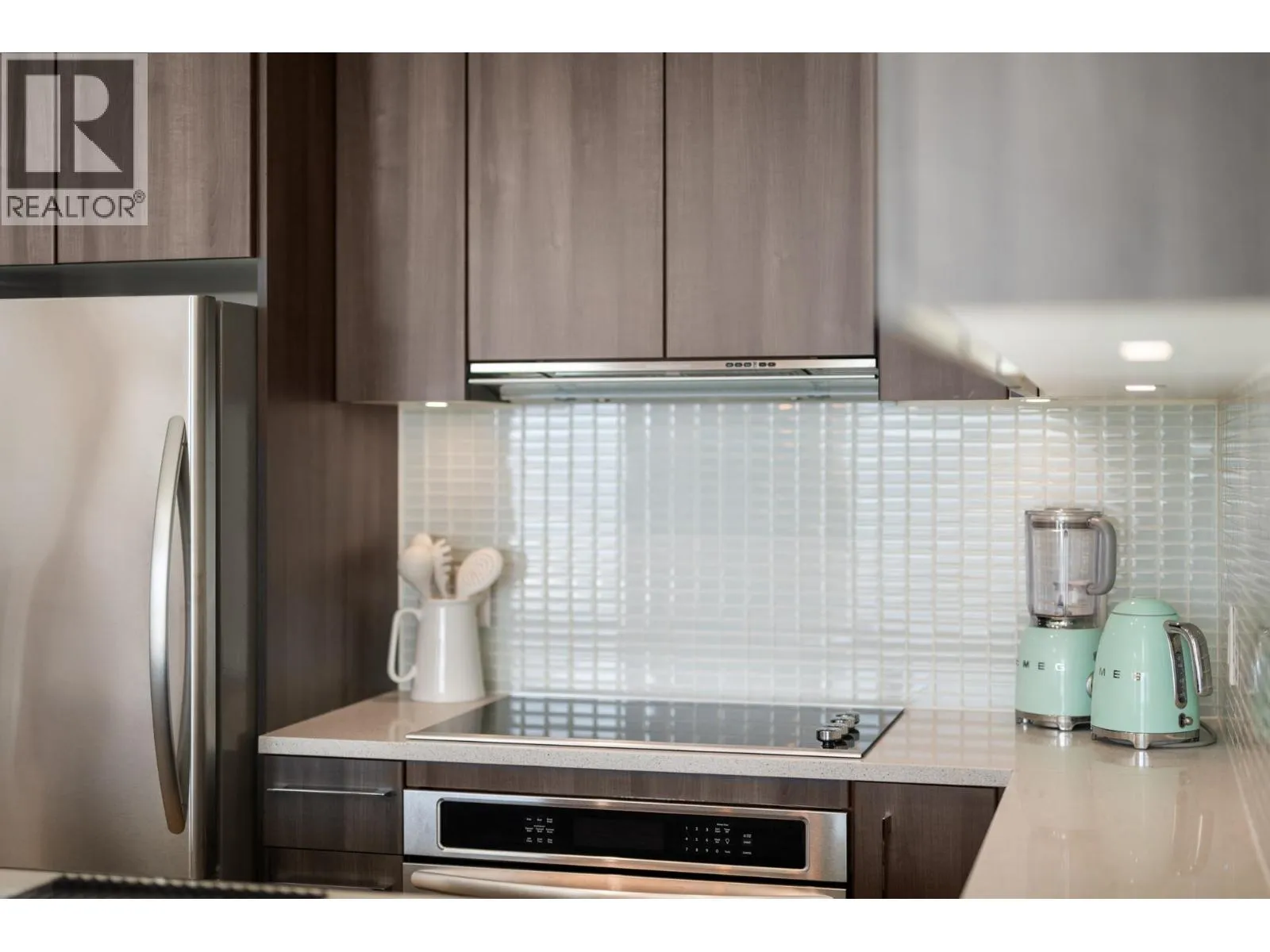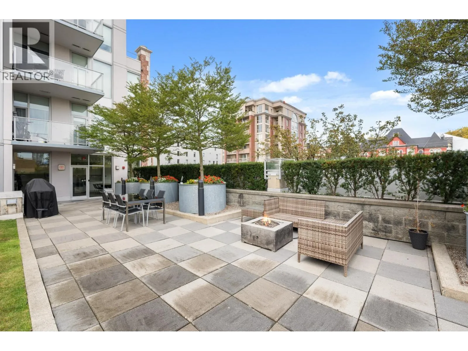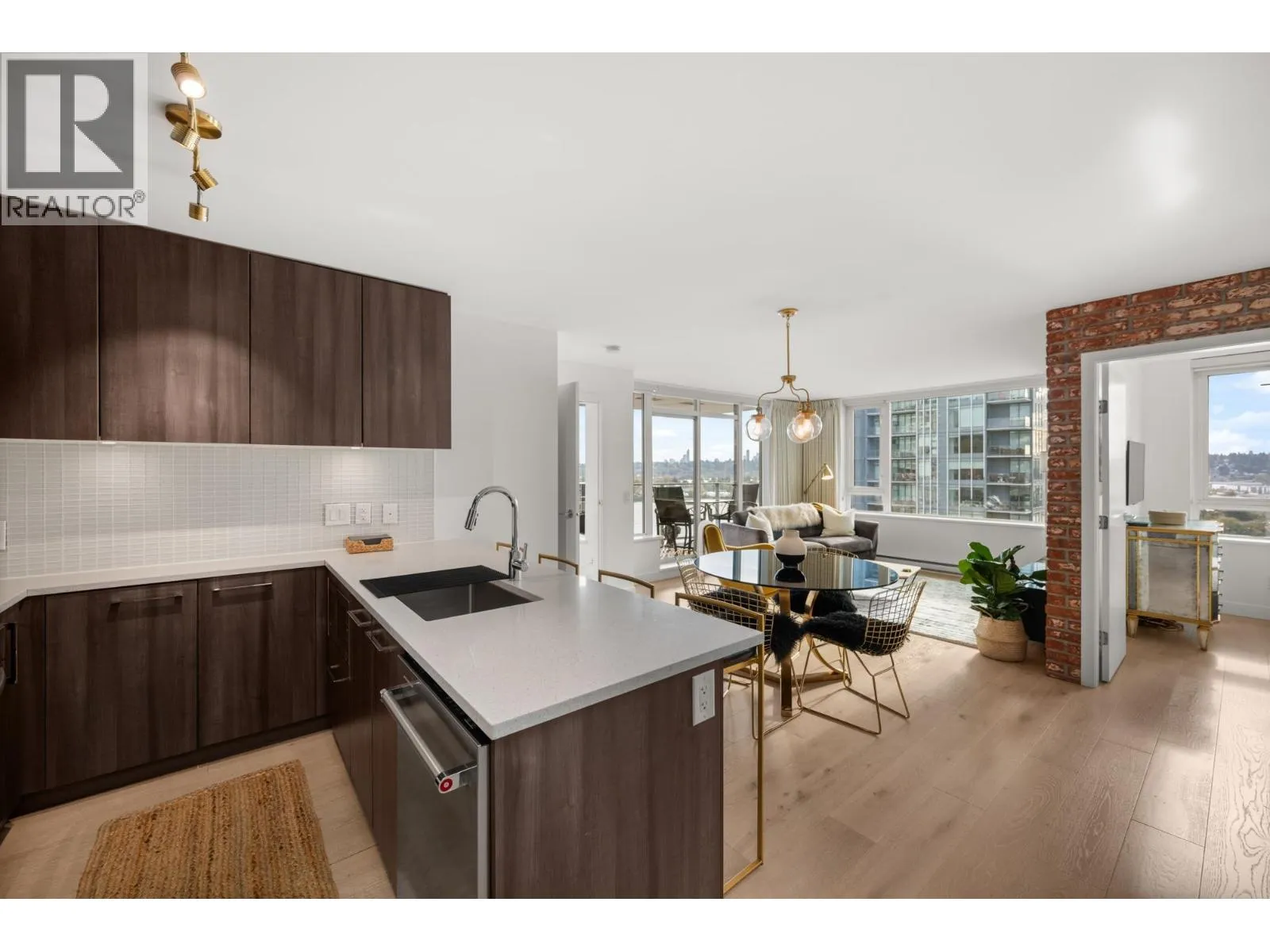 OPEN HOUSE SAT Nov15th 1-3PM! View & Location! This STUNNING 2 BDRM 2 BTHRM + DEN corner unit at Trapp + Holbrook! A blend of modern comfort, custom upgrades & an unbeatable location! Enjoy sweeping views of the Fraser River & mountains from every room. Stylish living space filled with natural light, featuring exposed brick walls, designer paint, engineered HW flooring & new light fixtures throughout. The unit impresses with a custom pull-out pantry, sleek quartz counters, a stylish tile backsplash, premium S/S appliances, built-in storage, an inviting electric fireplace & custom window coverings. Steps to SkyTrain, shopping, restaurants, Pier Park & River market! Amenities include Gym, Clubhouse, rooftop deck with gas fire pit & BBQ. 1 Secure U/G Parking & 1 Locker! (id:27476)