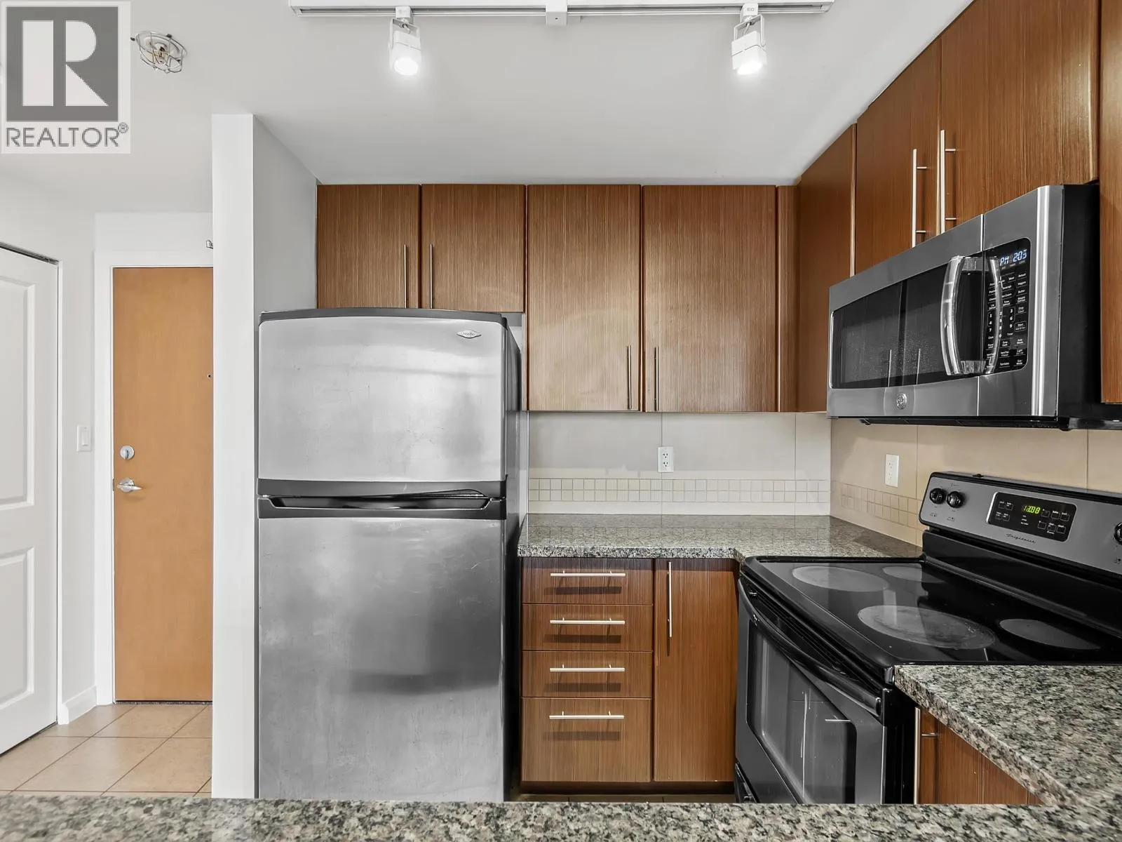 Experience contemporary living in this well-designed New Westminster condo featuring an open-concept layout that enhances comfort and functionality. This 1-bedroom plus den suite offers 632 sq. ft. of bright living space, complete with an expansive balcony showcasing impressive views of the city, Fraser River, and nearby bridges. The den provides added flexibility for work or storage. Residents enjoy convenient amenities, including a gym, steam room, party lounge, and storage locker. With direct integration to the SkyTrain, shopping mall, Cineplex, banks, and numerous dining options, this location ensures effortless access to daily essentials and entertainment. Call to book your private showing! (id:27476)