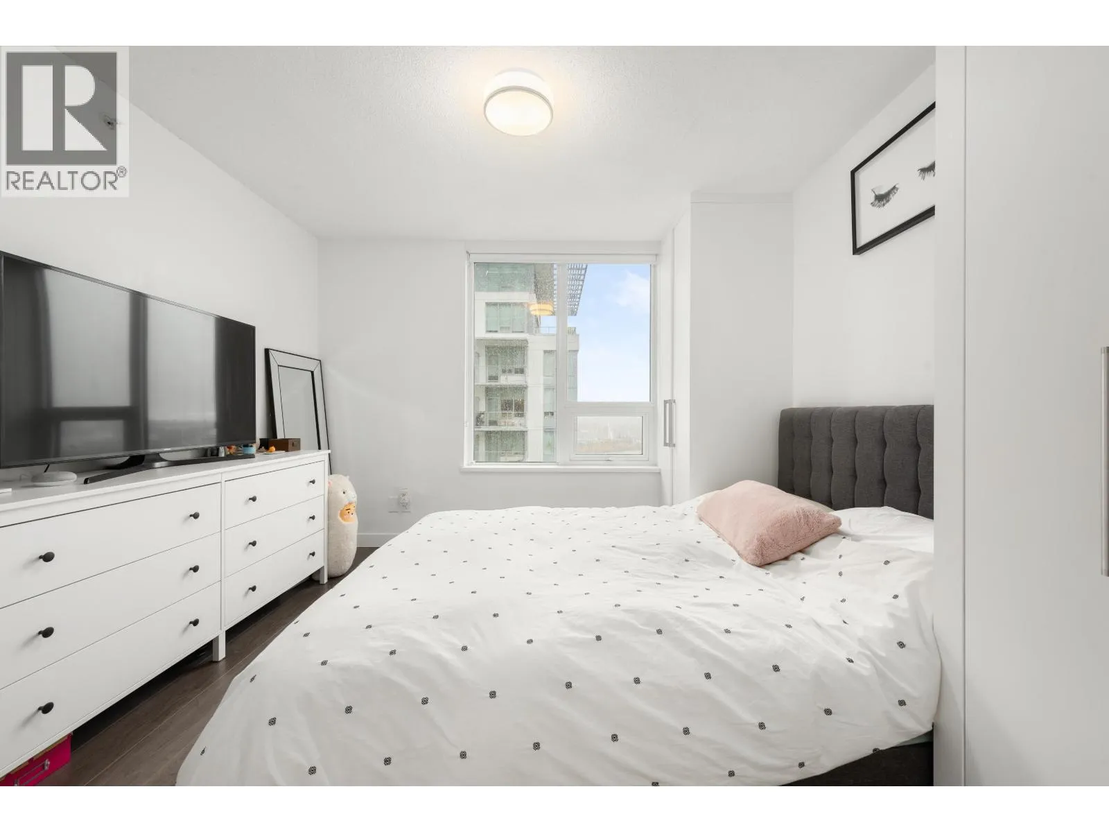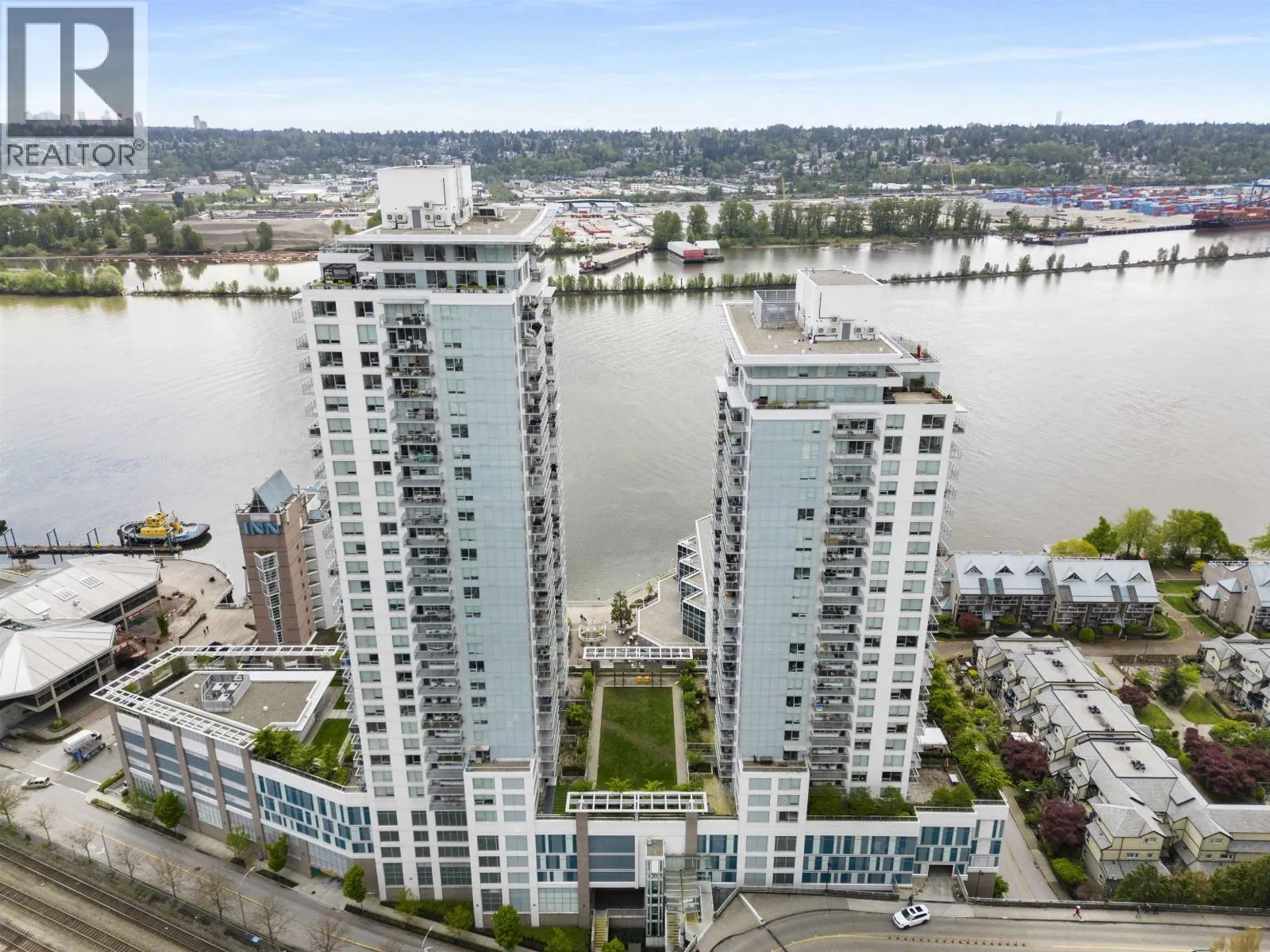 Bright and efficient 2-bed home at Riversky by Bosa featuring 752 sq.ft. of well-designed living. Enjoy an open living/dining area with access to a covered balcony for year-round use. The kitchen offers full-size appliances, ample storage, and a convenient pass-through. Spacious primary bedroom with direct bath access, plus a versatile second bedroom ideal for guests or a home office. In-suite laundry included. Amazing Quay location steps to the boardwalk, River Market, SkyTrain, shops, and dining. Secure building with concierge, gym, lounge, and more. 1 parking + 1 locker. Pets and rentals allowed. (id:27476)
