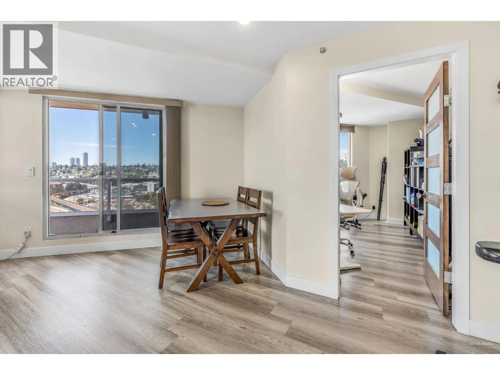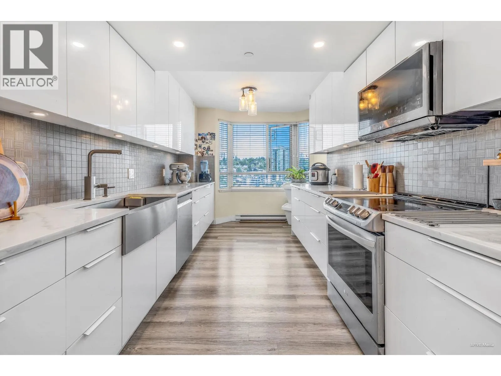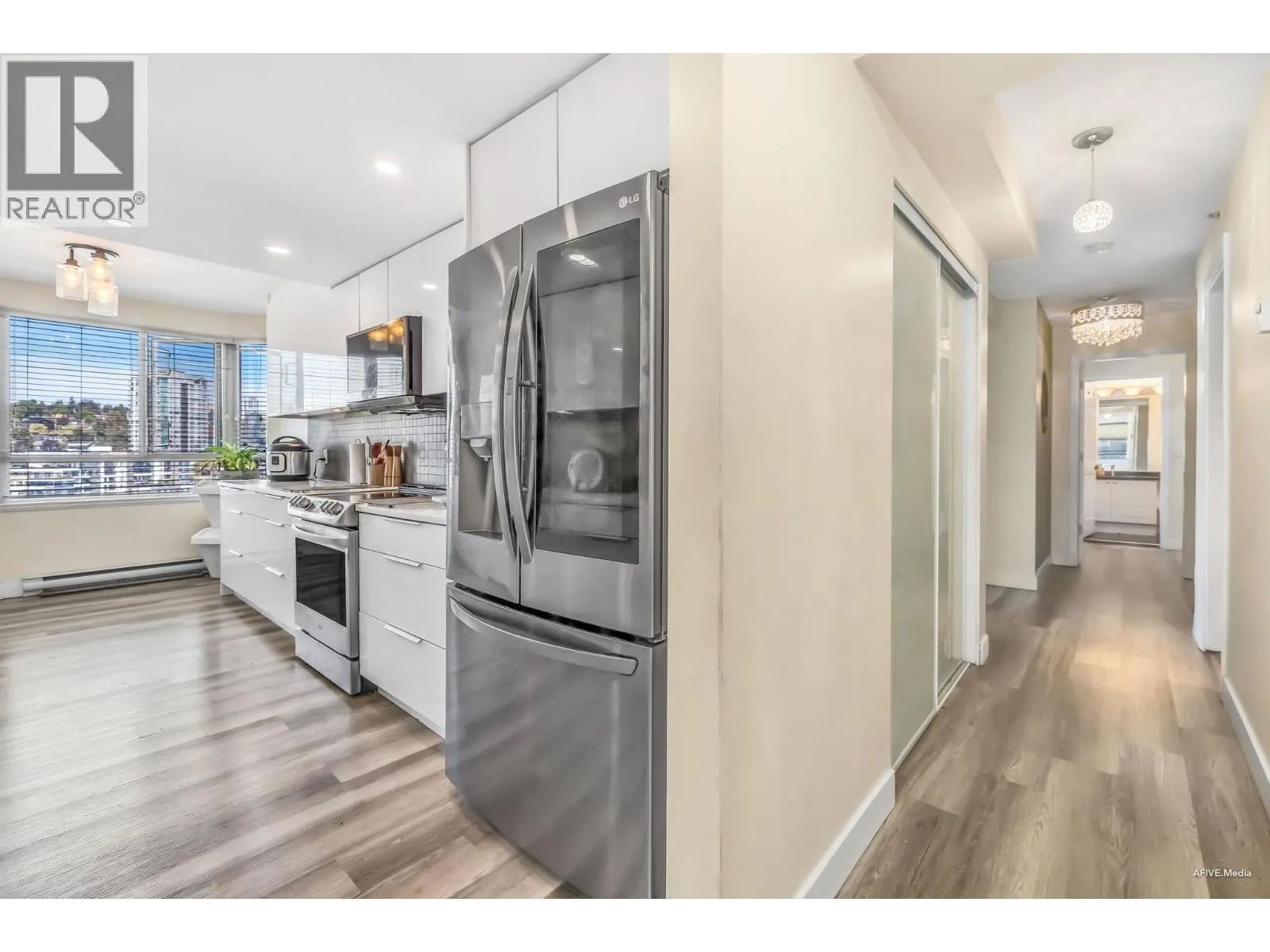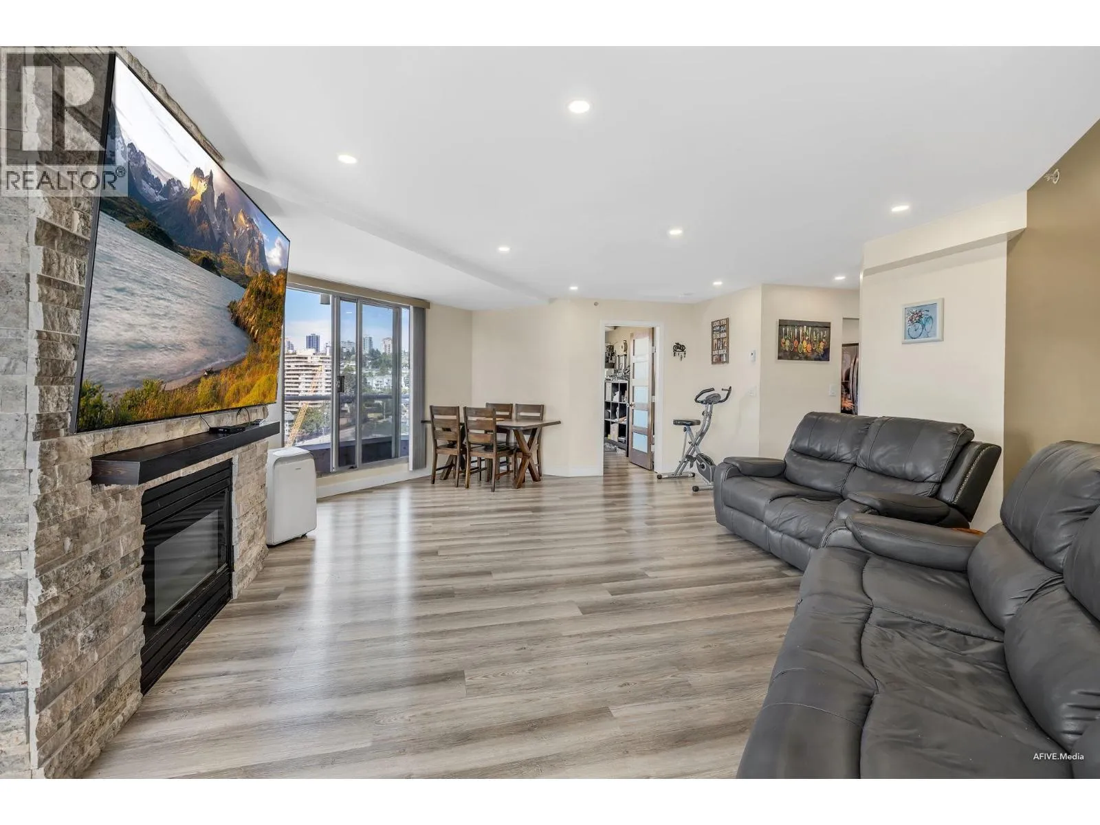 Perched on the 16th floor, this expansive 1,498 sq. ft. suite showcases breathtaking sunset views of the Fraser River from its coveted corner position. Featuring 3 bedrooms + den, 2 balconies,1 parking,oversized windows, and overheight ceilings, this home is flooded with natural light. Located in the heart of the Quay, just steps to the scenic boardwalk, Public Market, SkyTrain, Douglas College, and quick access to Richmond, Surrey, Coquitlam, Burnaby & Vancouver. Upgrades include new acrylic kitchen cabinets, quartz counters, gas fireplace, laminate flooring in all bedrooms. Resort-style amenities: multiple gyms, swimming pool, hot tubs, sauna, billiards room, workshop, guest suite, library, bike storage, craft room, and party room. (id:27476)