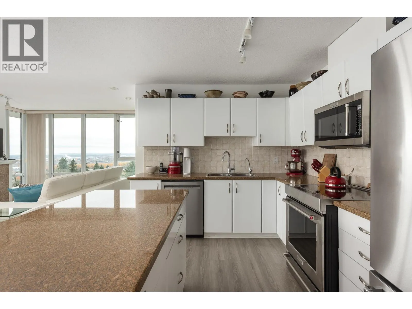 Come home to this 3 BDRM SUB-PENTHOUSE at Bosa´s GENERATIONS in New Westminster's vibrant Uptown neighbourhood. This stunning corner unit home features an exceptional open concept layout with floor-to-ceiling windows that offer spectacular 230-degree VIEWS to the east, south and west. The large kitchen with central island, granite counters and Kitchen Aid appliances (incl induction range) flows seamlessly to both dining and living rooms complete with cosy gas f/p. With three good size bdrms, incl a generous primary with double closets and ensuite, it´s perfect for downsizers and families alike. Comes with two side-by-side parking (near entrance) and separate storage. Ideally situated just steps to nearby parks, shops, schools and restaurants, don´t miss this incredible opportunity. OPEN HOUSE Sunday, November 23 from 3-4:30 pm. (id:27476)