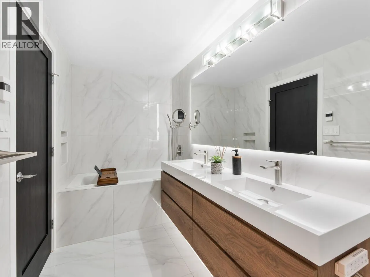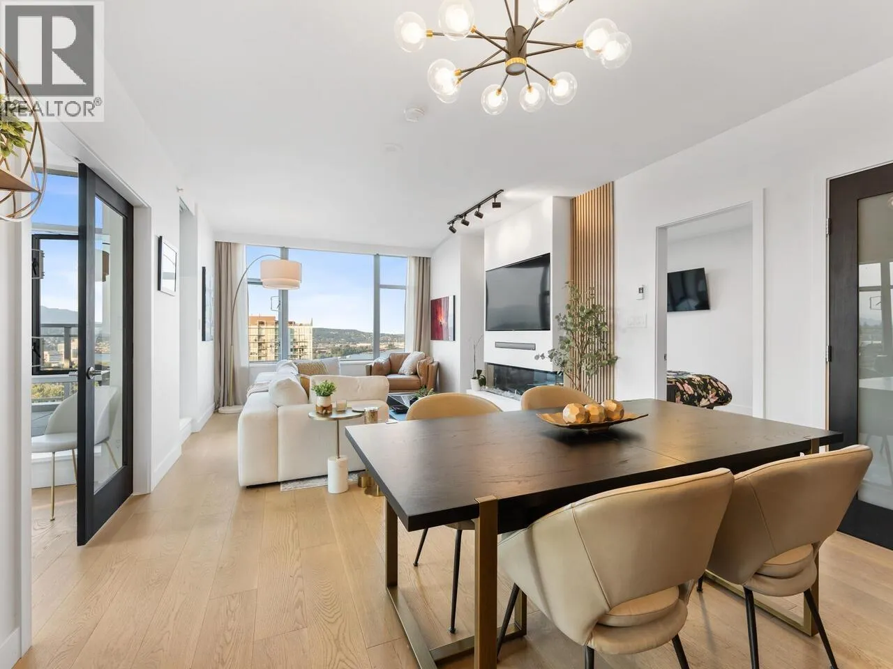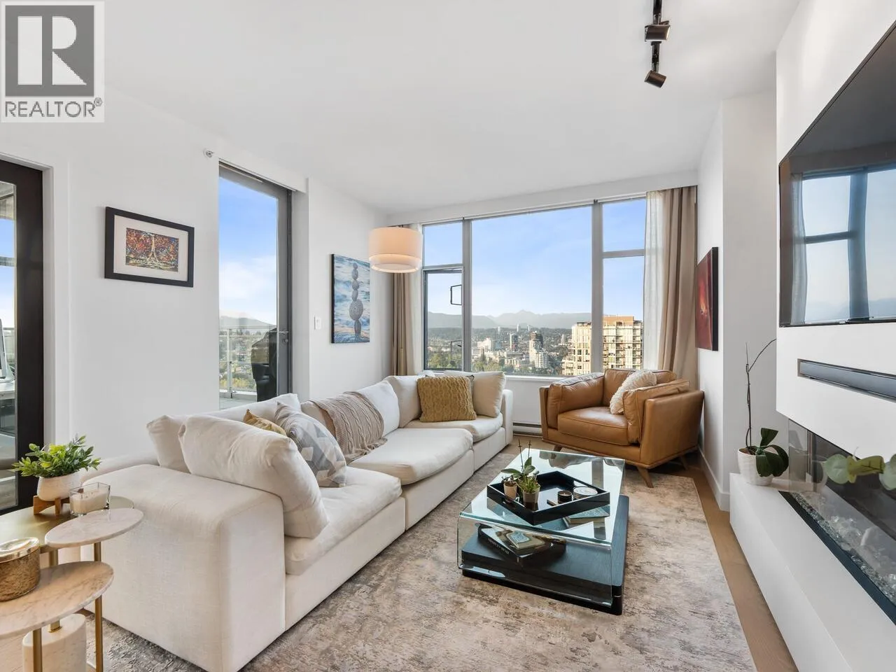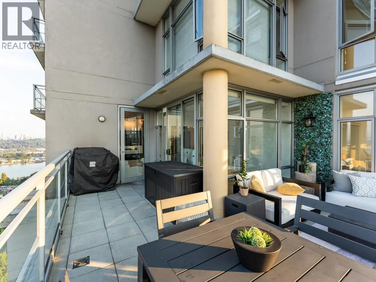 Sub-Penthouse with one of New Westminster´s most spectacular views. From your expansive northeast-facing balcony, enjoy an unencumbered mountain panorama from Mount Baker to Horseshoe Bay, with expansive, green space below and sunrises over the Fraser River that fade into brilliant sunsets across the city. A $250,000 renovation has transformed this home into a calm, modern retreat with marble-clad bathrooms, heated floors, a Jacuzzi tub, built-in fireplace, integrated sound system, and a custom espresso bar for easy mornings. The primary suite features dual custom closets and a serene ensuite, while a versatile den with Murphy bed offers space for guests or a home office. Steps from Queen´s Park, Glenbrook Ravine, and the state-of-the-art t?m?sew?tx? Aquatic and Community Centre, this home blends natural beauty and city living in one of New Westminster´s most desirable locations. (id:27476)