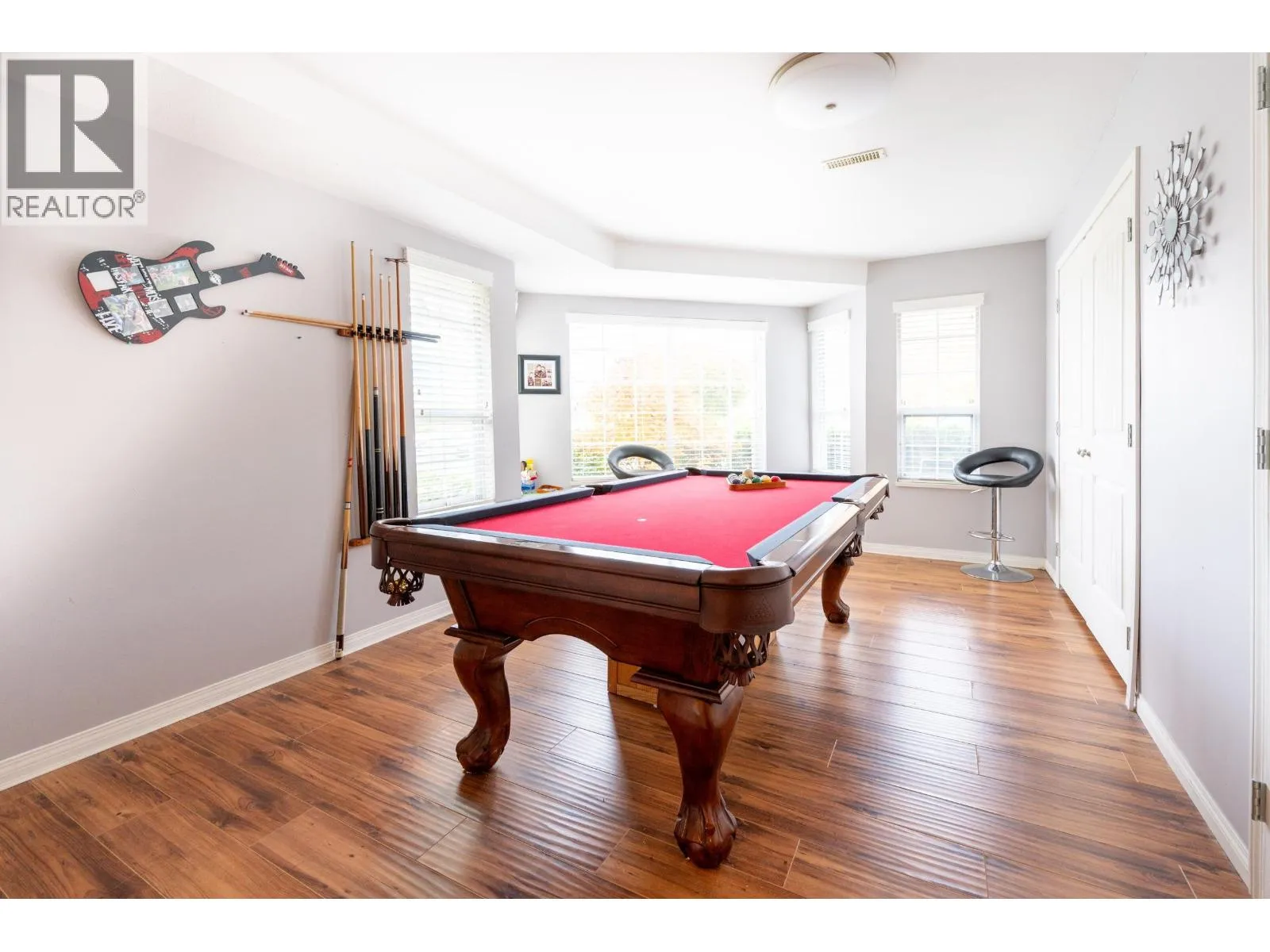 At the end of a quiet Queensborough cul-de-sac, this very large family home offers eight bedrooms, including two primary suites with walk-in closets and ensuites. The main home has a spacious great room with vaulted ceilings and an additional open kitchen/family/dining area. A large and bright ground-level two-bedroom suite provides added flexibility. The backyard is adjacent park space with cricket fields. A covered deck, two outbuildings, and a large, kid-friendly yard complete the setting. Close to Ryall Park, the Queensborough Community Centre, schools, transit, and shopping. About 100m walk to the riverfront via a community trail that passes right past this home. (id:27476)