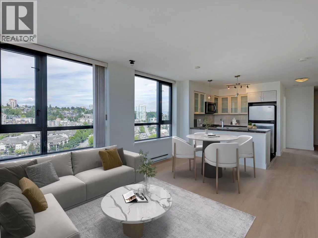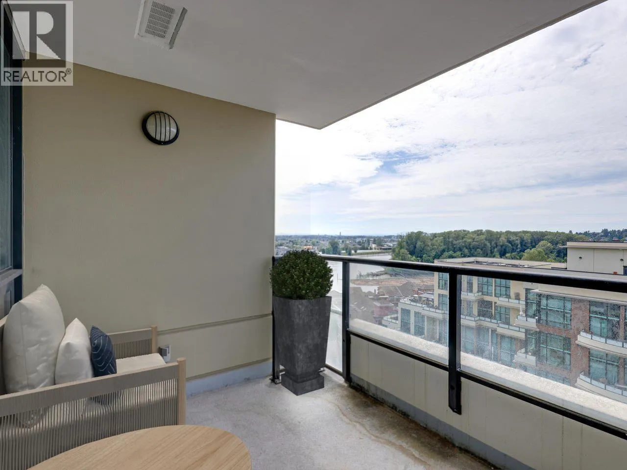Bright and spacious 2 bed/2 bath corner home with water views at The Q, a concrete building in New West Quay. Recently repainted with new flooring, this home features a smart layout with separated bedrooms, open kitchen/living/dining, and a large balcony. The king-sized primary has double closets and a 4-piece ensuite. Granite counters and stainless appliances complete the kitchen. Well-managed strata with strong contingency. Amenities include gym, clubhouse, and 4th-level patio. 1 parking included. Pets and rentals allowed. Steps to SkyTrain, River Market, and the Quay Boardwalk. (id:27476)