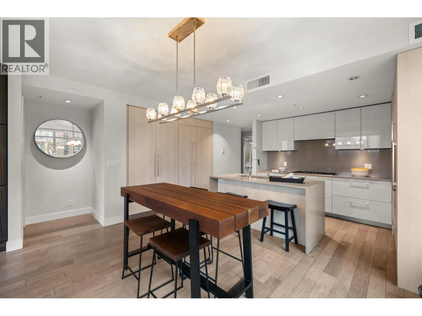 Opportunity to own Luxury WATERFRONT living at The Peninsula! Exquisite Aragon-built 2 BDRM, 2 BTHRM condo offering over 1200 SQFT of sophisticated space, floor-to-ceiling windows & geothermal heating/cooling. STUNNING gourmet kitchen with Gaggenau appliances, built-in fridge, gas stove, built-in oven, oversized sink quartz counters & custom pantries. Beautiful engineered HW floors & high-end finishes flow throughout. Incredible oversized patio with Fraser River VIEW, great for entertaining! Top-tier amenities including gym, steam room, hot tub, residents´ lounge w/chef´s kitchen, theatre room, guest suite & concierge. Steps to trails, parks, schools, Queensborough Landing, Costco & transit. 2 Pets OK! BONUS 2 Secure U/G Parking! Waterfront elegance & lifestyle await-hurry this will not last! (id:27476)