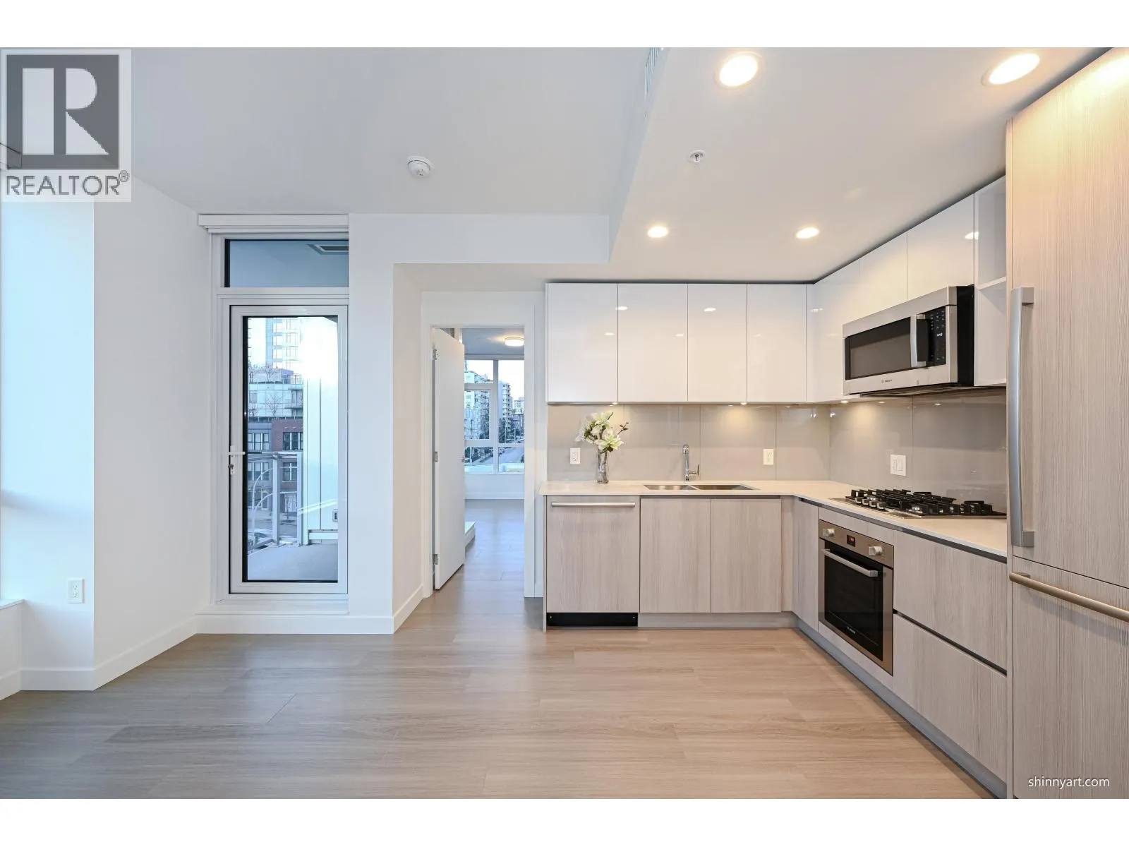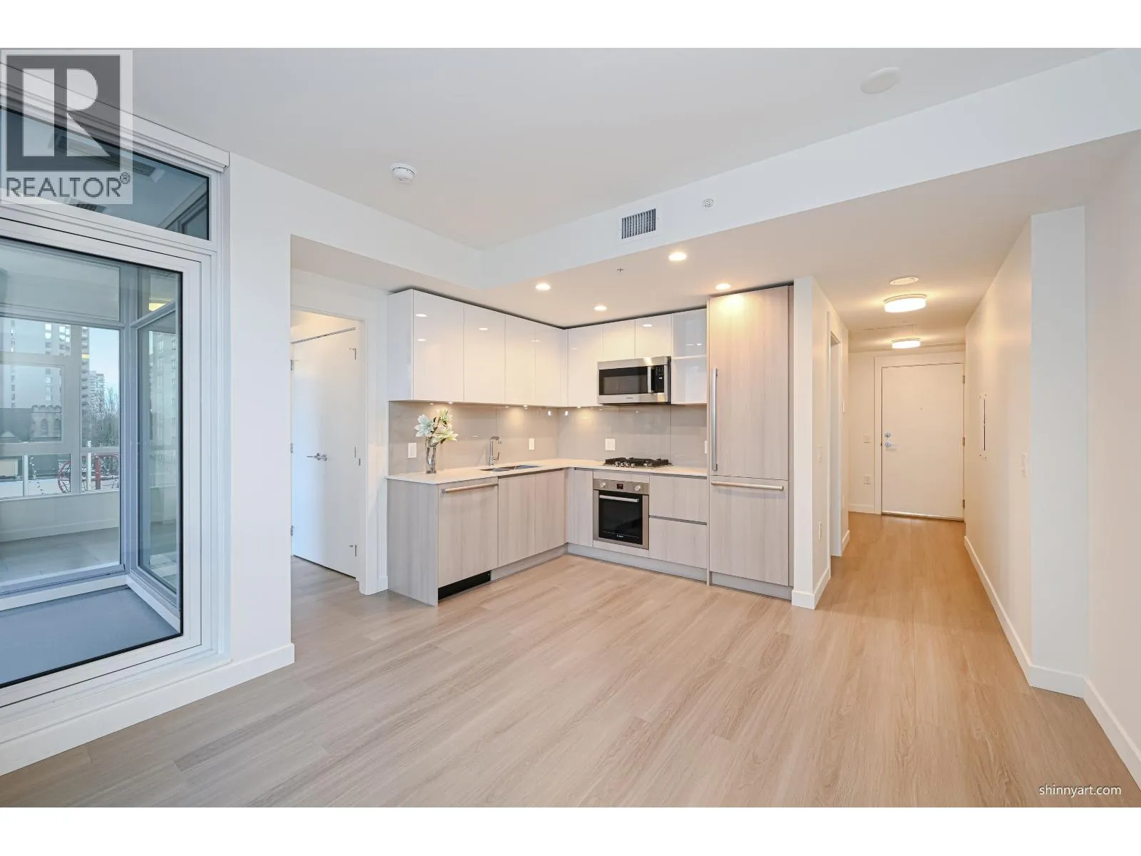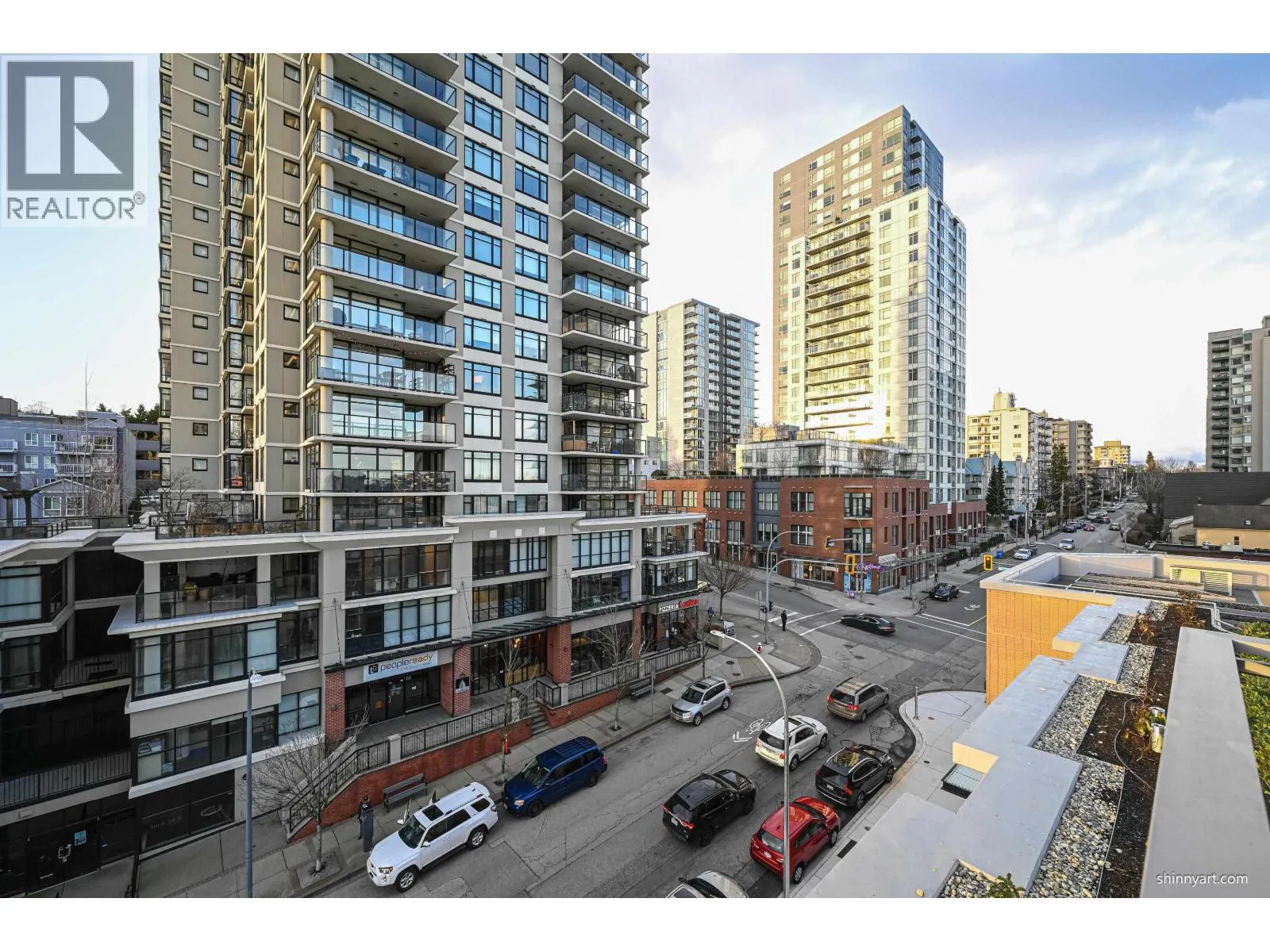 The Rare bigger and bright 1 Bed +1Flex+1 bigger Balcony, corner unit with 592 Sqt. in the heart of Downtown New West. This open concept and functional home offers a L-Shape Kitchen overlooking your living and dining areas, integrated Bosch appliances, gourmet style gas cook top, polished quartz counter-tops, and massive walk-in closet for the Primary bedroom! Enjoy City, mountain and River views of from your Living room and private balcony. Amenities include an outdoor garden space, fitness center, workspace & meeting room, lounge, community garden, pet wash station, guest suite, & more! Minutes away from Douglas College, New West and Columbia 2 Skytrain Stations. Explore trendy cafes, shops, top schools, and the picturesque Westminster Quay - all within walking distance! (id:27476)