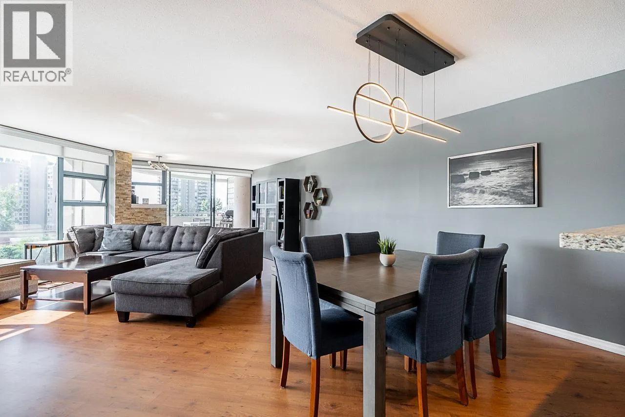 Unbeatable Value! Discover urban living at its finest in this spacious two-bedroom, two-bathroom condo located in the heart of New Westminster. Boasting generous square footage and an open concept with southern views of the city and river. This home features an updated kitchen equipped with granite countertops, an undermount sink, and a large walk-in pantry/laundry area. The generously sized bedrooms offer floor-to-ceiling windows, flooding the space with natural light. Laminate flooring throughout adds a modern touch. Enjoy the convenience of being close to the SkyTrain, shopping, and the vibrant New Westminster Quay, featuring a diverse array of restaurants. This condo is a perfect blend of comfort and accessibility! (id:27476)