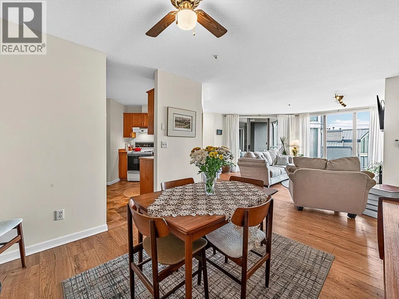 This spacious 1294 Sq. Ft. 2 Bdrm. home is in move in condition. Watch the activity on the Fraser River From the comfort your living room. The master bedroom is huge! With a spacious walk in closet and 4 piece ensuite. Enjoy a morning coffee and watch sunrise from the adjoining patio. The second bedroom has a additional pocket door entrance just off the living room. Making it an exceptional home office or flex space. The main bath has been converted to walk in shower for ease of access for a aging in place lifestyle. Excellent kitchen design with ample cupboards. A modern gas fireplace with floating shelving accent the new light hardwood floors. A dedicated Laundry room / storage is a hard to find bonus. One parking and one storage locker. RV parking available. (id:27476)
