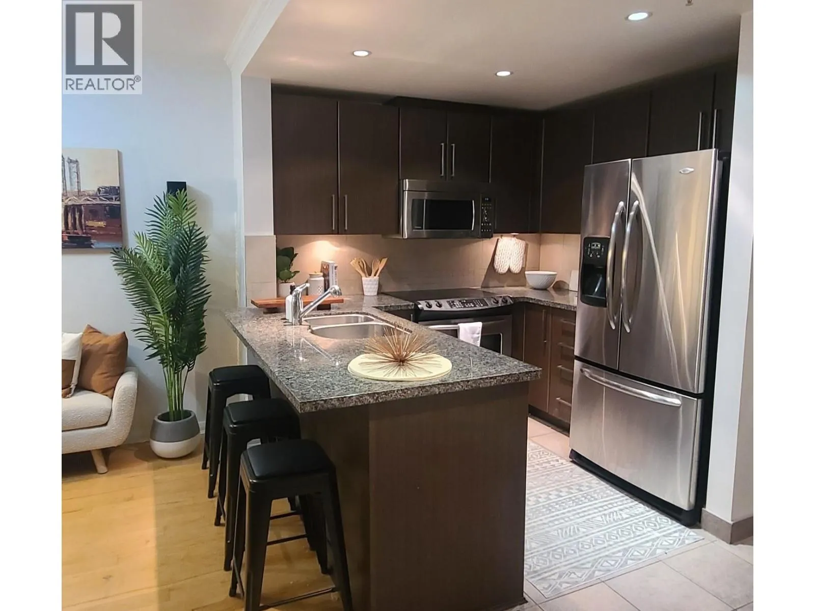 Gorgeous view from the large balcony (approx 150 sf) of the Fraser River and Alex Fraser Bridge. Brand new flooring. 2 bedroom + 2 bathroom. open-concept layout, stainless steel appliances, 1 parking stall + 1 locker. Welcome your new home. Enjoy immediate access to the lively New Westminster Quay and skytrain. (id:27476)