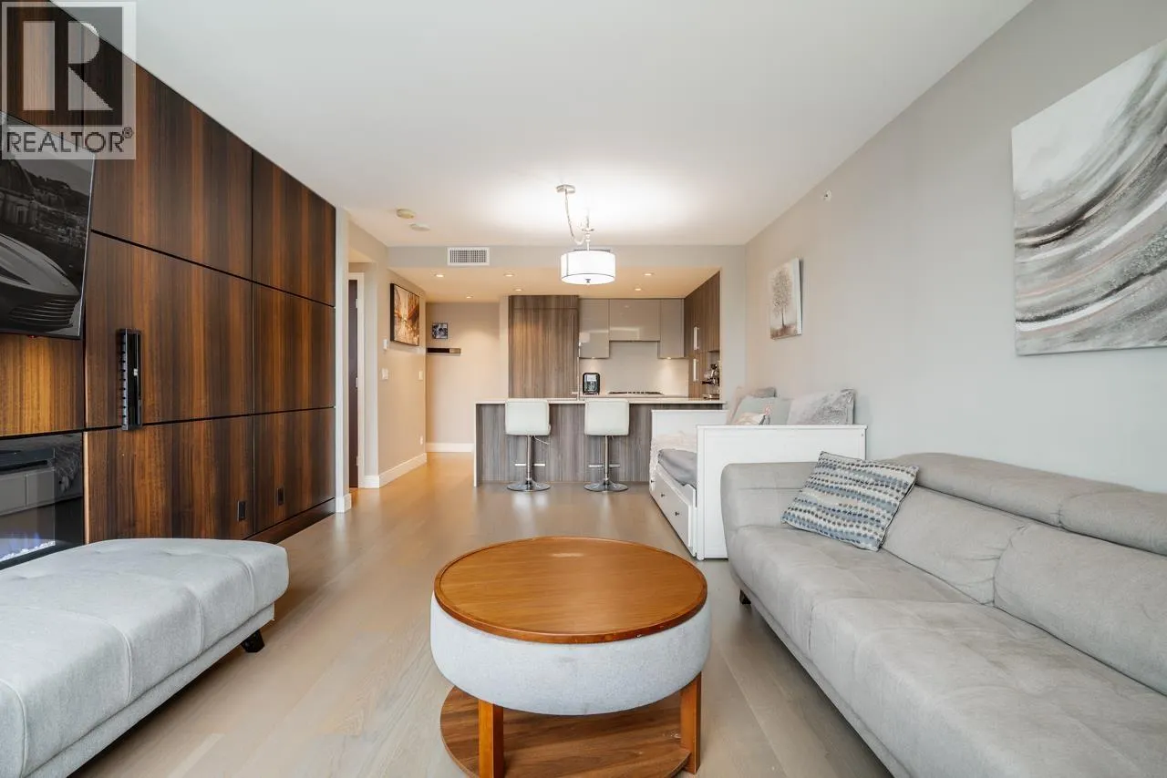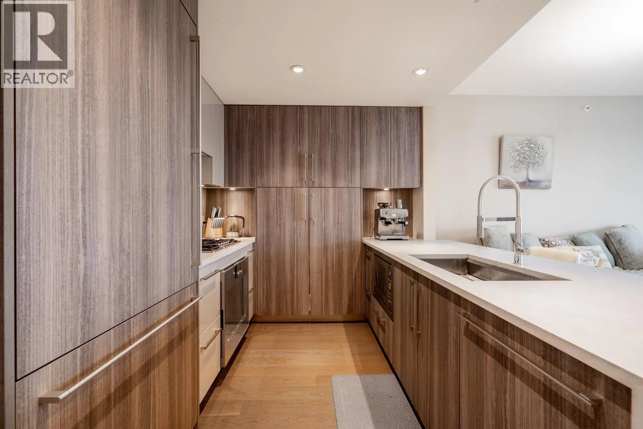 Resort-style living at its best. This beautiful 1-bedroom at The Peninsula offers stunning views, high-end finishes, and a sleek kitchen with fully integrated Gaggenau appliances. Enjoy a large covered deck with a natural gas BBQ hookup and the peaceful vibe of Queensborough, steps to parks, riverfront trails, and the Q-to-Q Ferry. Only 5 minutes to Costco for added convenience. The elegant 4-piece bath features in-floor heating, and the building offers concierge service, a full fitness centre, hot tub, steam room, theatre room, party room, chef´s kitchen/lounge, and a guest suite for $75/night. Rentals allowed. (id:27476)