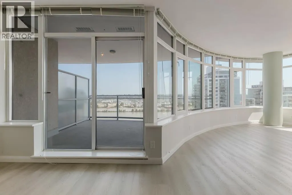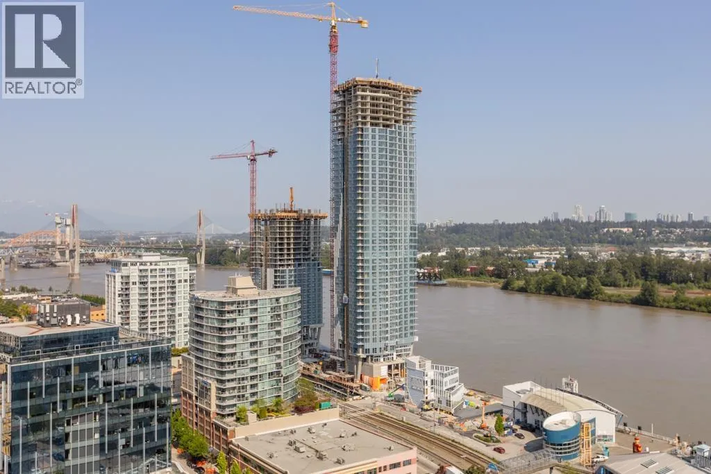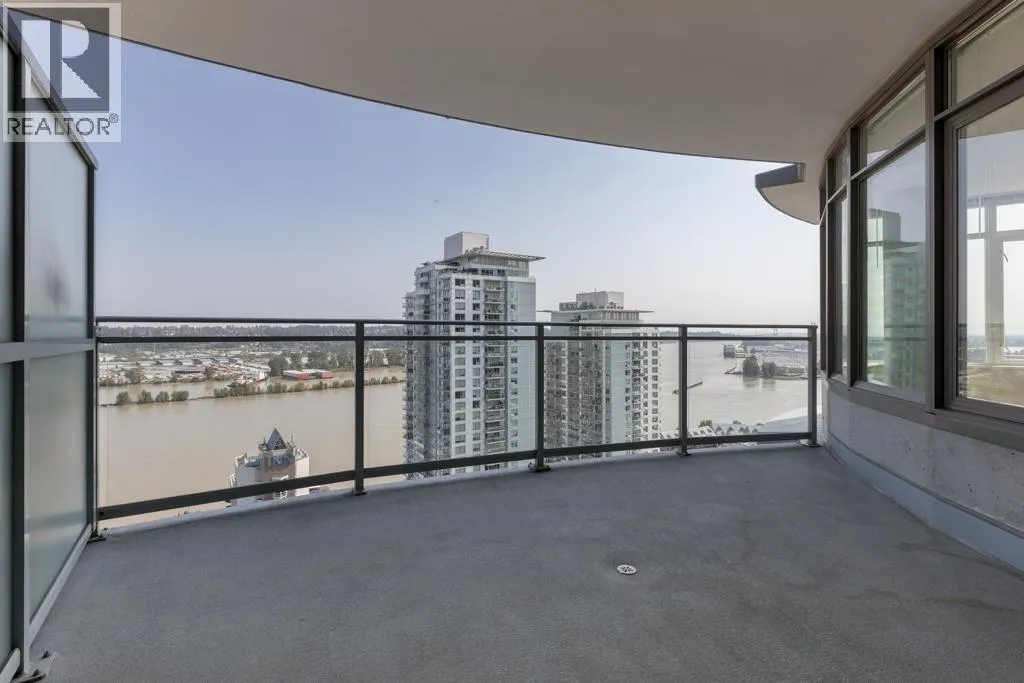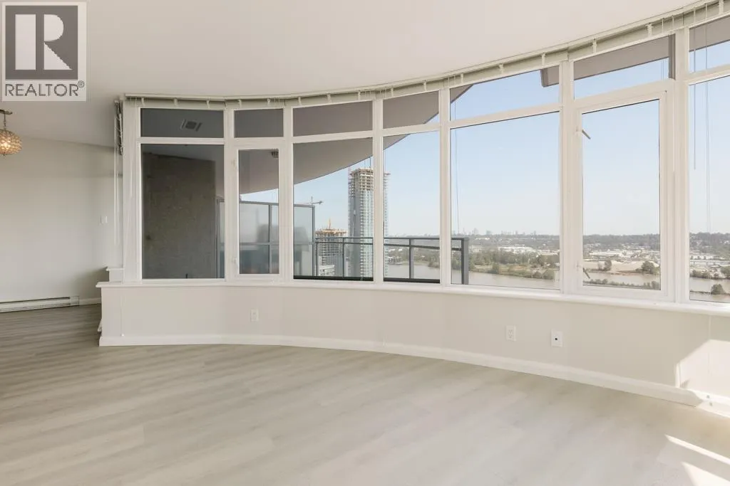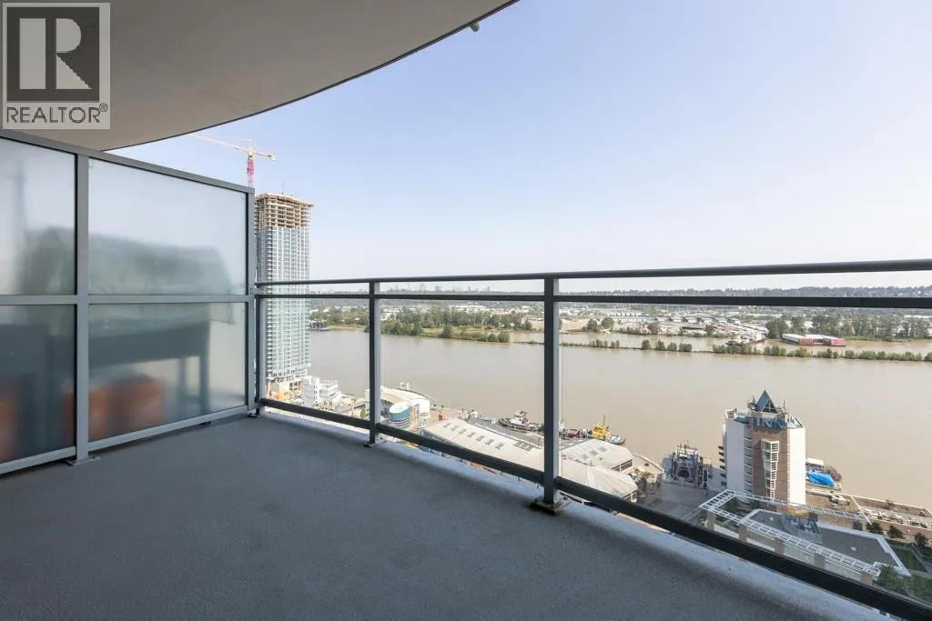 This south-facing, updated, 1151sf, 2 bedrooms + den, 2 bathrooms condo comes with a 148sf balcony overlooking the Fraser River, Downtown New Westminster, Queensborough Island, Annacis Island and Fraser Valley. This condo has a unique layout catering to the gorgeous views and exposing both bedrooms and the living area to plenty of sunshine year round. The living room has two sides of glass walls with lovely views. To the side is the dining room with a beautiful chandelier and access to the view balcony. The open kitchen features 3 sides of cabinets, a serving island with stone countertops and stainless steel appliances. (id:27476)