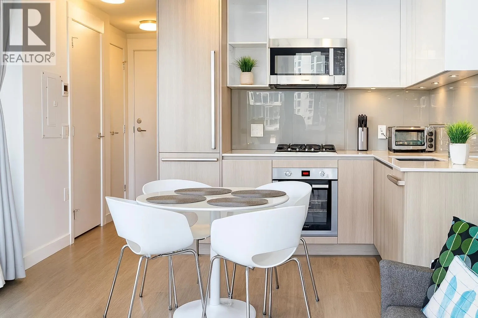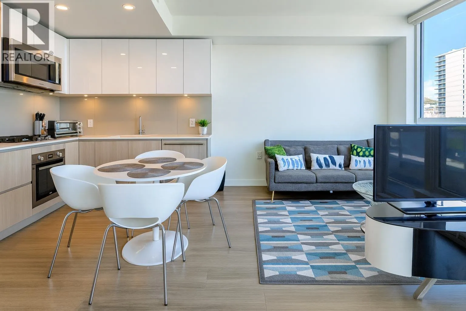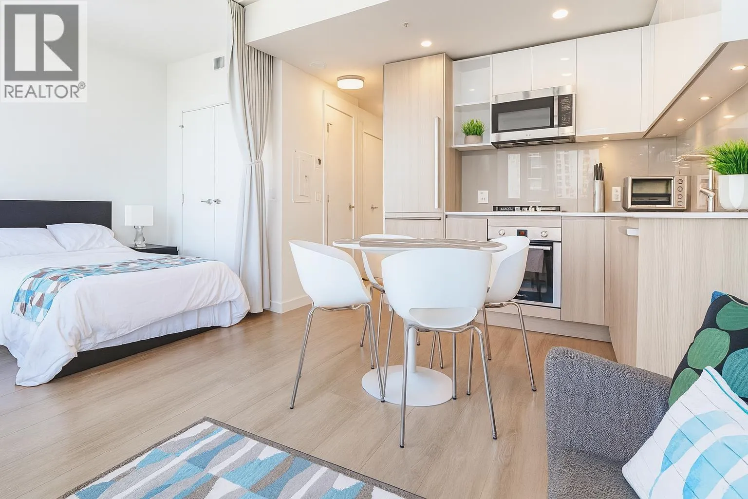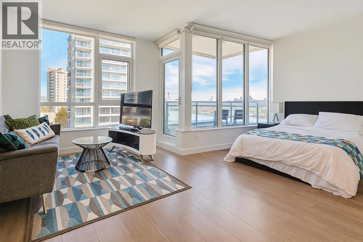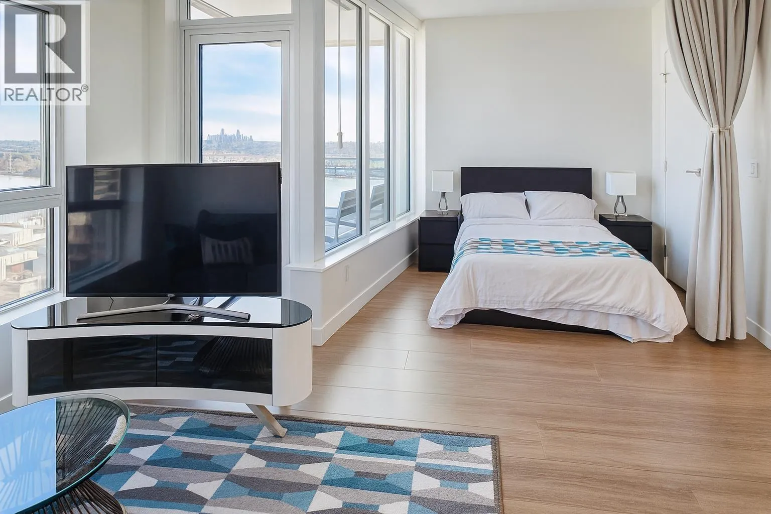 This 2024 built East facing Studio is fully furnished with modern furniture in the Downtown New Westminster neighborhood. This 461 sqft. suite offers an open plan studio + 1 bathroom with a river and city view Step inside and admire the elegant laminate floors, quartz countertops, and high end appliances in the kitchen. Enjoy breathtaking bridge and water views from the comfort of your own home. Stay comfortable year-round with air conditioning and take advantage of the amenities available in the building. Building Amenities: on site building manager, gym, lounge, meeting/study room. All-inclusive monthly rent includes hydro, internet. Min 3 months Rental. Contact today for viewing. (id:27476)