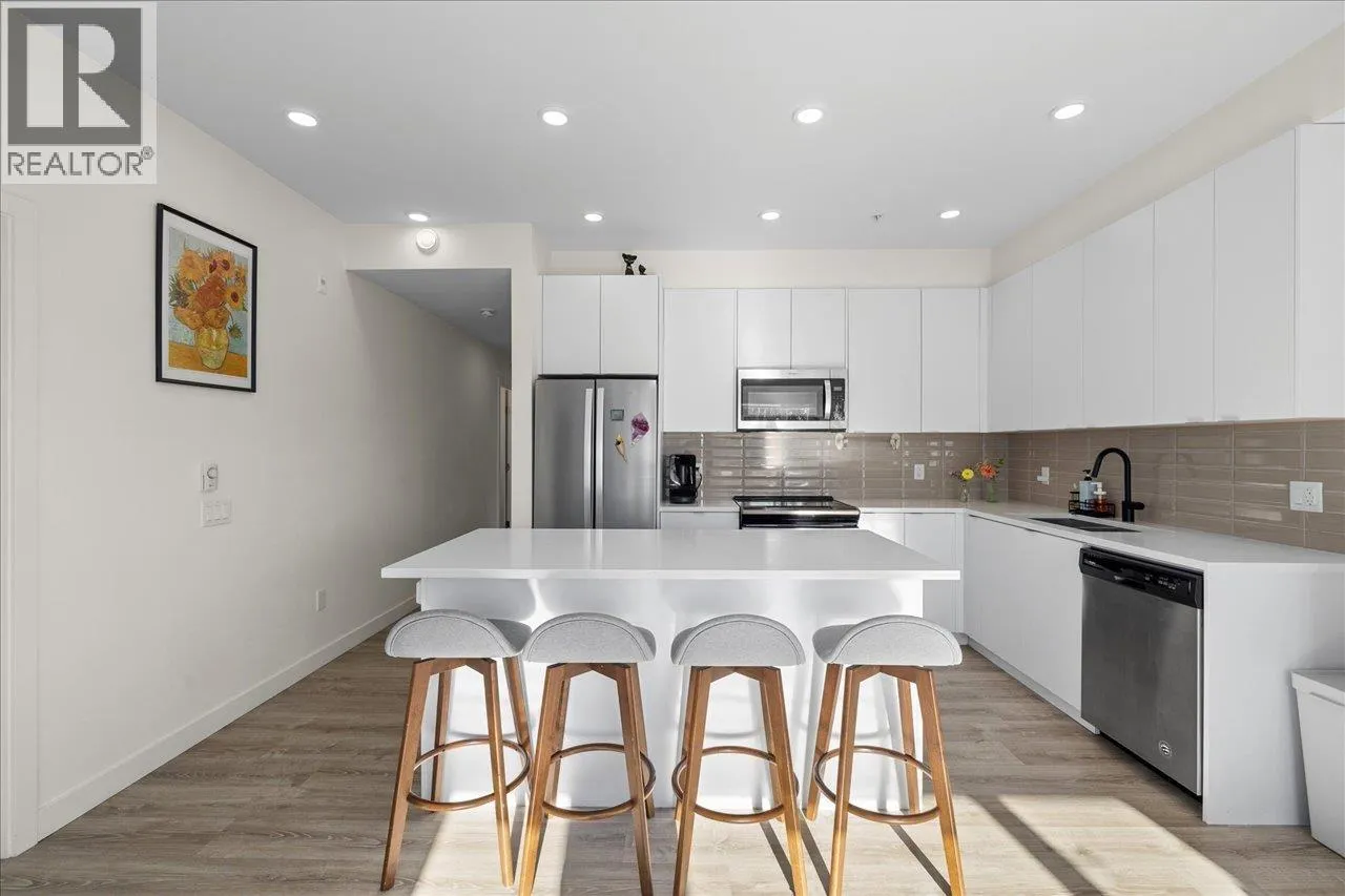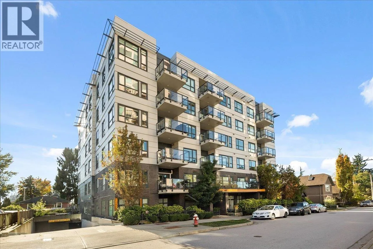 Welcome home to this bright & spacious 3 bed, 2 bath CORNER UNIT in Uptown! Thoughtfully designed floor plan features a chef´s kitchen with quartz counters, S/S appliances & large island flowing into open dining & living areas - perfect for entertaining. High ceilings, oversized windows & abundant natural light throughout. SE PRIVATE EXPOSURE with peek-a-boo water views from your covered balcony. Spacious primary bdrm with walk-through closets & en-suite bath with double sinks. 2nd & 3rd bdrms on opposite side for added privacy. Great building with remaining 2-5-10 warranty. Rooftop deck, community garden, 2 pets (no size rest.´s), 1 parking & option for storage locker. Prime location near 6th & 6th, major HWY´s & walkable to parks, sportsplex, shops, dining, schools, transit & skytrain. (id:27476)