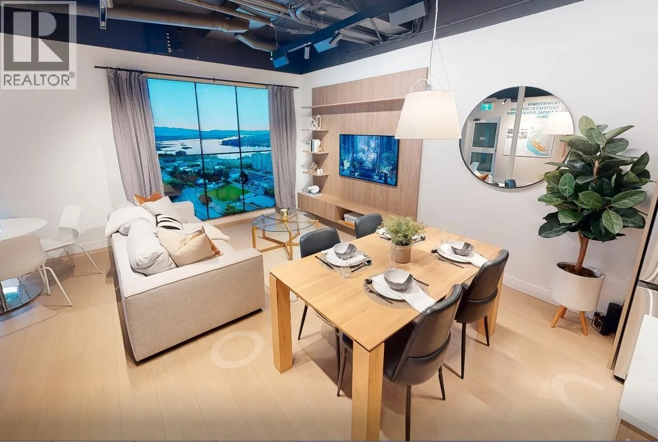 Desirable South-East RIVER VIEW! Centrally located in New Westminster's historic downtown neighbourhood at First & Royal by Areva Living. Functional 417 SqFt - Studio & DEN + 1 Bath. Features : South-East Exposure, Portico Design - Dark Scheme Interior, HRV, s/s appliance set, private balcony, 1 EV R/I Parking & 1 Locker included, 2-5-10 NHW. Amenities include : rooftop bbq communal terrace, fitness gym, rec room, indoor theatre. Amazing transit convenience at Columbia Skytrain Station for Burnaby - downtown & Coquitlam / Surrey commute. Steps to Douglas College, Royal Columbian Hospital, Queen's Park. Desirable school catchment : Qayqayt Elementary & New West Secondary. Pets & Rentals OK! Ready to Move-In soon; ASSIGNMENT of Contract. Estimated Completion - Spring 2026. (id:27476)