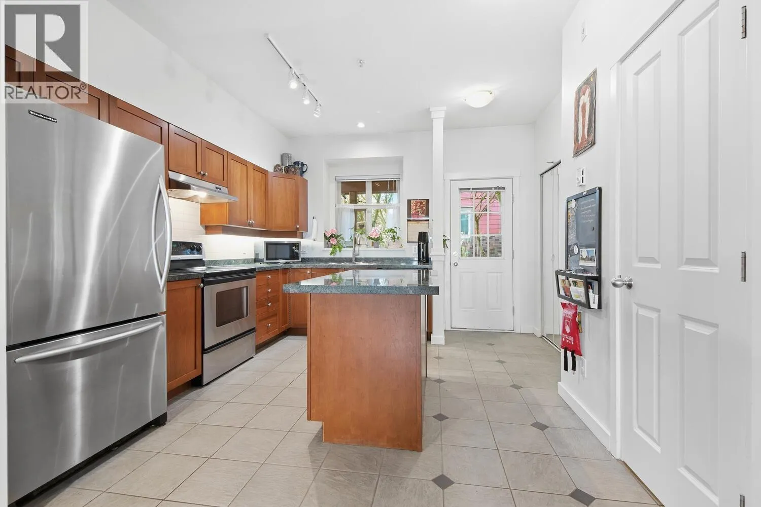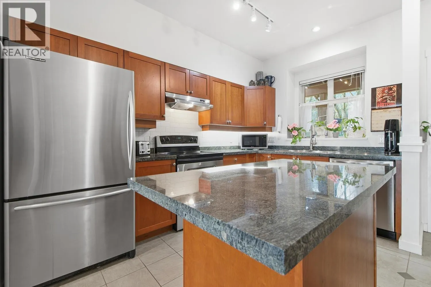 Rarely available & one of the few larger TH units in the award winning "Winchester" 3 level/3 bdrm/3 bath 1399 SF (Strata shows 1375 SF) in prime Glenbrooke N location. Great layout w/bright open floor plan on main 9' ceilings, front entry w/deck & also a sunny back patio right off the kitchen. Main has upgraded kitchen w/granite counters, large island & S/S appls, powder room, diningrm & livingrm w/cozy FP. 2nd level features 2 large bedrms + 1 full bath & laundry. Top floor is dedicated to the Pbdrm w/spacious closet & full ensuite. Beautiful newer vinyl flooring on stairs, 2nd floor & upper floor. 2 sxs parking & 1 storage locker. 2 Pets OK. Middle & Elementary schools very close, steps to Queens Park & new Aquatic Centre, transit and shopping. Nice family friendly neighbourhood, loads of parking for visitors out front or on side street. Whistler inspired courtyard and gardens. Come check it out ! You will love it here. Open house Sat Feb 14 from 1-3 pm (id:27476)