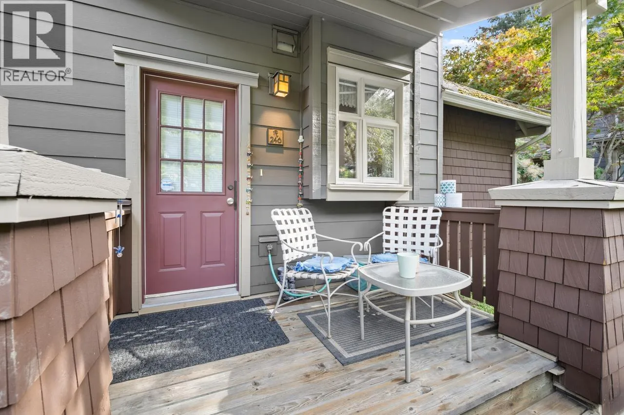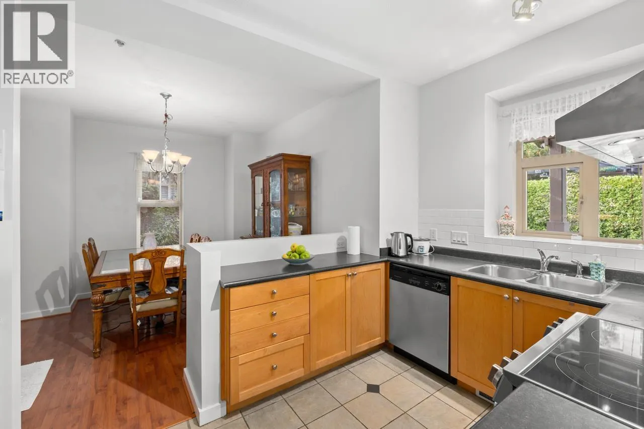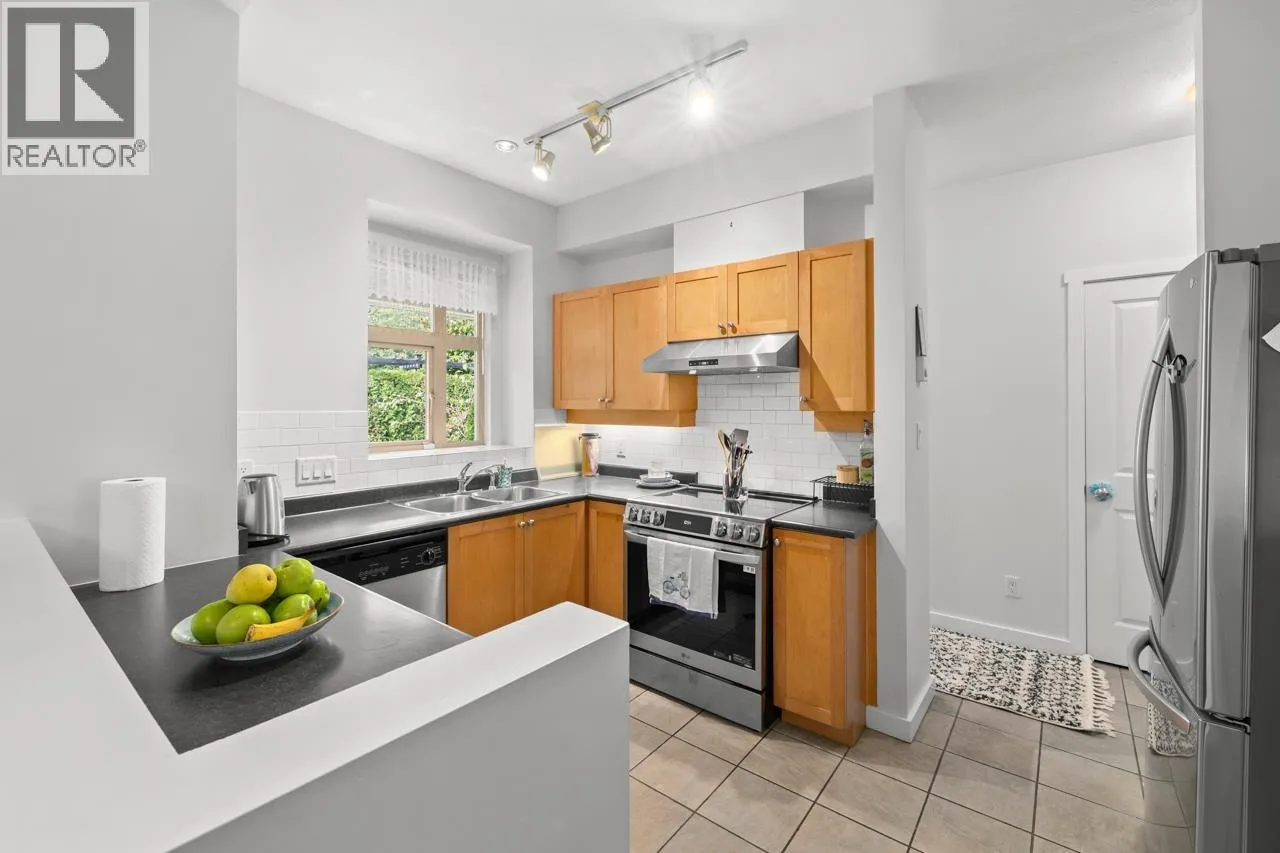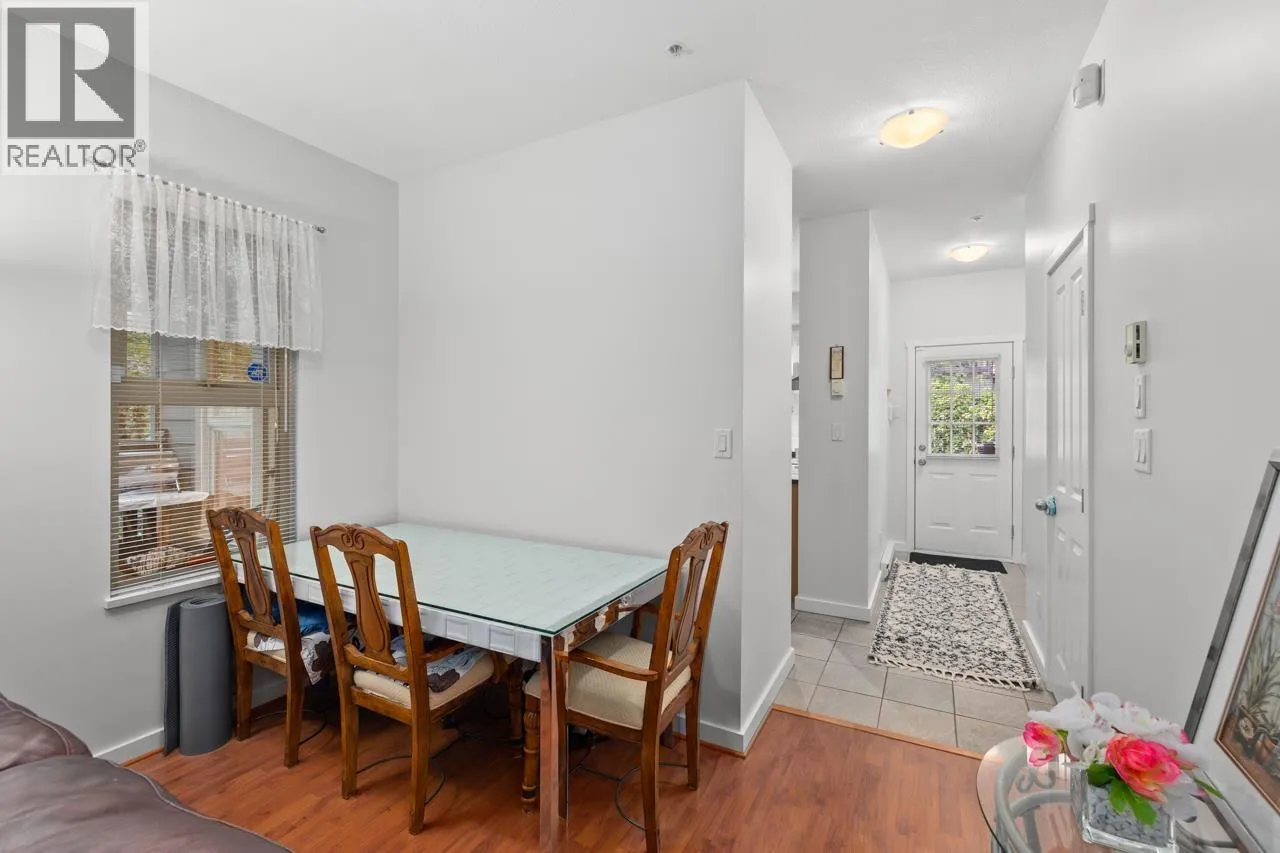 Welcome to this bright and updated corner townhome in one of New Westminster's most sought-after communities. Steps from Royal Square, Queens Park, and the Aquatic Centre. Situated on 2-levels this home offers a lifestyle of ease, access, and everyday comfort. The functional, thoughtfully designed layout features two bedrooms, full bath, and laundry above the main, with an updated kitchen and eating area thoughtfully separated from the open living and dining space, The end unit orientation brings in extra natural light and includes a covered balcony and yard space. Secure parking and storage included. Located in a desirable school catchment, in a walkable neighbourhood with daily conveniences and a well-run complex. (id:27476)