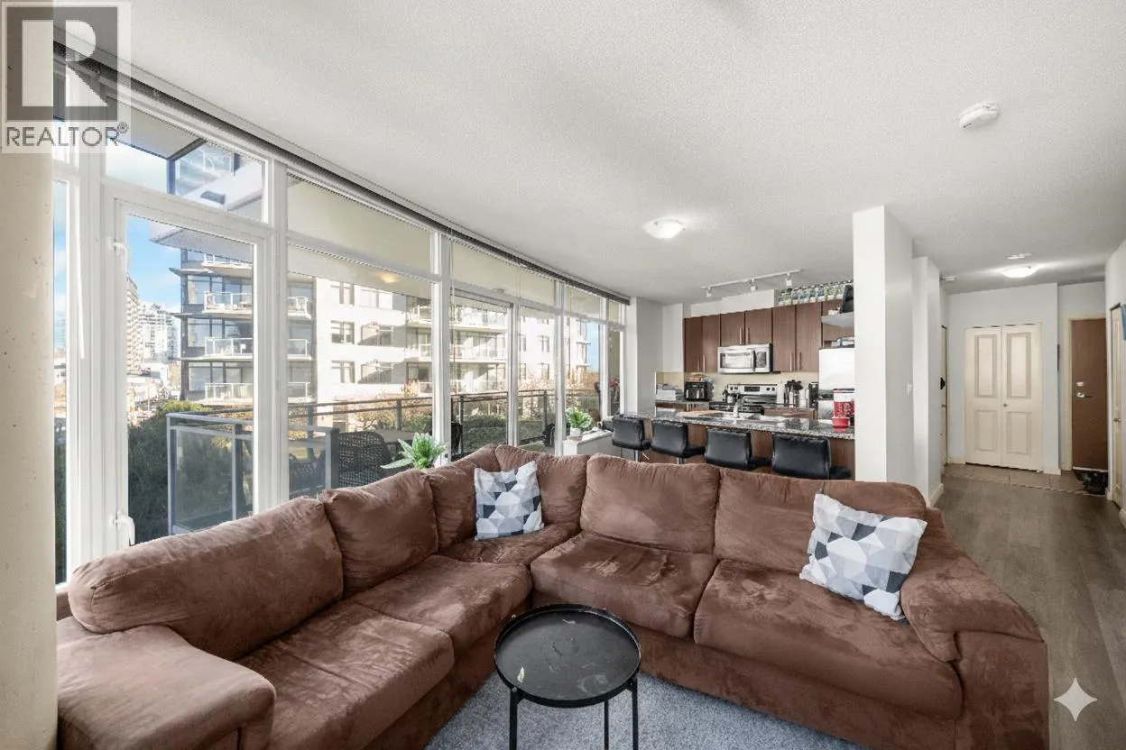 LOCATION, RECREATION, TRANSPORTATION! This well-maintained concrete building offers tranquility at its best! Dine & entertain on the MASSIVE outdoor patio in a peaceful, private setting overlooking the courtyard garden away from the skytrain! Open concept living, with a very functional layout, separate bedrooms; offering complete privacy. Laminate flooring throughout, SS appliances and stone countertops. Accommodate your lifestyle in one of most desired locations! Only one floor away from accessing great amenities proves this rare home is one of few perfectly situated in the complex. DIRECT (IN BUILDING) ACCESS to the skytrain, shopping, coffee shops, theatre, Safeway & much more! Comes with 1 parking spot and a storage locker. Contact us to book your private viewing. (id:27476)