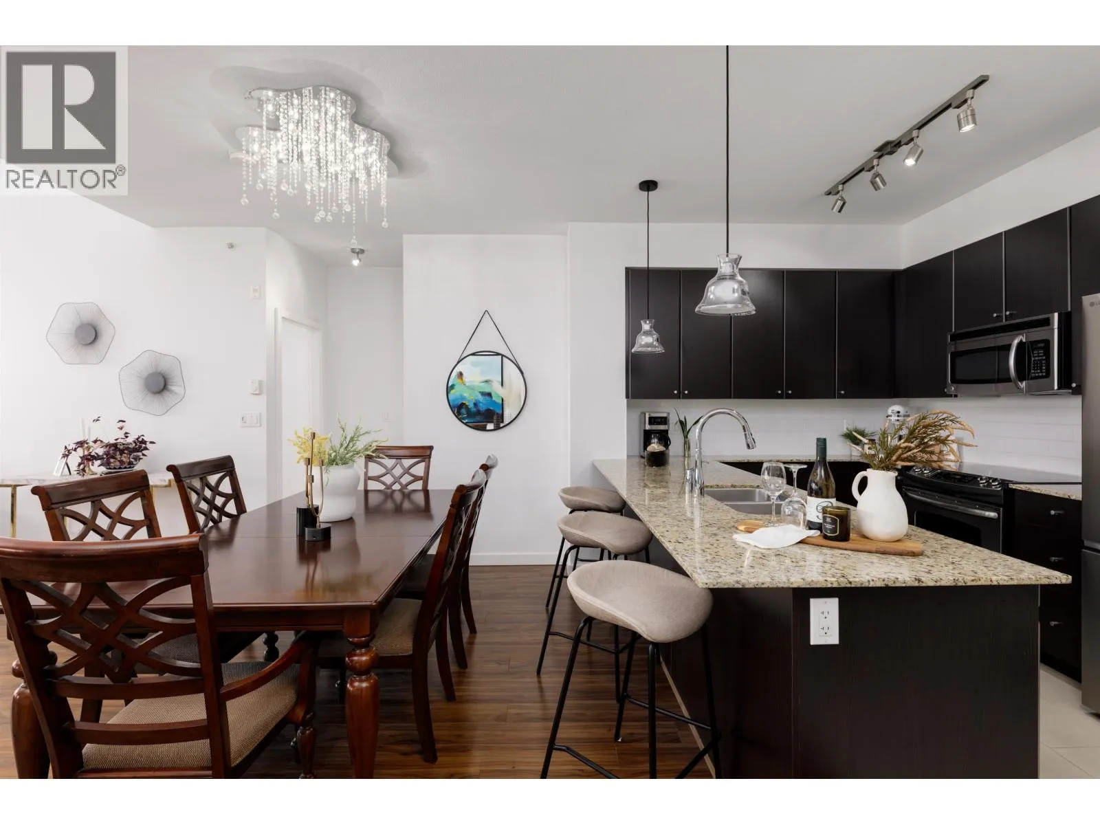 Perched on the top floor with 1200sf, sweeping mountain and river views form the backdrop through oversized windows and vaulted ceilings, filling the home with natural light and elevating everyday life. The wrap-around kitchen with breakfast bar flows into generous dining and living areas, perfect for entertaining. Spacious bedrooms each with walk-in closets are designed as personal sanctuaries. The covered balcony extends living space outdoors offering a serene escape year round. Enjoy resident amenities (gym, theatre, lounge), trails, dog park, plus local cafés and eateries. With Queen´s Park, Aquatic and Community Centre, shops, services and transit all close, by this home combines comfort, convenience and lifestyle in one exceptional offering. Book your private showing today or come by the open house February 15, 1-3pm (id:27476)