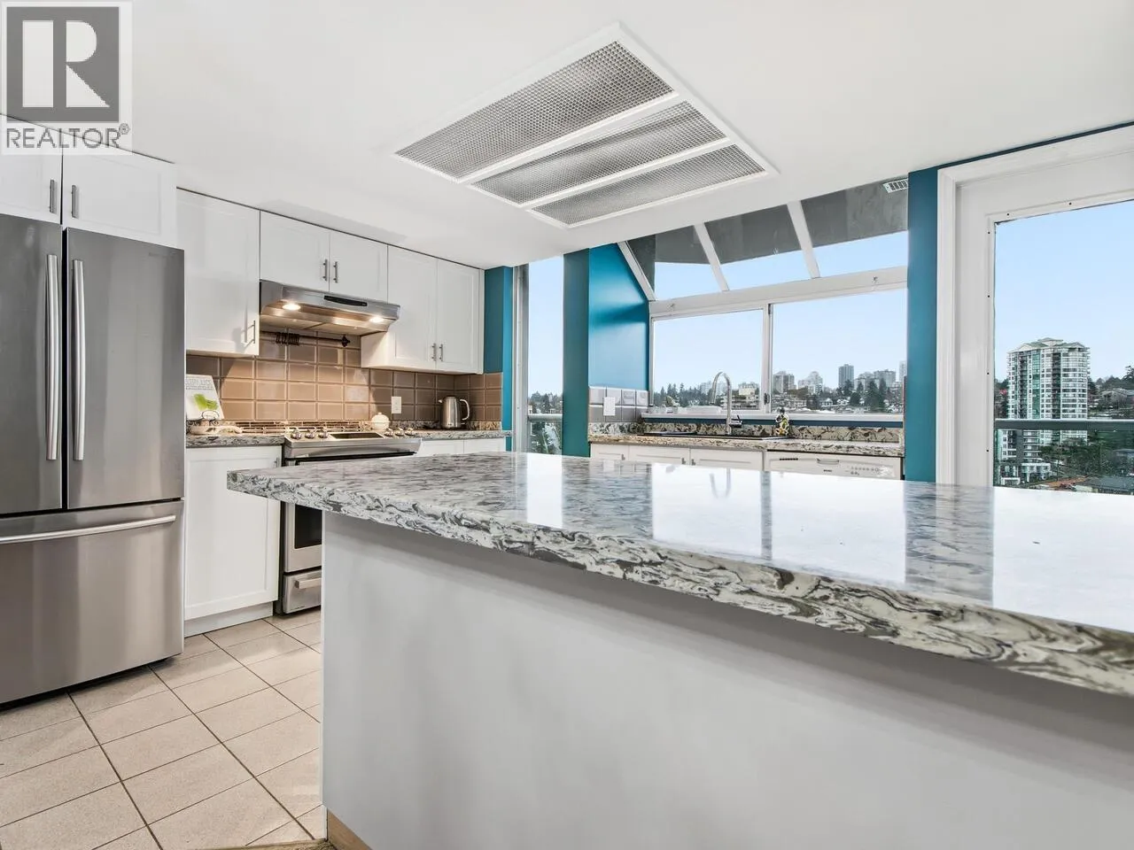 Welcome to Anchor Point, where a bright remodeled lobby welcomes you to a meticulously cared-for building. Perched on the 16th floor, a marble foyer opens to a wide living room with an updated gas fireplace and expansive river views from the large covered balcony, with the Alex Fraser Bridge in the distance. A full-size dining room flows from the updated kitchen featuring granite counters, stainless steel appliances, and skylight-style windows with sweeping city views. A second covered balcony wraps around to the central bedroom, while a third bedroom off the living room offers stunning 180° sightlines. The main bath includes a jetted tub and separate shower. The spacious primary bedroom features mirrored closets and an ensuite with deep soaker tub. First-floor fitness facility renovation underway. Enjoy tranquil riverside living at the Quay, steps to scenic walks, restaurants, amenities, and SkyTrain. No pets. 3D virtual tour at Realtor's site. (id:27476)