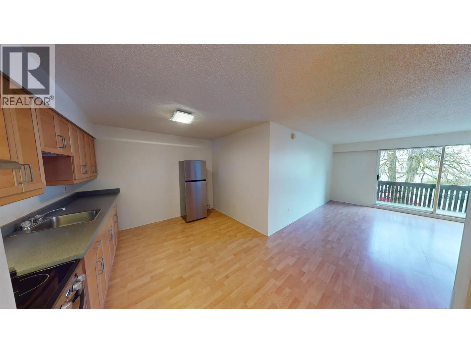 Affordable living in Uptown New Westminster! This bright bachelor suite offers a smart open layout with a defined sleeping alcove that provides a comfortable spot for your bed. Features easy-care laminate flooring throughout, and a spacious kitchen with plenty of cabinetry. Enjoy a covered balcony for year-round use. Steps to transit, Royal City Centre, Walmart, medical offices, restaurants, parks, schools, and within walking distance to SkyTrain. Low monthly fee includes heat, hot water, and property taxes. Quiet age-restricted building (40+). Includes secure underground parking, and shared laundry. No pets or rentals. Non-strata building, all cash purchase required. (id:27476)