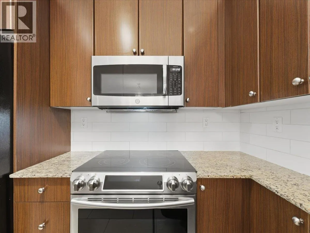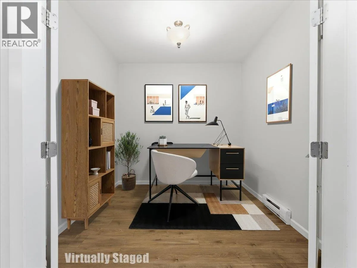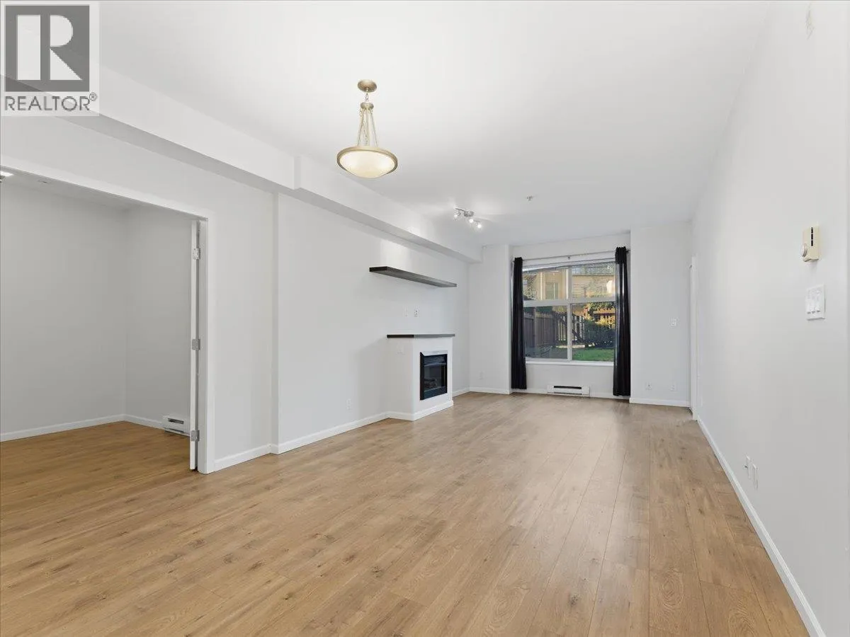 Rare ground floor end unit with private garden at The Grove. Thoughtfully designed 1 bed plus oversized den offers the flexibility of a 2nd bedroom or ideal work from home setup. Soaring high ceilings & airy atmosphere from the moment you step inside. Kitchen is both functional and stylish, featuring stainless steel appliances, durable countertops & generous storage. New Laminate floor. Step outside to your fully fenced patio & yard, a standout feature rarely found, offering the perfect setting for outdoor entertaining or pet friendly living. The spacious primary bedroom includes a walk-in closet, while the versatile den adapts easily to your lifestyle needs. Amenities: gym, theatre, lounge. close to parks / dog park, scenic trails, transit, schools, visitor parking available. Open House Sat Feb 14th 1pm -3pm (id:27476)