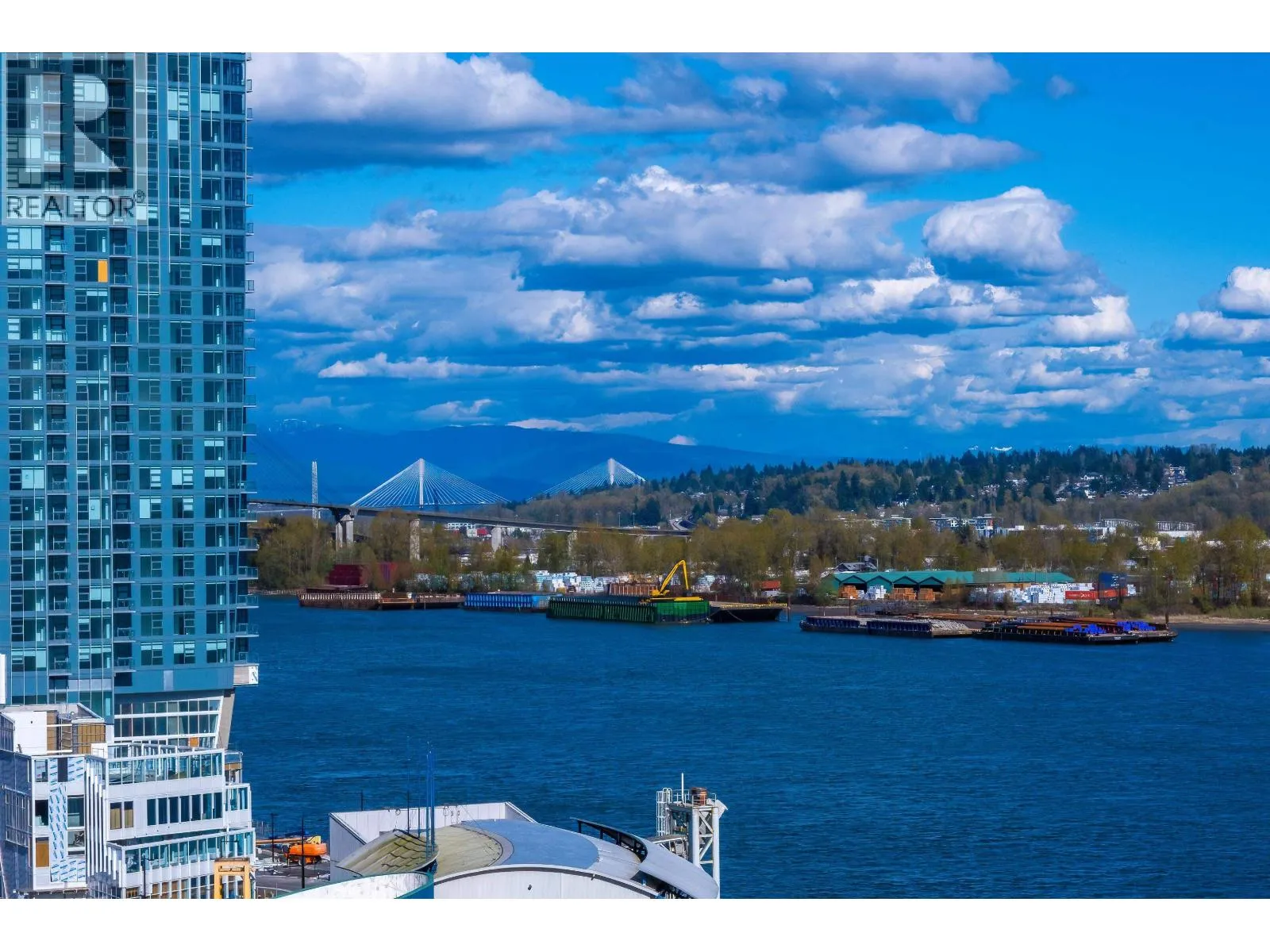 Situated on the 15th floor, this elegant northwest corner residence offers sweeping views of the Fraser River and the surrounding urban landscape. Spanning approximately 735 sq.ft., the thoughtfully designed 2-bedroom, 1-bath home features a functional open-concept layout, enhanced by abundant natural light and excellent flow throughout. The higher-floor northwest exposure provides beautiful sunsets and a sense of openness rarely found at this level. Set within a well-constructed concrete building with impressive amenities, this home delivers a refined balance of comfort, privacy, and modern riverside living-an exceptional opportunity for discerning buyers seeking both lifestyle and long-term value. (id:27476)