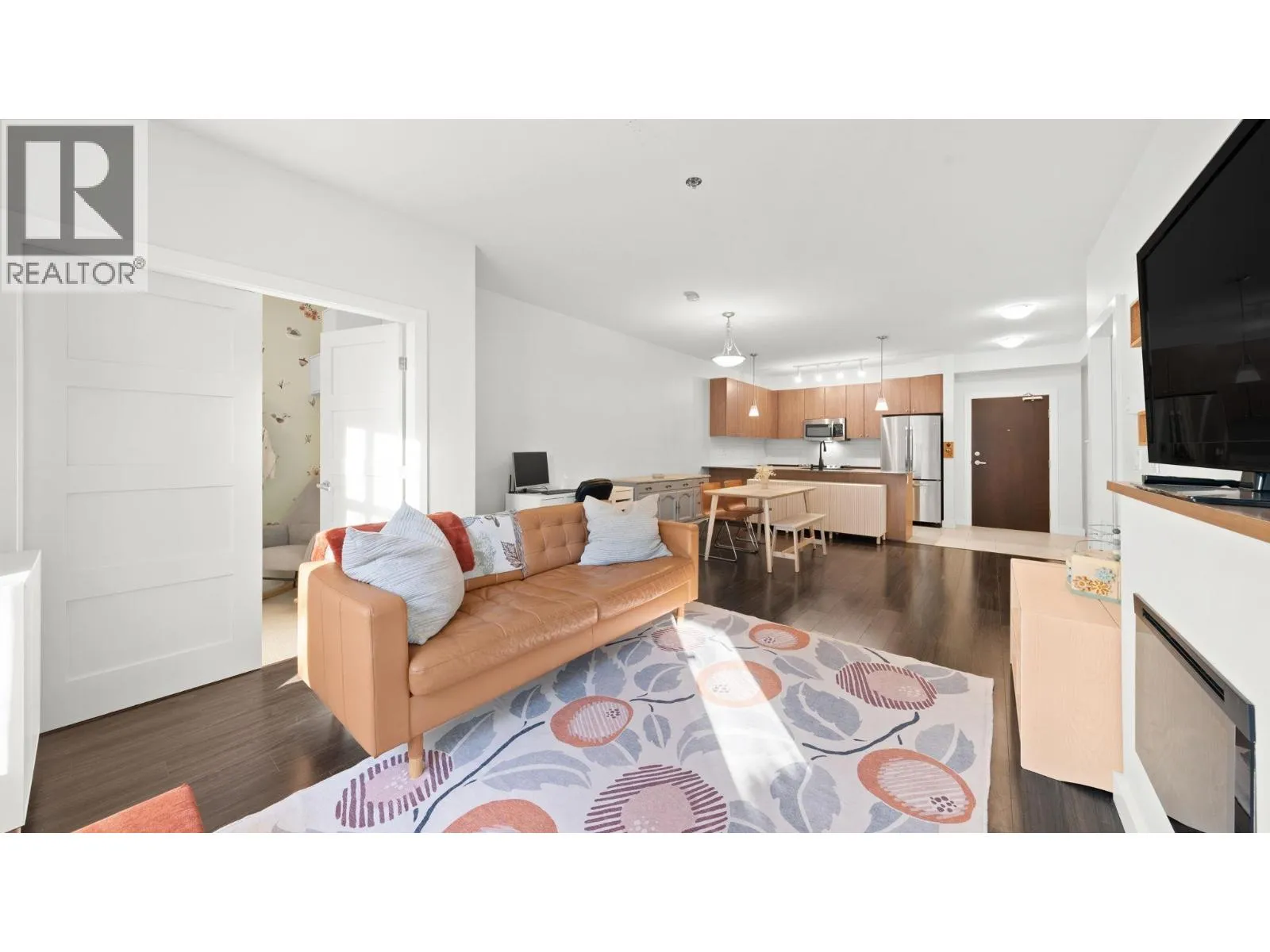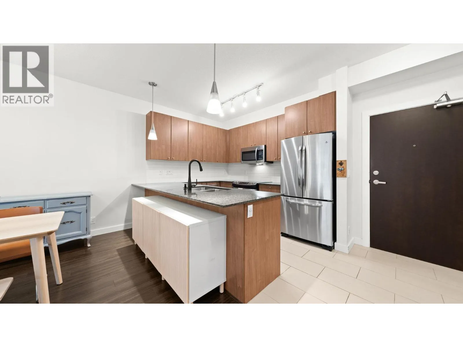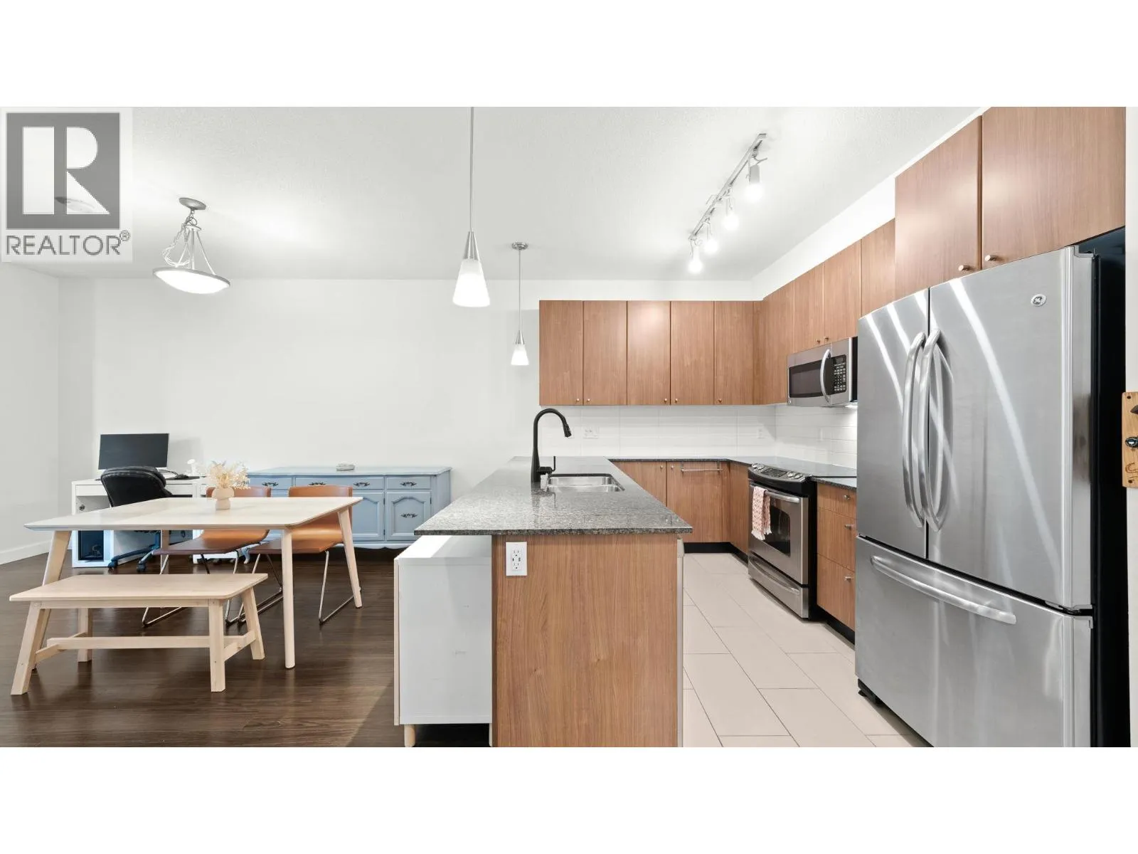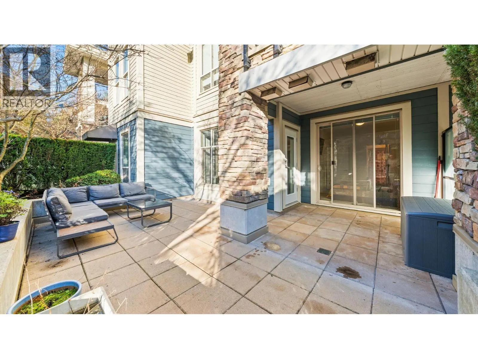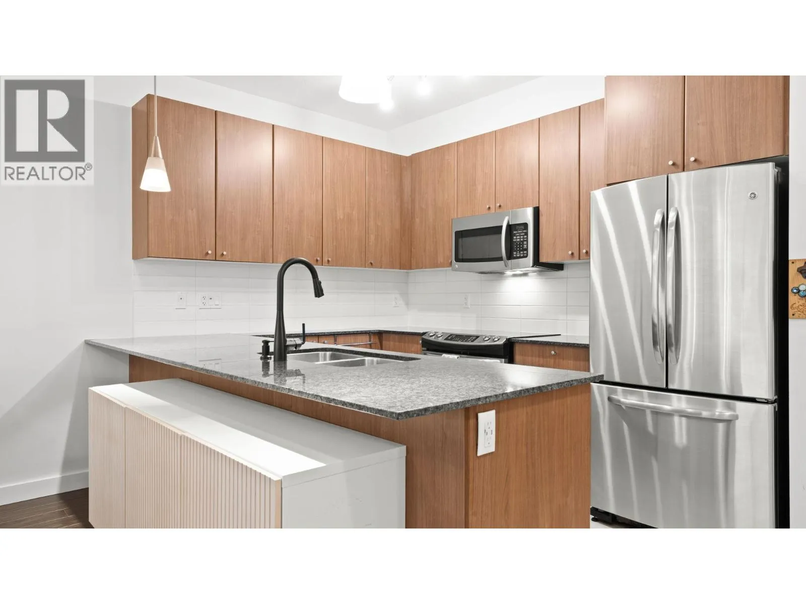 The Grove - Onni's masterplanned community - Victoria Hill!Surrounded by greenery & steps to Historic Queens Park! Efficient open concept layout 1 bed plus den (second bed) 859sf w/oversized 317sf ground floor patio facing courtyard/green space! Spacious kitchen feat granite counters, tons of cabinetry, stainless steel appliances & large breakfast bar.Spacious living/dining that do not feel like a 1 bed condo! Beautiful primary suite w/walk through closet & 4 pce ensuite. Large 13x6 den on opposite side of unit easily functions as 2nd bed. Fantastic complex amenities: gym, party room, pool table, library, theatre room.Just steps to skytrain, downtown new west, Douglas College.In the complex: sushi & pizza restaurants, coffee shop & convenient store! 1 parking & 1 storage incl. OH: Sun 12-2 (id:27476)