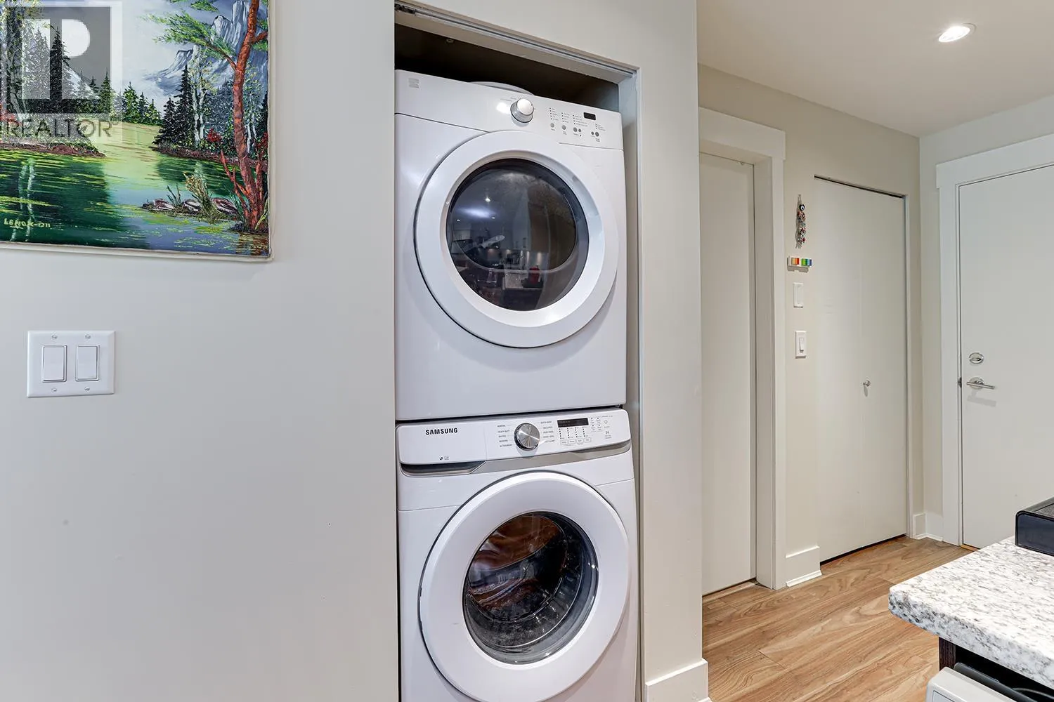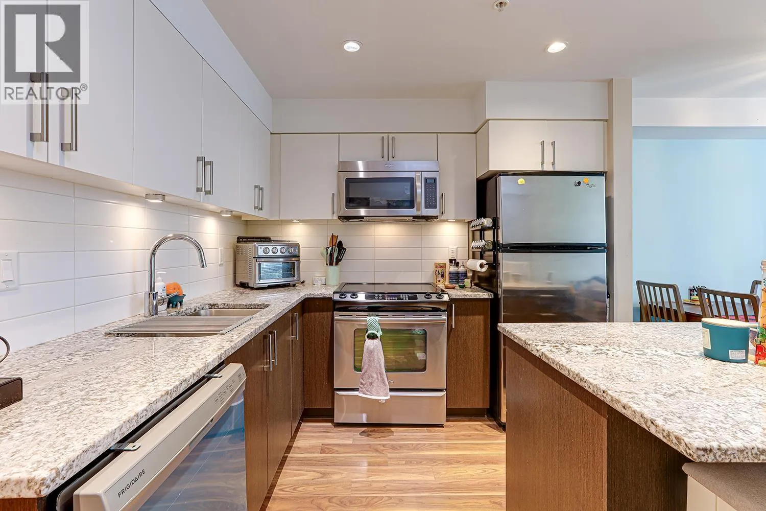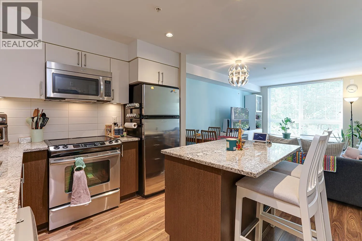 Welcome to EightWest - A functional laid out 1 bed+den home offering privacy, functionality, and unbeatable LOCATION in the heart of Glenbrooke North. Situated on the QUIET, northwest-facing side of the building, this bright suite overlooks peaceful greenery from your lg private balcony-the perfect place to unwind. Inside, you'll find a spacious open-concept layout with a lg primary bedroom with a spacious closet and cheater ensuite. The den is perfect as a home office or nursery. The modern kitchen includes s/s appliances, granite countertops, and an island ideal for casual dining. Located just steps to Royal Square Mall, Safeway, Queens Park, the NEW Aquatic and community centre, the Justice Institute, schools, transit, and more-this home combines comfort and connectivity! (id:27476)
