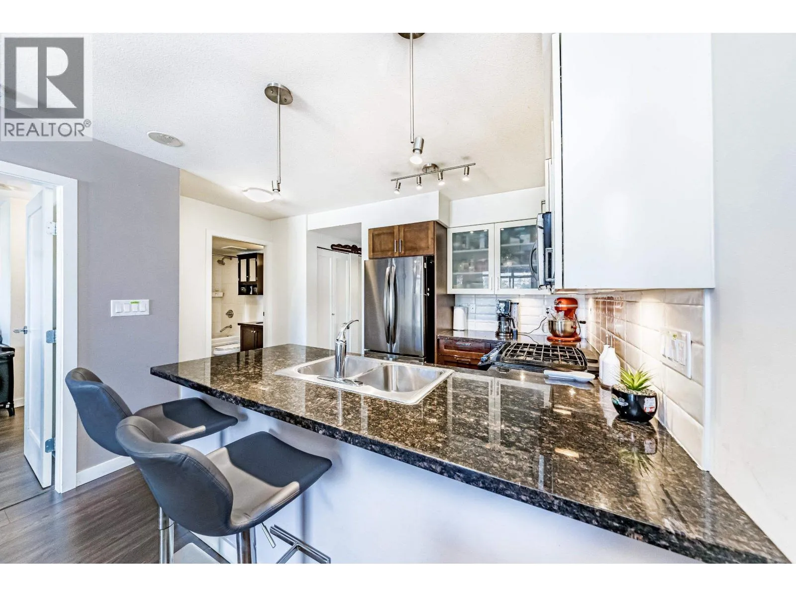Welcome to The Q, located in the heart of waterfront community of the Quay, one of the most vibrant districts of New Westminster! This bright and spacious 1 bed and Den/Flex unit features a functional layout with oversized windows providing sweeping city and mountain views. Spacious kitchen with granite counter top, stainless steel appliances and gas range. Centrally located, providing easy access to a variety of restaurants, shops, cinema, entertainment, transit and public market, steps to Quay Boardwalk! Call today to view! (id:27476)