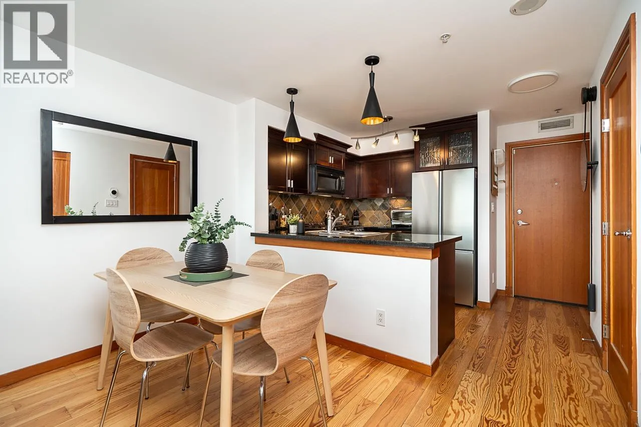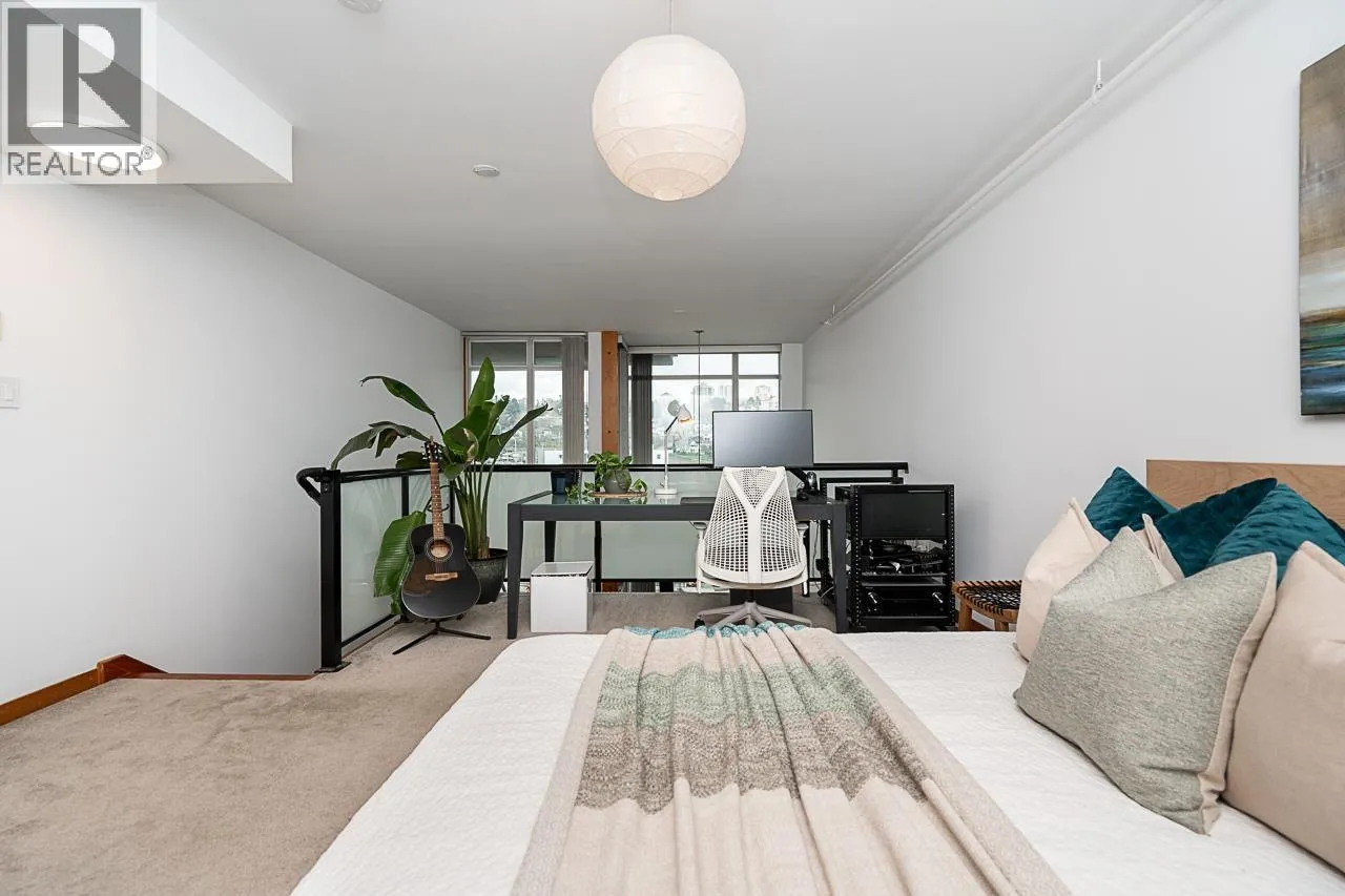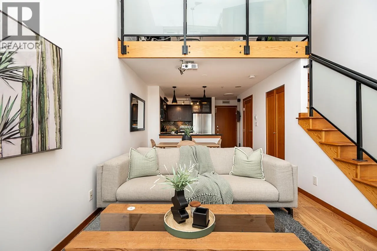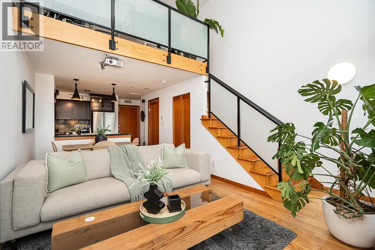 Welcome to Murano Lofts by Aragon Properties, where heritage charm meets modern loft living in a peaceful waterfront community. This bright two-level loft features 16´7" ceilings and expansive windows that fill the home with natural light. The open kitchen offers quartz countertops, a gas range, stainless steel appliances, and ample cabinetry. Upstairs, the spacious loft-style bedroom easily fits a king bed and includes a walk-in closet. Warm fir wood floors and a cozy natural gas fireplace add character. Amenities include a gym and guest suite, plus one parking stall and storage locker. Steps to the river boardwalk, parks, restaurants, River Market, and cinema, and only 5 minutes by bus to New Westminster SkyTrain. Unique loft living in a fantastic location! (id:27476)