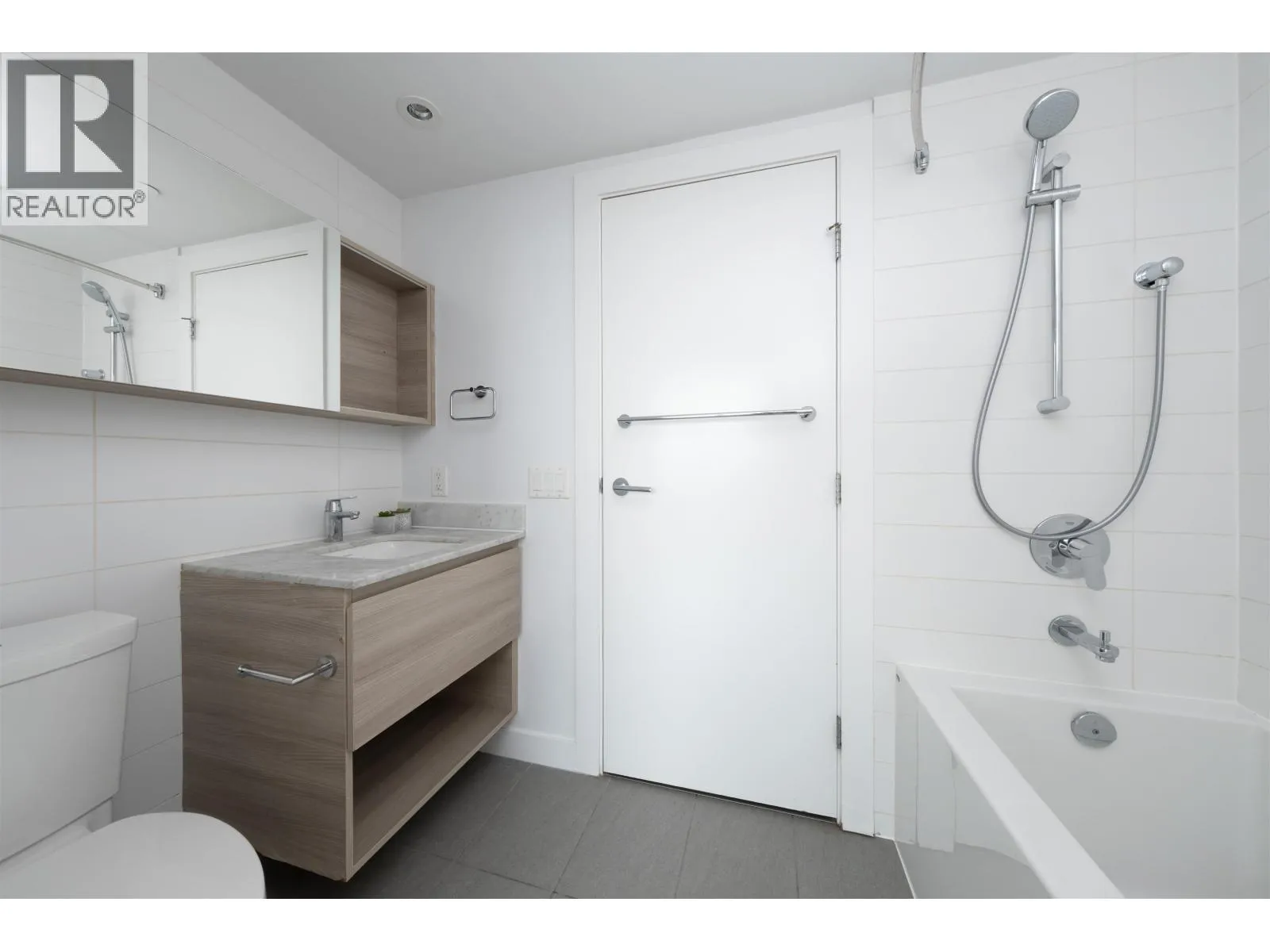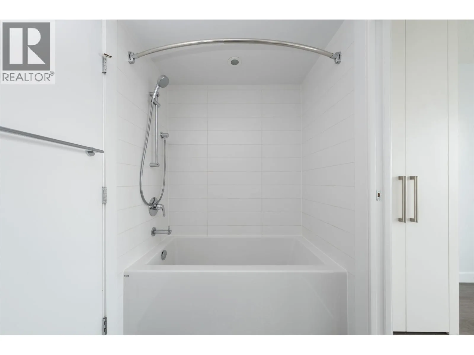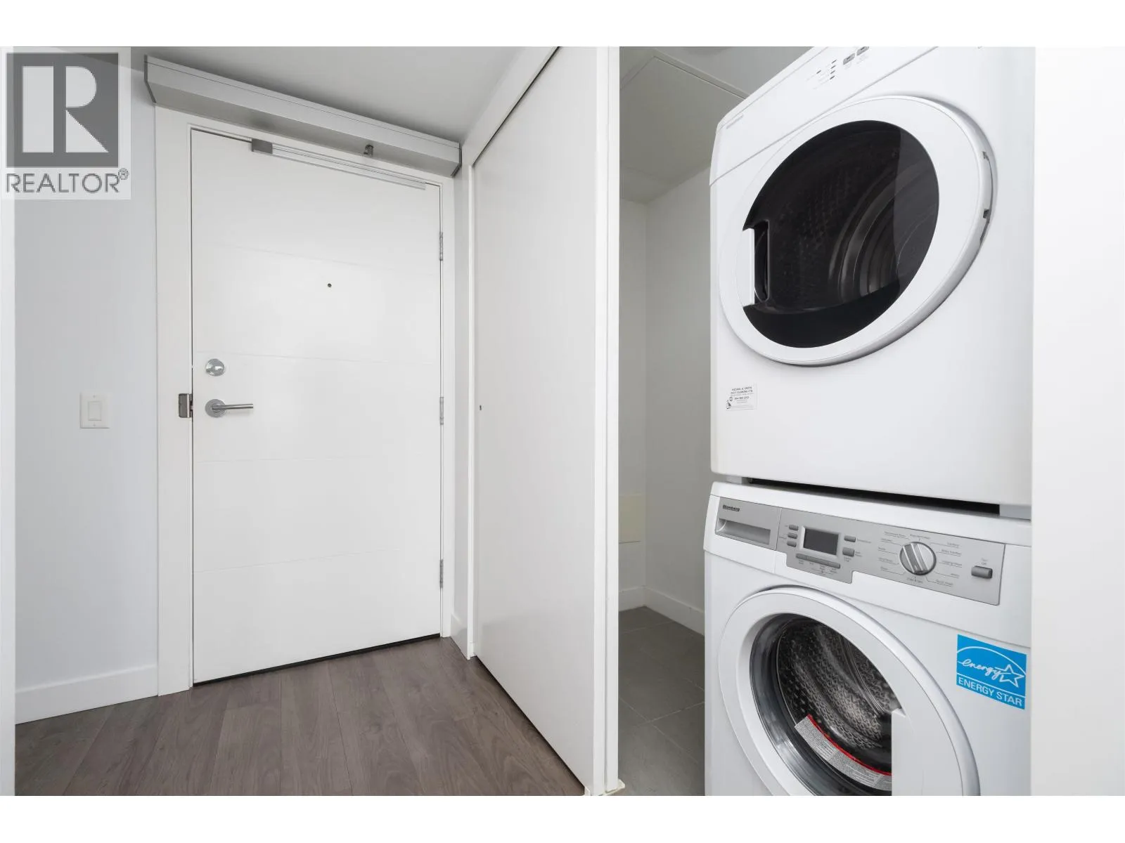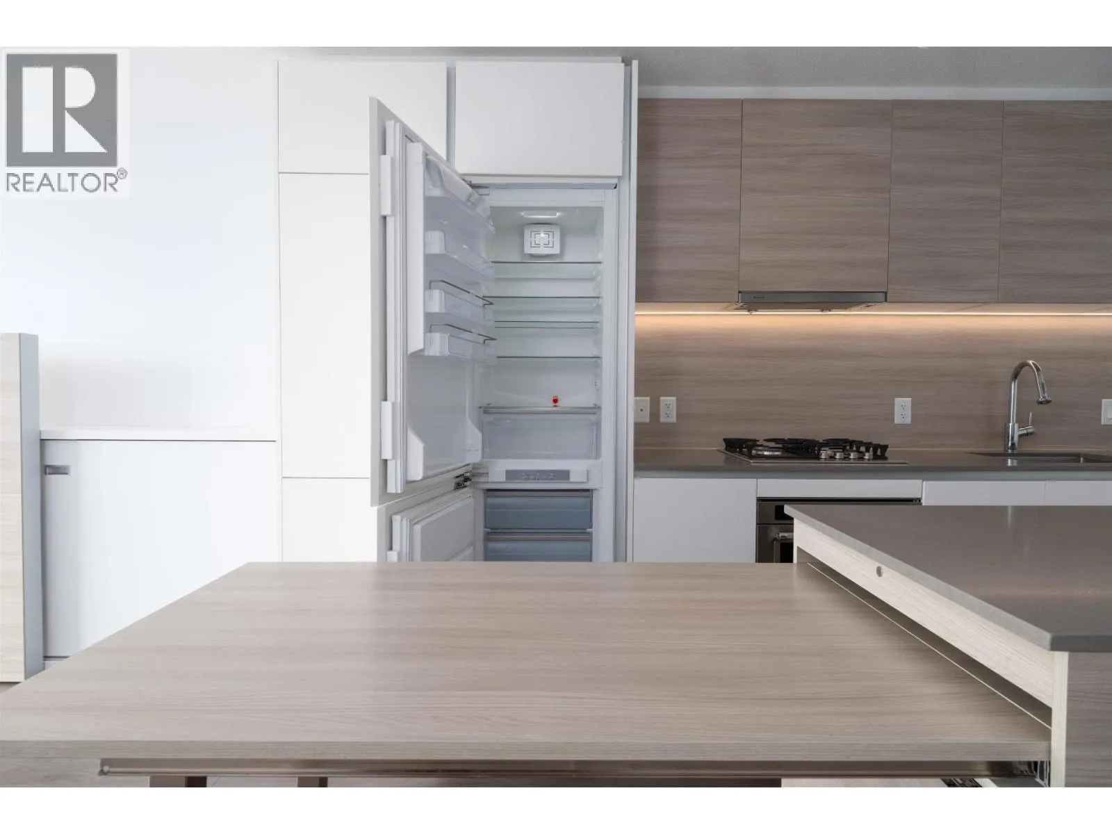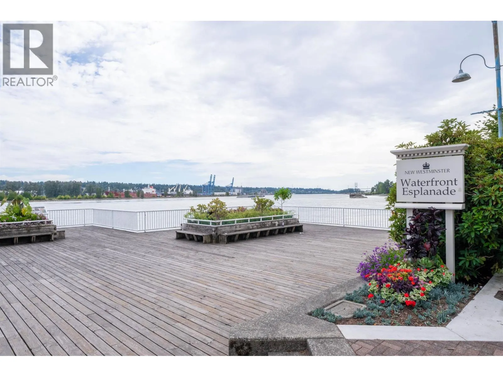 Discover an exceptional opportunity to own in sought-after Riversky 2 by Bosa. This west-facing 1 bed, 1 bath home offers sweeping river views from your private covered balcony - a retreat you´ll never tire of. Thoughtfully designed with Bosa´s signature smart features, including a slide-out dining table for 8 built into the island, a space-saving fold-out bed in the living room, and clever storage throughout. The sleek kitchen features a gas cooktop, wall oven, and integrated appliances. Located in vibrant New Westminster, you´re steps to SkyTrain, dining, shops, and the Quayside boardwalk. Building amenities include a gym, yoga room, rooftop terrace, and more. One storage locker included. Don´t miss out! Open house on Saturday, March 28, 2026 from 2-4 PM. (id:27476)