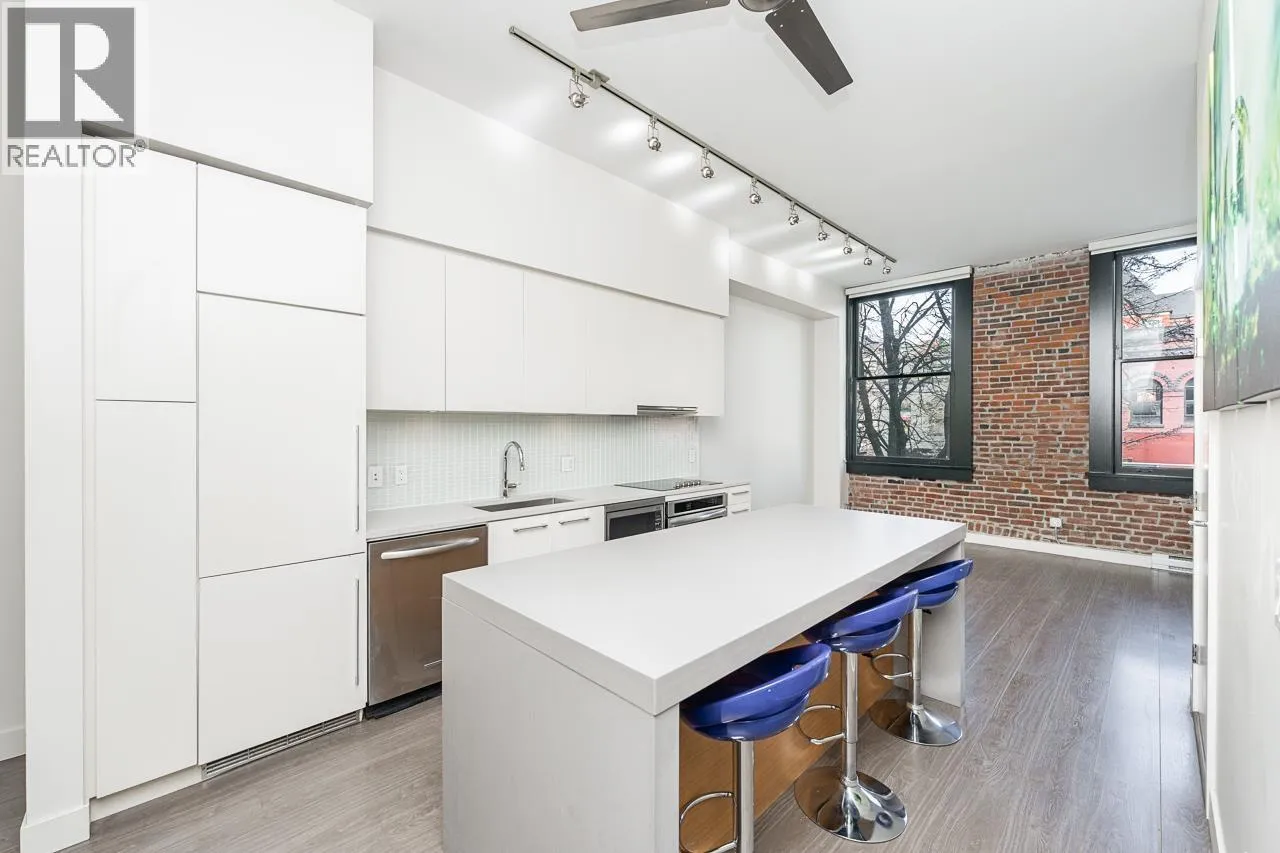 Unique New York loft-style 2 bedroom home at Trapp + Holbrook in the heart of downtown New Westminster! Set within a landmark heritage-inspired development, this one-of-a-kind unit features soaring 13´ ceilings, exposed red brick, and a bright open layout. High-end kitchen with KitchenAid appliances, quartz counters, and spacious rooms with a large walk-in closet. Includes parking and storage. Steps to the SkyTrain Expo Line, the New Westminster Quay, shops, restaurants, cafes, and parks. Building amenities include a gym, party room, and rooftop patio. (id:27476)