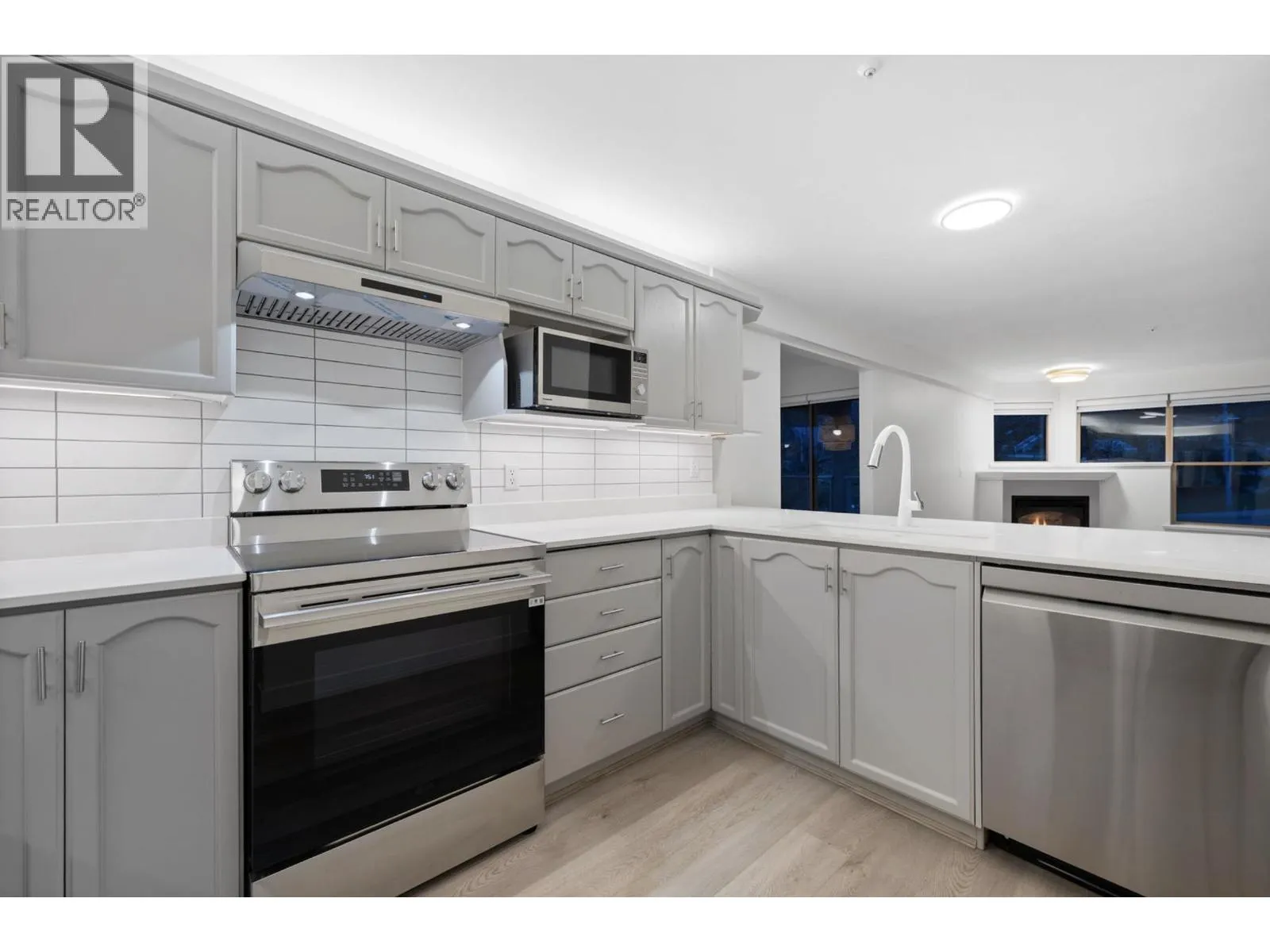 An exceptional opportunity to own this beautifully renovated 1,321 square ft corner unit in the sought-after Governor's Court! Thoughtfully remodelled with superb quality and attention to detail. Enjoy gorgeous new luxury vinyl plank flooring throughout with expansive living and dining areas and spacious bedrooms, easily accommodating house-sized furniture. Rare offering with 2 covered balconies, creating seamless indoor-outdoor living and a prime south-west facing exposure overlooking lush, mature gardens. Featuring a gas fireplace, brand new appliances, and luxurious window coverings throughout. An exclusive enclave of well managed residences located on a peaceful hillside setting close to New West's finest shopping and dining. Amenities include a guest suite, visitor parking, wood workshop, car wash bay, and spacious underground storage and parking. Welcome Home! (id:27476)