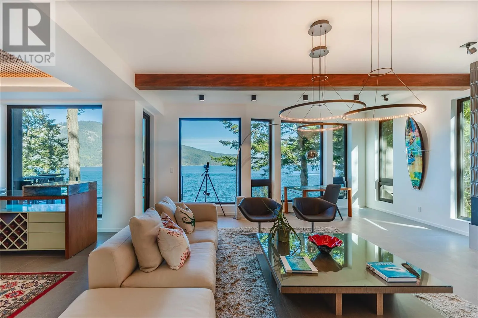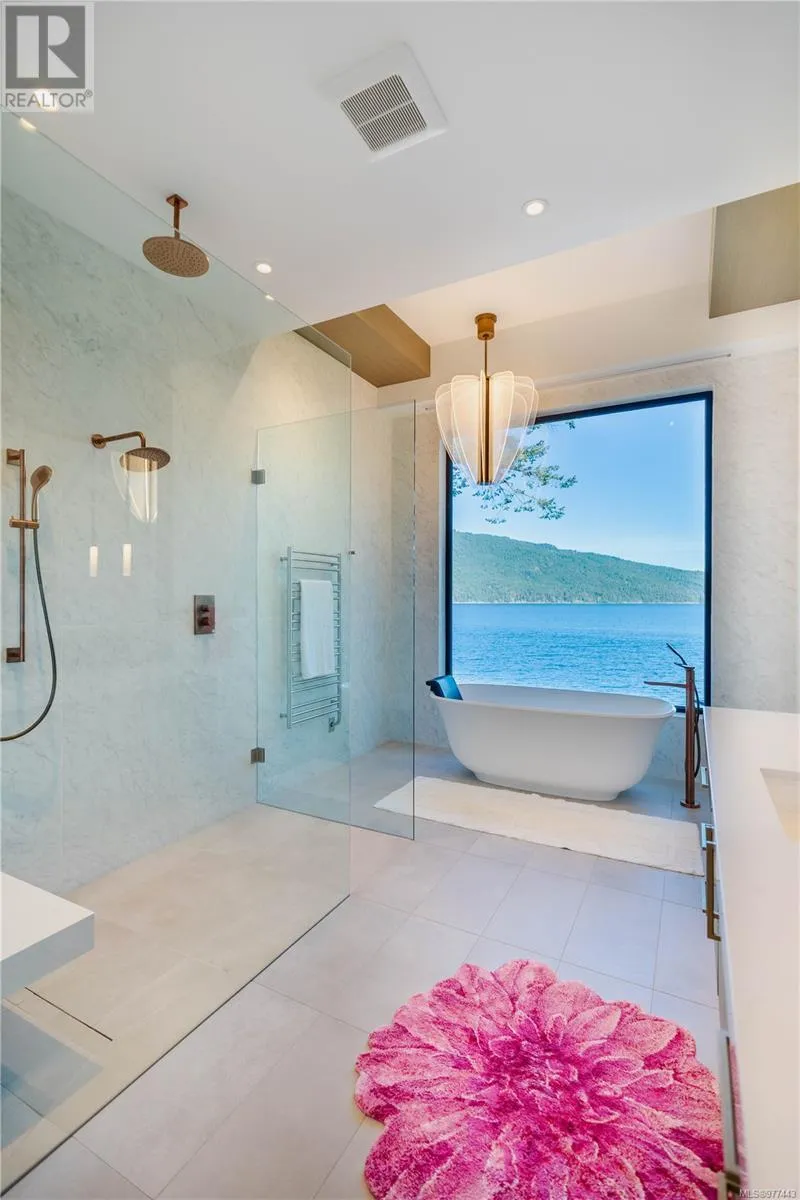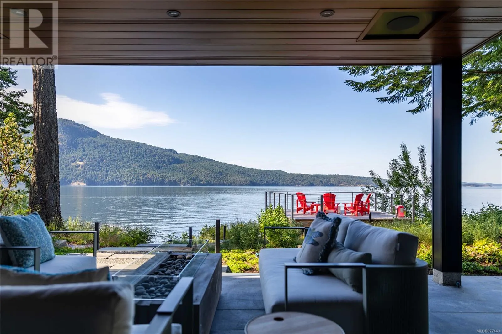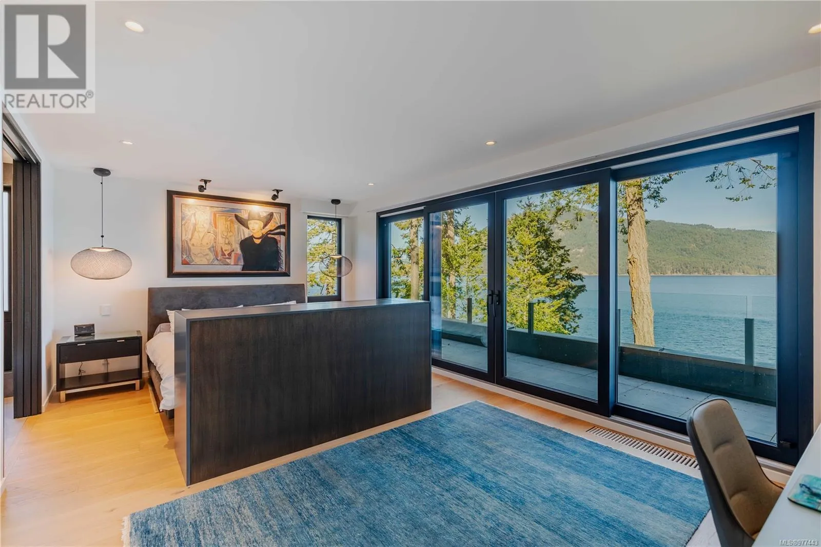 Welcome to this 2024 constructed luxury modern waterfront estate in North Saanich, Vancouver Island. Set on 1.02 acres of superb low-bank oceanfront, this luxurious property offers privacy and stunning views across the Satellite Channel to Salt Spring Island's Mount Tuam Ecological Reserve. Voted best Kitchen (over $150k) & Bathroom (over $75k) at the VI Building Industry Awards, the main residence spans 7,000 sqft, featuring four bedrooms, seven bathrooms, and a double attached garage. A zen garden with a water bowl and Japanese maple surrounds the entrance. Inside, floor-to-ceiling windows flood the main floor's open kitchen, dining, and living areas with natural light, leading to an outdoor patio. The kitchen is equipped with high-end Viking appliances, a Sub-Zero wine cooler, custom lighting and cabinetry, and a prep/pantry area for convenience. The upper level offers two primary suites with ocean-view balconies, walk-in closets, and luxe ensuites; one suite includes a private office. An exercise room, private bathroom, and laundry complete this floor. On the lower level, entertainment abounds with a home theatre, wet bar, indoor and outdoor kitchens, a guest bedroom, laundry, a heated patio, and access to a 350-sqft oceanfront deck. The 990-sqft guest house, located behind the main home, includes its own kitchen, two bedrooms, two bathrooms, laundry, and an expansive ocean view deck. A detached three-bay garage with a workshop and mezzanine provides ample storage and workspace. Equipped with Crestron Integrated Smart Home technology, a Step 5 energy-efficient rating, advanced heating and cooling systems, and comprehensive soundproofing, this home is both intuitive and eco-friendly. Minutes from BC Ferries Swartz Bay Terminal, Victoria International Airport, marinas, parks, and golf courses, this estate offers private, opulent waterfront living with easy access to recreation and amenities. Get in touch with us for an info package today! (id:27476)