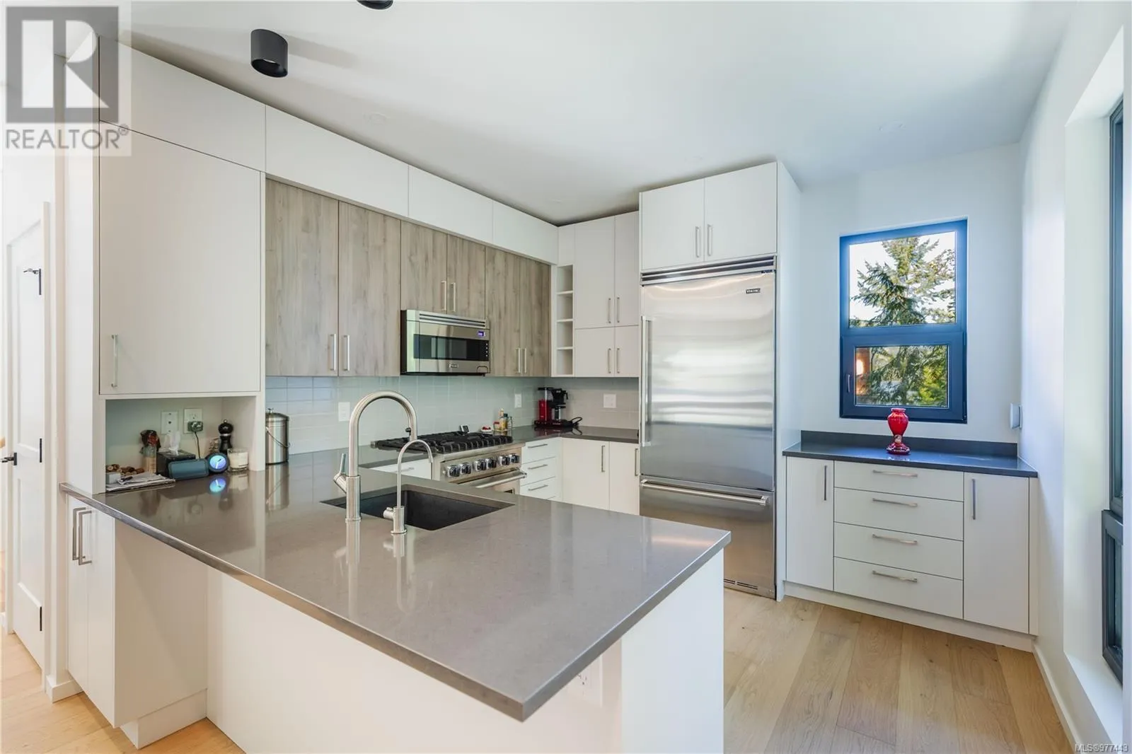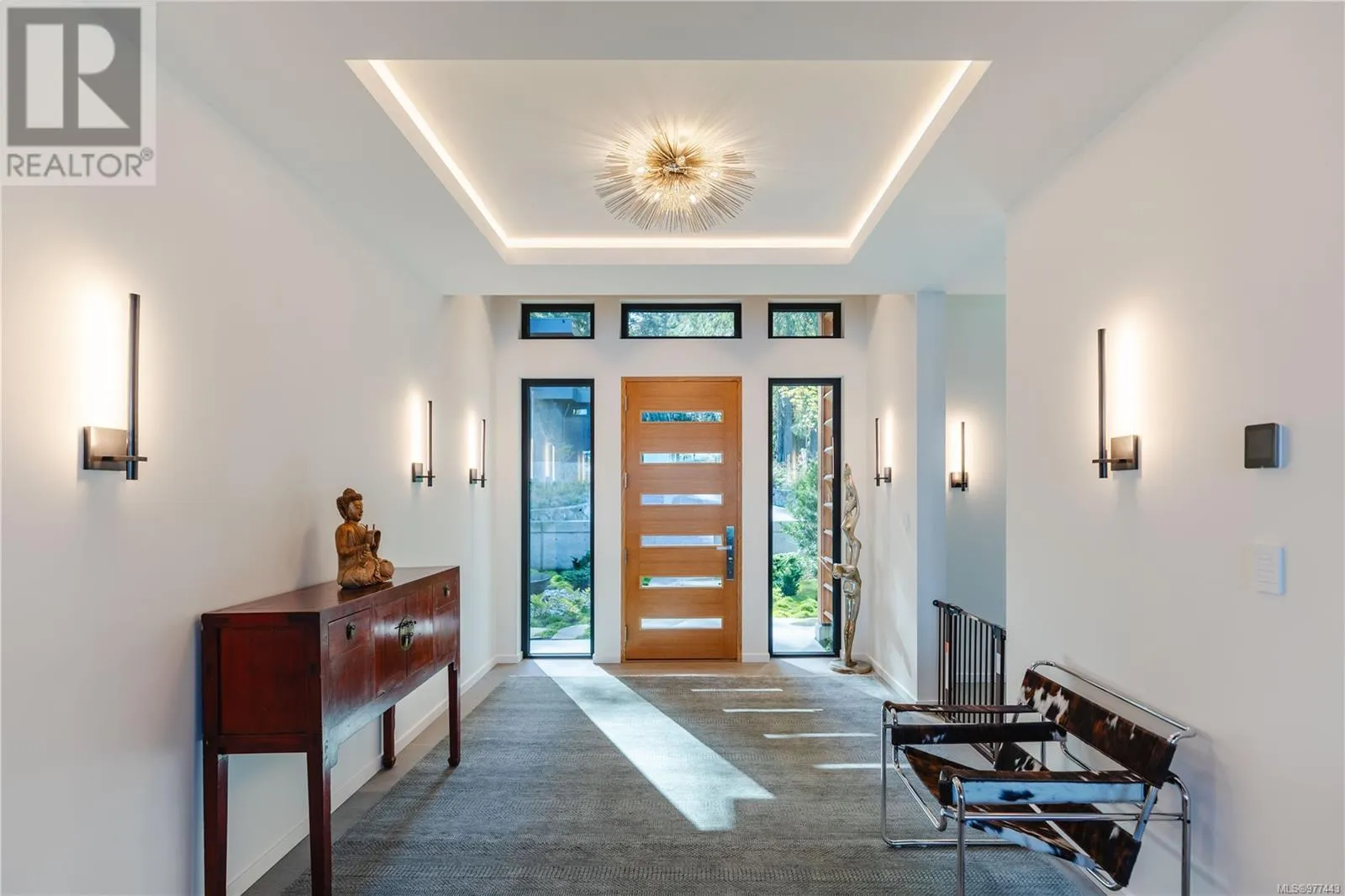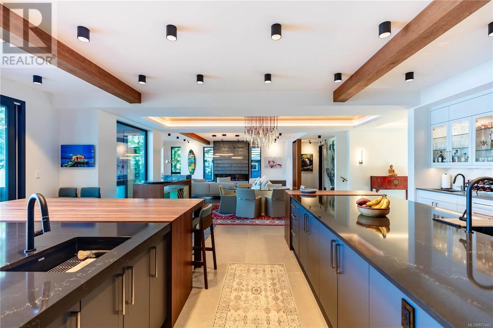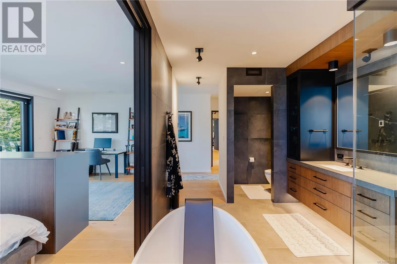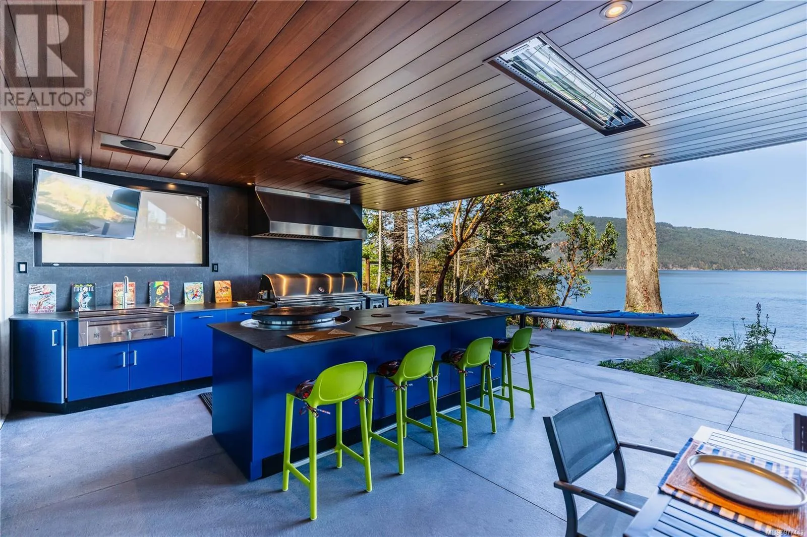 Welcome to this 2024 constructed luxury modern waterfront estate in North Saanich, Vancouver Island. Set on 1.02 acres of superb low-bank oceanfront, this luxurious property offers privacy and stunning views across the Satellite Channel to Salt Spring Island's Mount Tuam Ecological Reserve. Voted best Kitchen (over $150k) & Bathroom (over $75k) at the VI Building Industry Awards, the main residence spans 7,000 sqft, featuring four bedrooms, seven bathrooms, and a double attached garage. A zen garden with a water bowl and Japanese maple surrounds the entrance. Inside, floor-to-ceiling windows flood the main floor's open kitchen, dining, and living areas with natural light, leading to an outdoor patio. The kitchen is equipped with high-end Viking appliances, a Sub-Zero wine cooler, custom lighting and cabinetry, and a prep/pantry area for convenience. The upper level offers two primary suites with ocean-view balconies, walk-in closets, and luxe ensuites; one suite includes a private office. An exercise room, private bathroom, and laundry complete this floor. On the lower level, entertainment abounds with a home theatre, wet bar, indoor and outdoor kitchens, a guest bedroom, laundry, a heated patio, and access to a 350-sqft oceanfront deck. The 990-sqft guest house, located behind the main home, includes its own kitchen, two bedrooms, two bathrooms, laundry, and an expansive ocean view deck. A detached three-bay garage with a workshop and mezzanine provides ample storage and workspace. Equipped with Crestron Integrated Smart Home technology, a Step 5 energy-efficient rating, advanced heating and cooling systems, and comprehensive soundproofing, this home is both intuitive and eco-friendly. Minutes from BC Ferries Swartz Bay Terminal, Victoria International Airport, marinas, parks, and golf courses, this estate offers private, opulent waterfront living with easy access to recreation and amenities. Get in touch with us for an info package today! (id:27476)