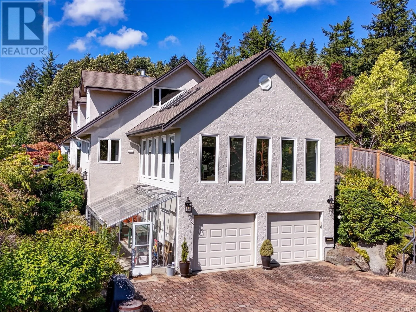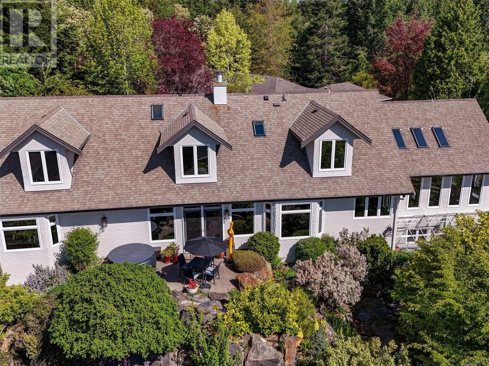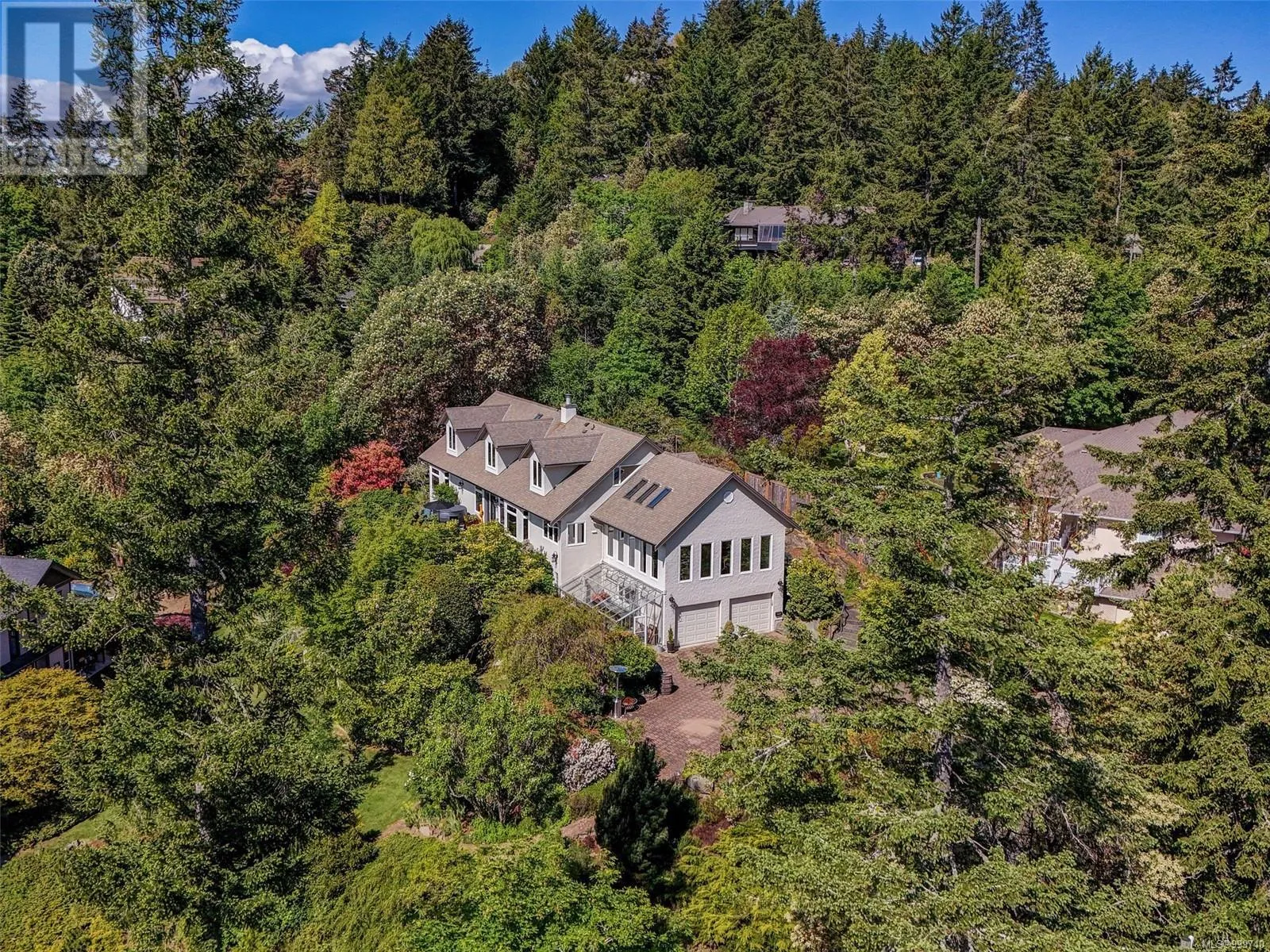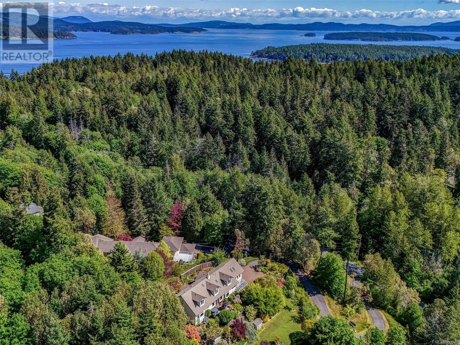 Perched on an elevated and private 1 acre site with distant southerly ocean views toward Sidney is a custom built Tudor with a contemporary flair. Nicely renovated and in move-in condition. New furnace and heat pump. Wide plank oak floors, 9' ceilings, two tone kitchen with Fisher Paykel appliances, and a double sided Town and Country fireplace are a few of the features. Across the road from Readings Park, the vantage point of this home sees nothing other than tree tops for miles and is in a sunpath from east to west. Walls of picture windows capture an ever changing viewscape. A gracious floor plan of 3900' places the primary on the main floor with 3 additional bedrooms up. 3 renovated bathrooms. The great room offers flexibility as a music room, gym, art studio or billiards. The forest walking and proximity to Horth Hill Park are features of this prime area, as are Deep Cove School, the fine marina's, airport, ferries and the warmest swim beaches. Zoning allows for a coach house. (id:27476)
