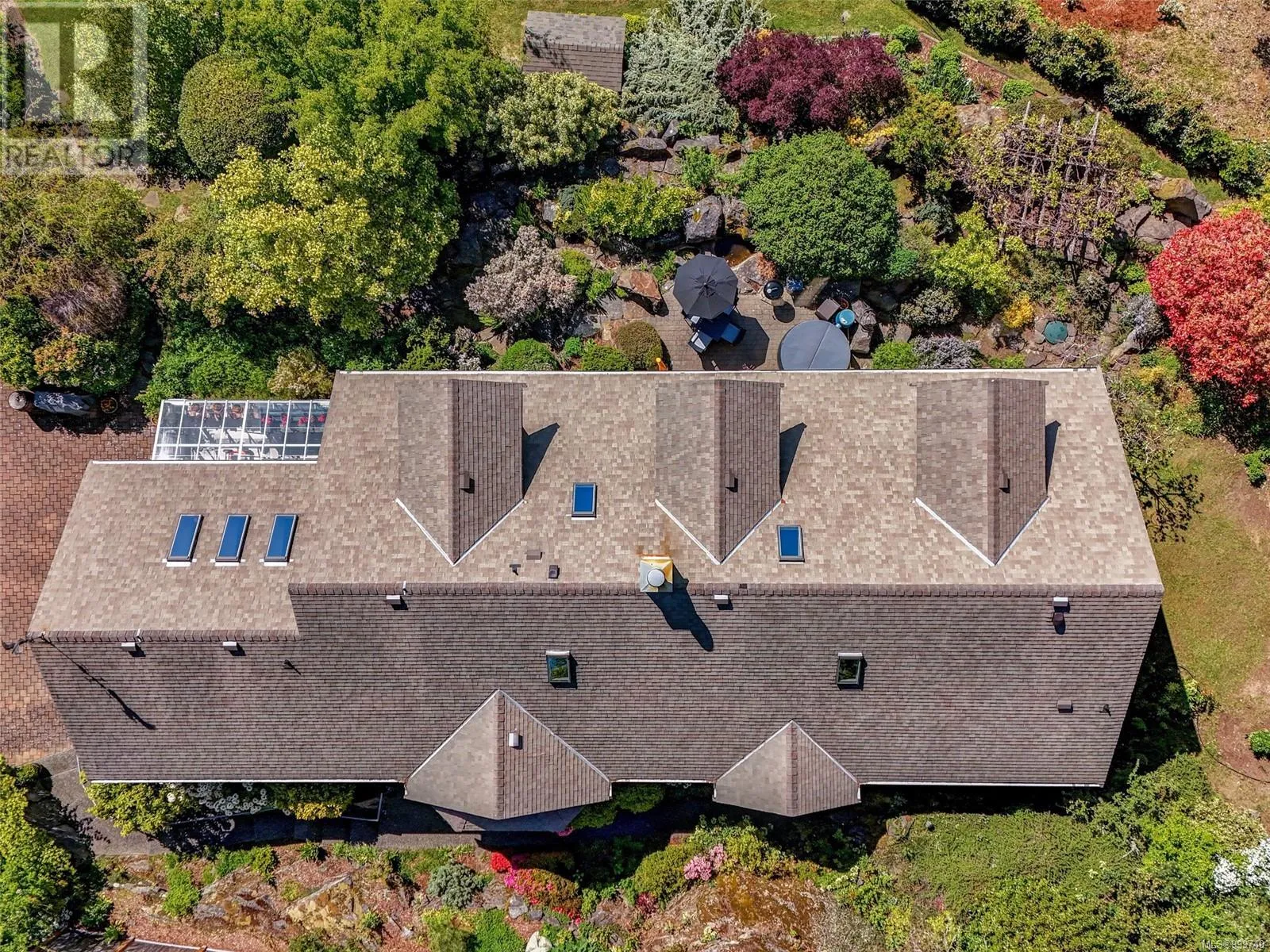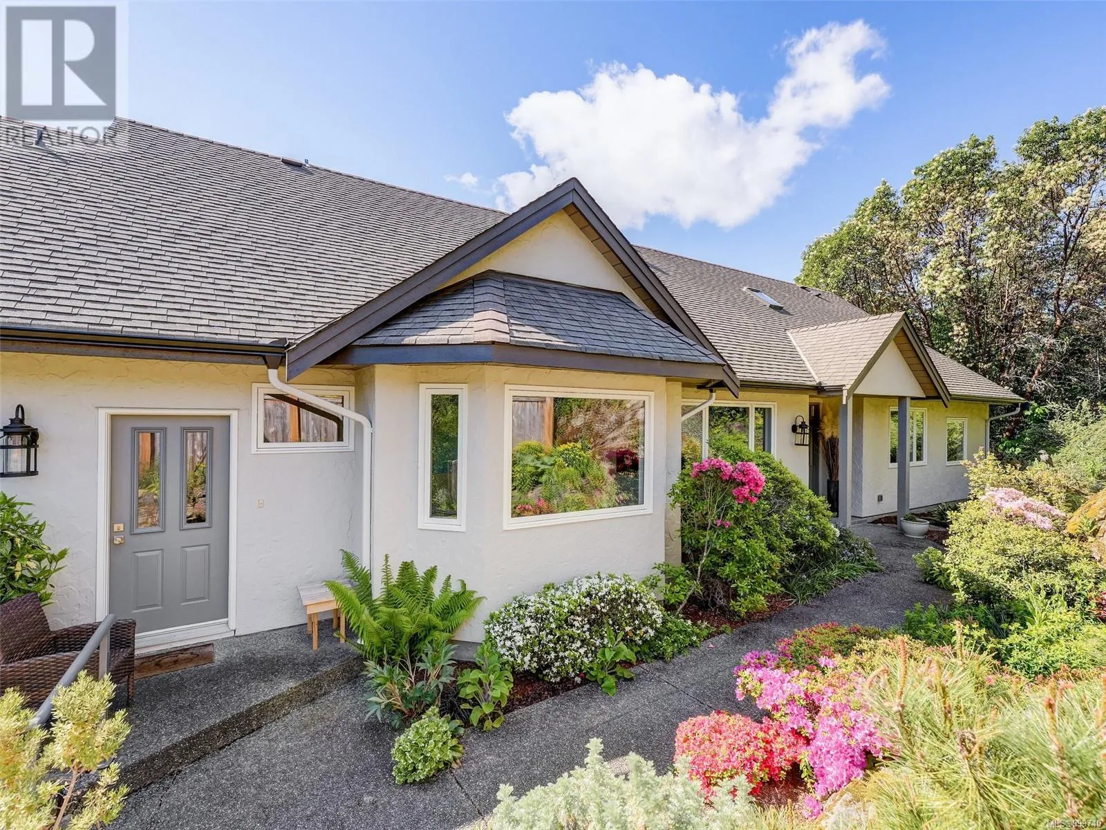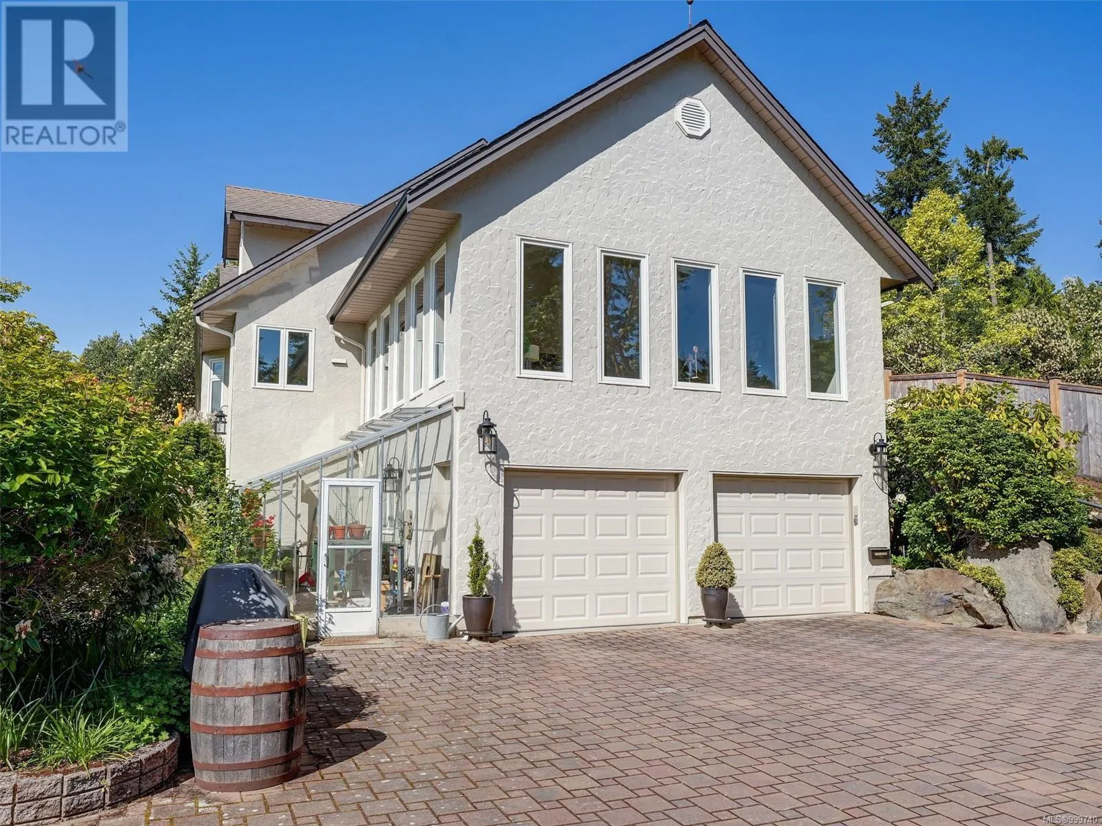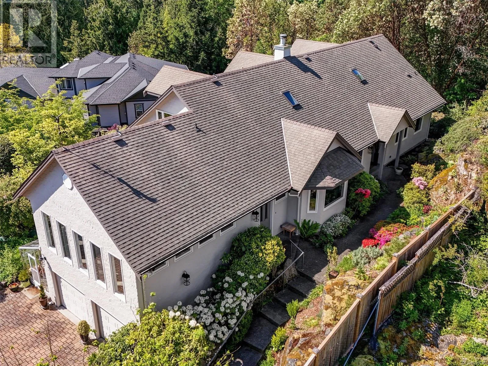 Perched on an elevated and private 1 acre site with distant southerly ocean views toward Sidney is a custom built Tudor with a contemporary flair. Nicely renovated and in move-in condition. New furnace and heat pump. Wide plank oak floors, 9' ceilings, two tone kitchen with Fisher Paykel appliances, and a double sided Town and Country fireplace are a few of the features. Across the road from Readings Park, the vantage point of this home sees nothing other than tree tops for miles and is in a sunpath from east to west. Walls of picture windows capture an ever changing viewscape. A gracious floor plan of 3900' places the primary on the main floor with 3 additional bedrooms up. 3 renovated bathrooms. The great room offers flexibility as a music room, gym, art studio or billiards. The forest walking and proximity to Horth Hill Park are features of this prime area, as are Deep Cove School, the fine marina's, airport, ferries and the warmest swim beaches. Zoning allows for a coach house. (id:27476)