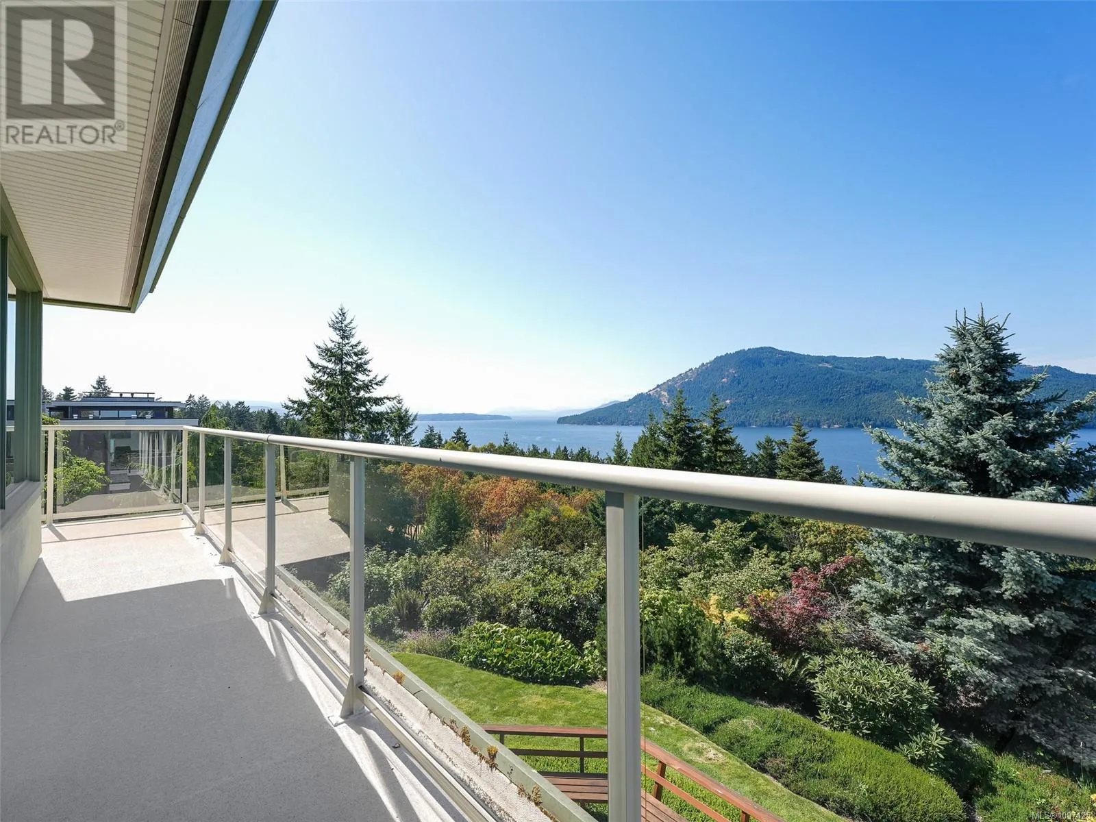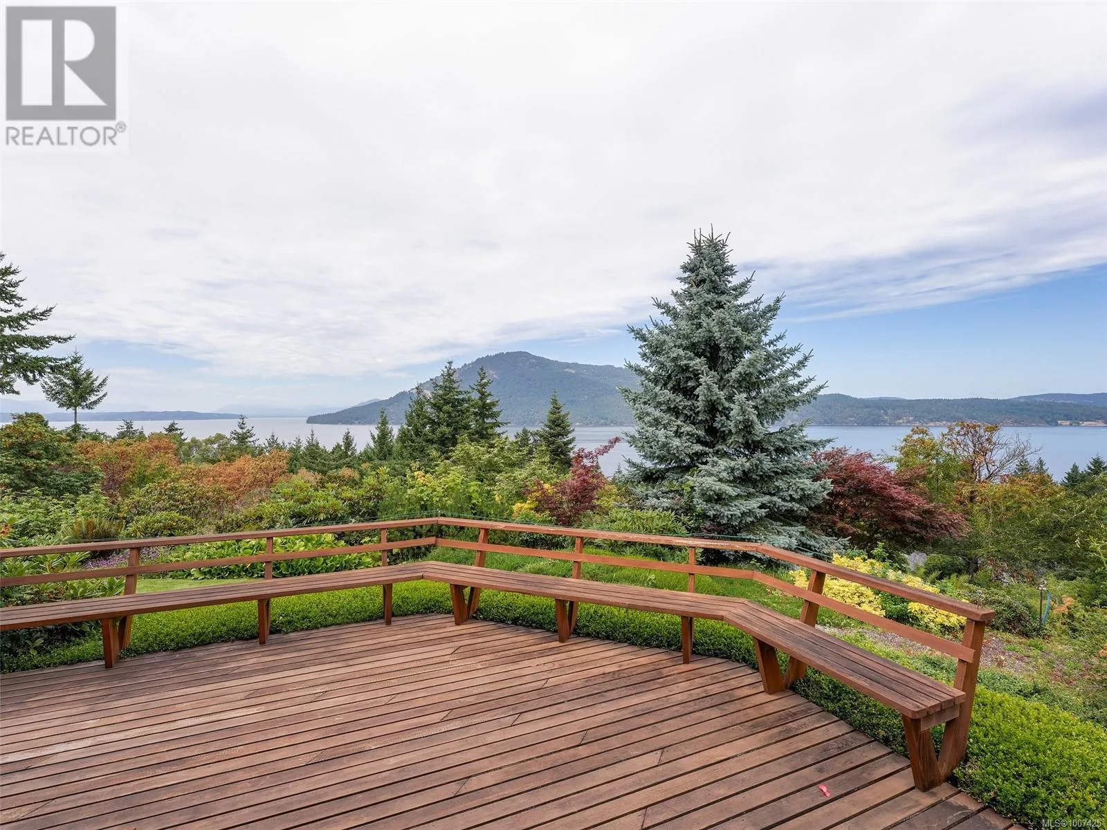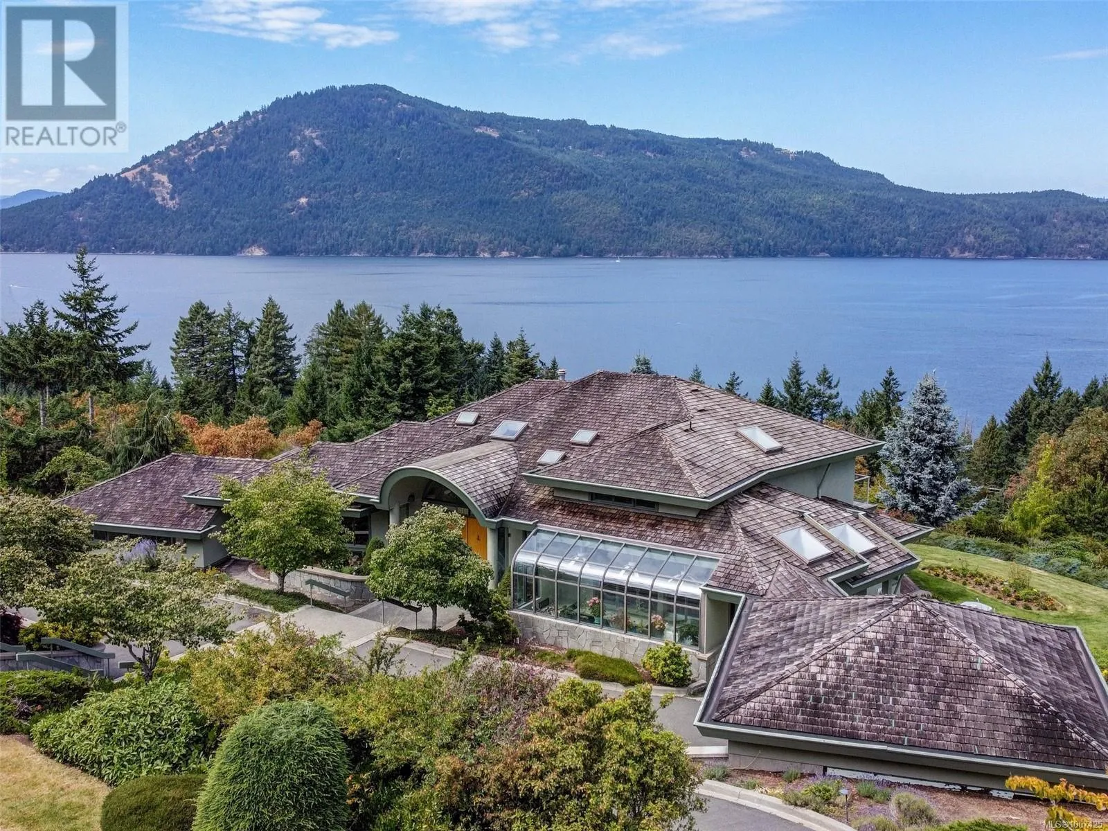 Perched on a beautifully landscaped and partially natural one-acre lot, this custom Care Award-winning home offers sweeping panoramic views of the Gulf Islands and beyond. Lovingly maintained by its original owner, the home is designed for effortless entertaining with spacious, light-filled interiors and seamless indoor-outdoor flow. Expansive windows frame ever-changing coastal vistas, while generous living areas open to multiple decks and patios. The large primary suite is a private retreat with a massive walk-in closet and an impressive ensuite. Outdoors, enjoy a greenhouse for gardening, a separate two-car garage, and a workshop with overheight ceilingsâideal for hobbyists or serious projects. A rare blend of architectural quality, privacy, and West Coast lifestyle. (id:27476)