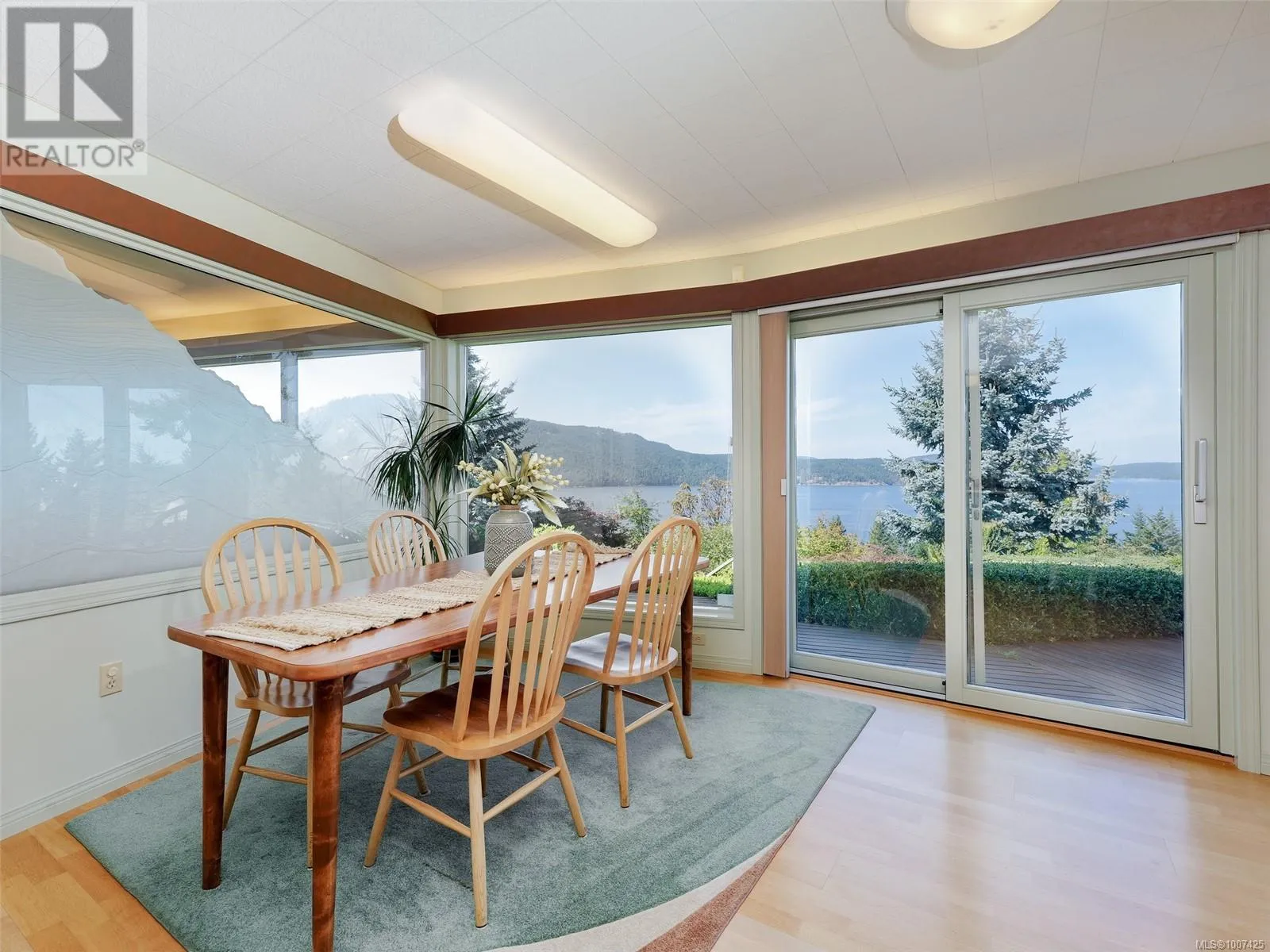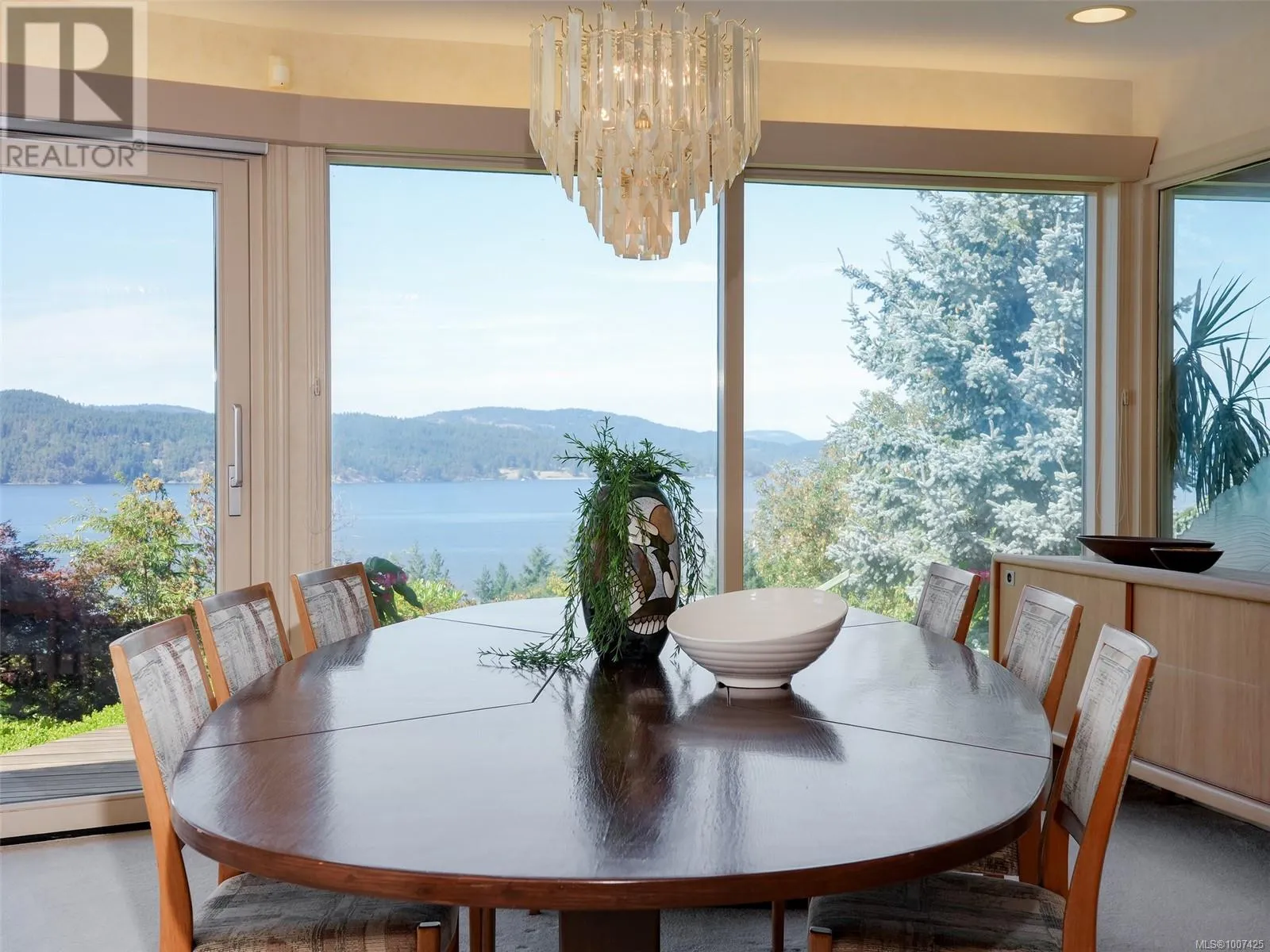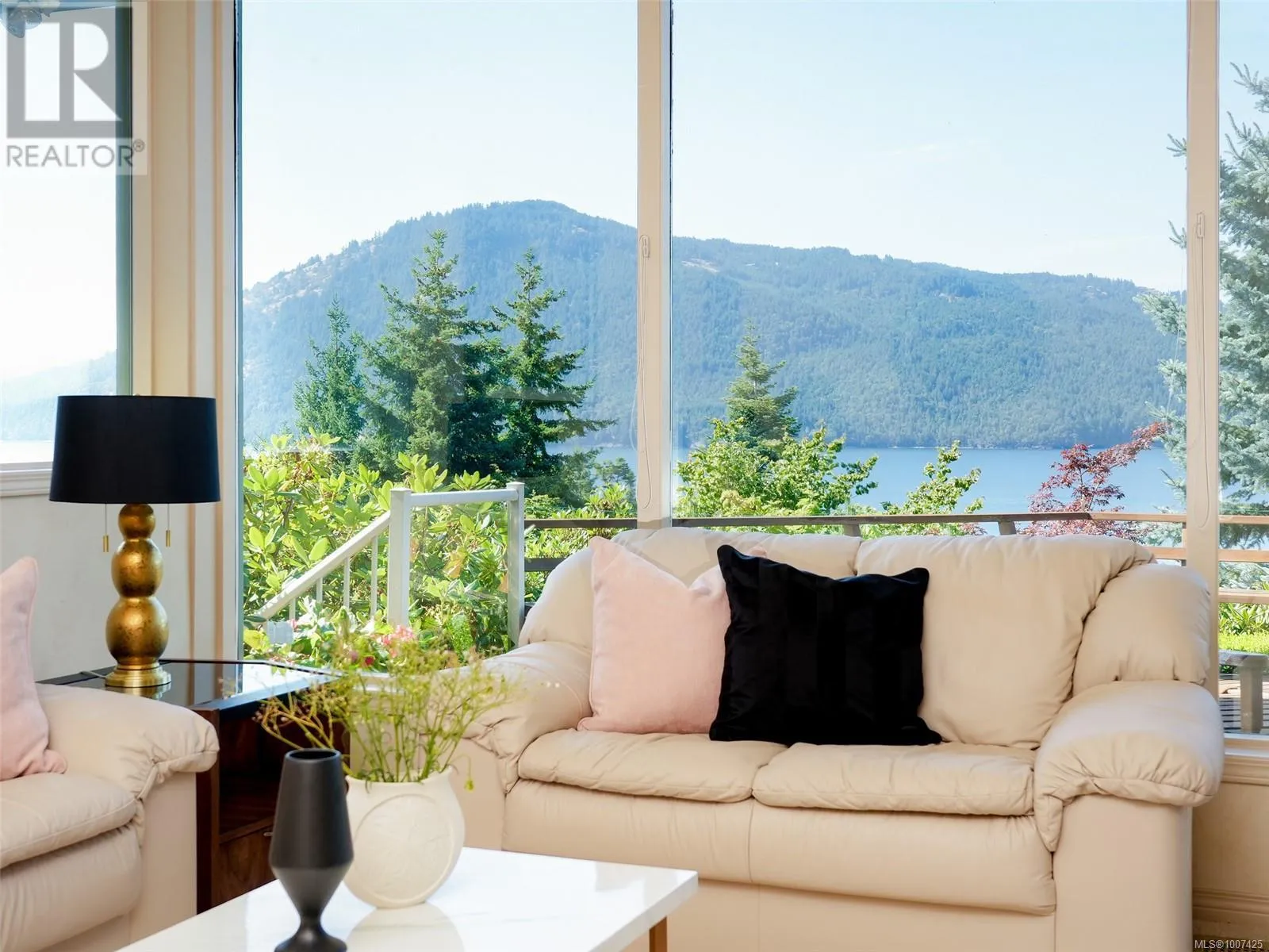 Perched on a beautifully landscaped and partially natural one-acre lot, this custom Care Award-winning home offers sweeping panoramic views of the Gulf Islands and beyond. Lovingly maintained by its original owner, the home is designed for effortless entertaining with spacious, light-filled interiors and seamless indoor-outdoor flow. Expansive windows frame ever-changing coastal vistas, while generous living areas open to multiple decks and patios. The large primary suite is a private retreat with a massive walk-in closet and an impressive ensuite. Outdoors, enjoy a greenhouse for gardening, a separate two-car garage, and a workshop with overheight ceilingsâideal for hobbyists or serious projects. A rare blend of architectural quality, privacy, and West Coast lifestyle. (id:27476)