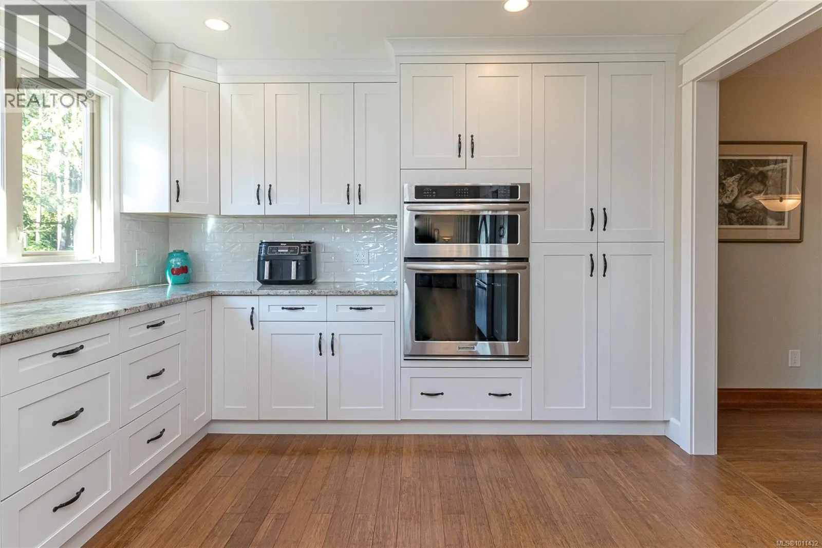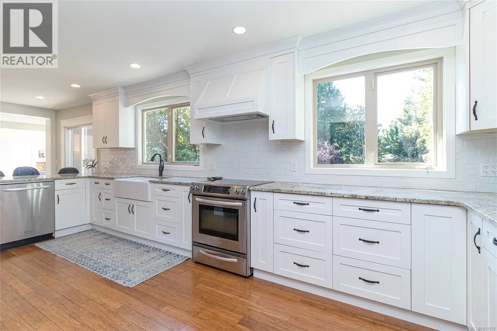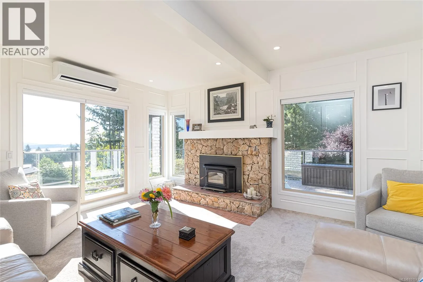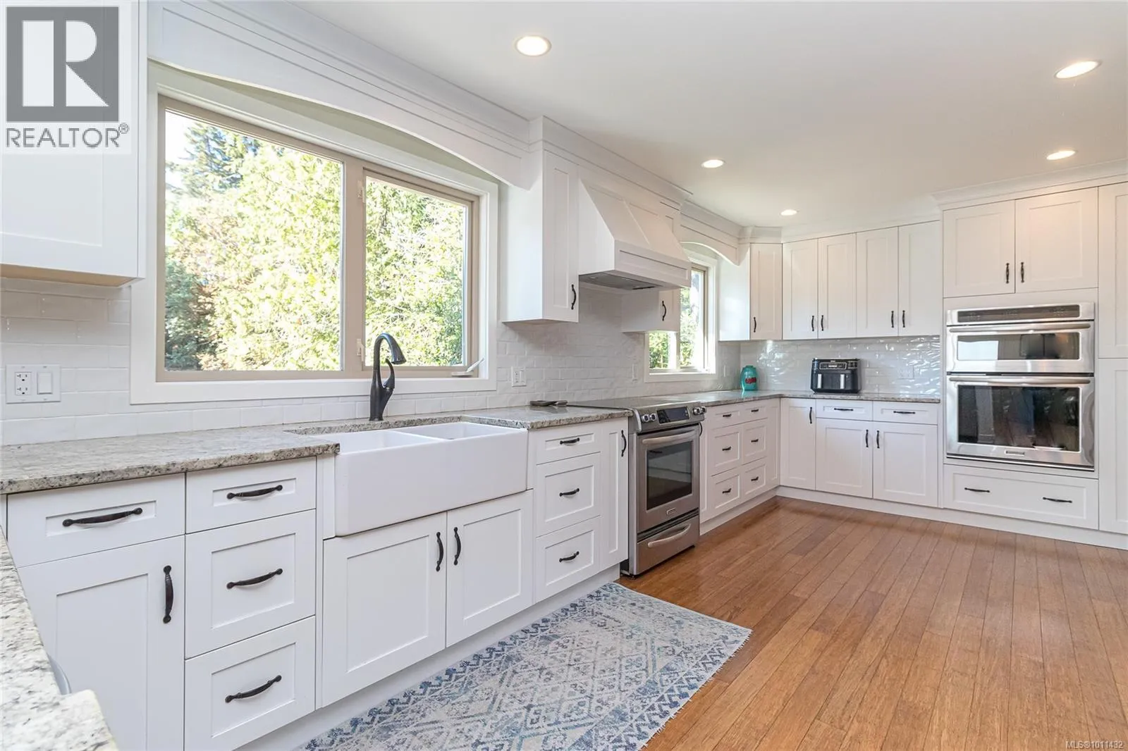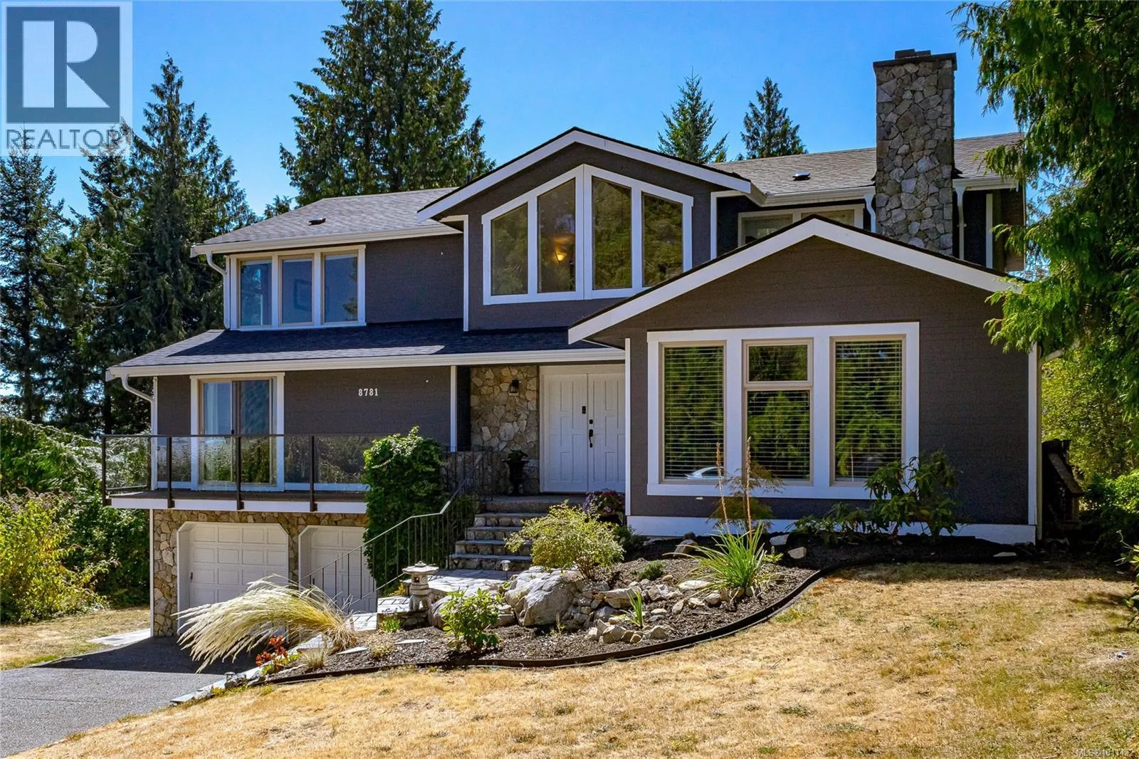 Open House: Saturday, November 9, 2-4 pm.Tucked away in one of North Saanich's most desirable Neighbourhoods.The perfect blend of West Coast charm and modern comfort. Welcome to 8781 Forest Park Drive. This home will tick all the boxes for the growing family. Close to schools, transit, and Panorama Leisure Centre. 5 bedrooms, 4 bathrooms, 3900+ sqft. on 3 levels, quiet cul-de-sac. This south-facing, flat lot on almost 1/2 acre is a rare find in Dean Park. The main floor features an updated kitchen with two ovens, shaker cabinets, granite countertops, plus a Sub-Zero wine fridge, and includes a nice balance of bamboo hardwood, plush carpet, and two rock-faced wood-burning fireplaces, both with roughed-in gas lines. Enjoy stunning views of the Gulf Islands from the Kitchen and its adjoining family room. Vaulted ceiling in the living room, Formal dining room, plus family room with stunning views of sunrises and moonrises. 4 bedrooms on the upper level, terrific views from the primary bedroom, and a recently updated ensuite with a soaker tub to take advantage of those views. 2nd bedroom also has an ensuite and a walk-in closet. List of improvements includes brand new roof, ensuite renovation, 3 new heat pumps, huge sundeck, and lower level covered patio, natural gas, hot water on demand, newer vinyl windows, separate entry & patio, future suite. Lower level with recroom and bonus room for the kids, plus double car garage with ample parking on driveway. Contact your agent for a private viewing today. You're going to love those views. (id:27476)
